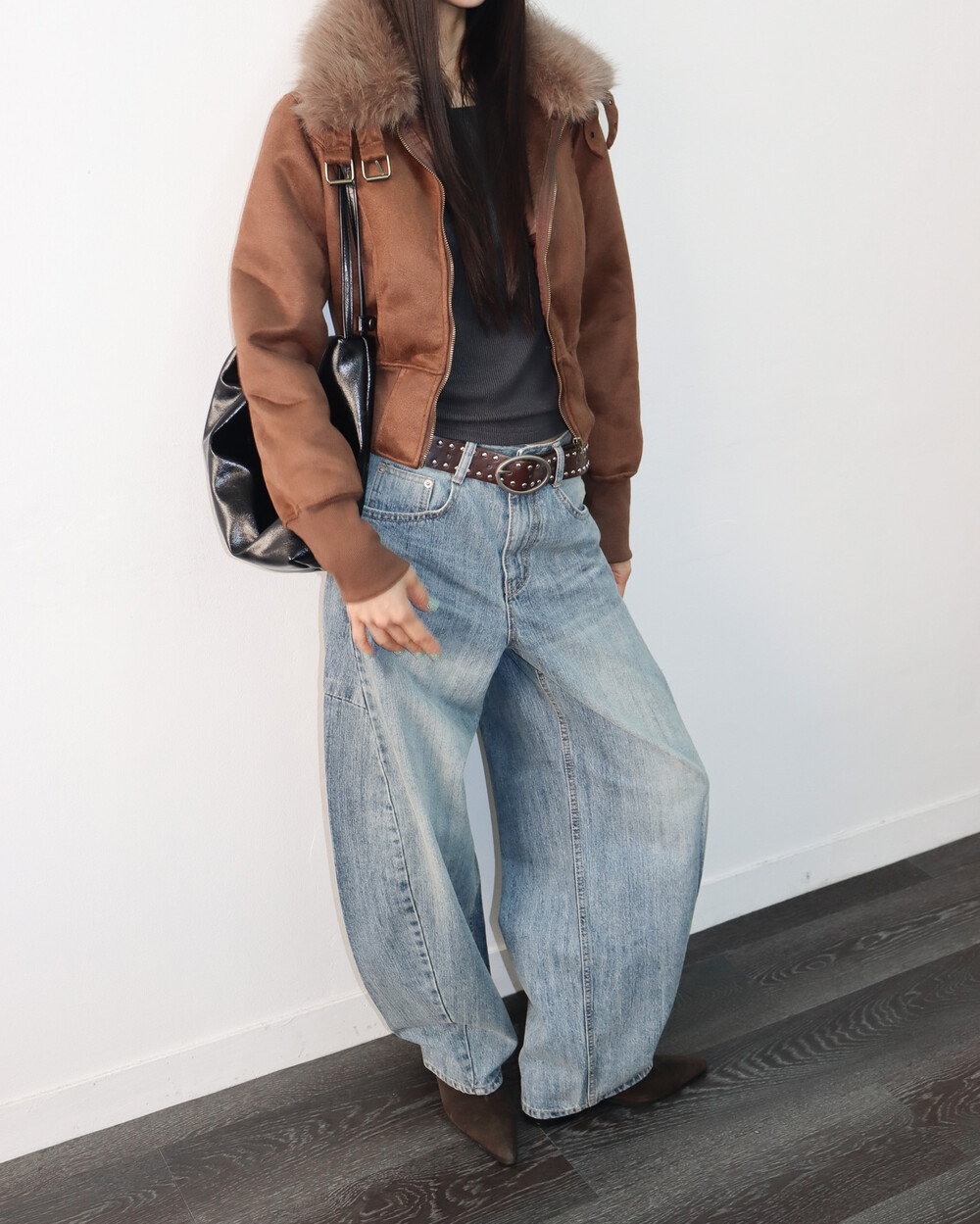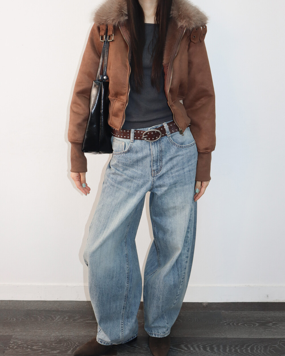 숏 부츠를 살짝 넣어 구겨지게 입어도 프로포션을 업 시켜줄 것 같네요