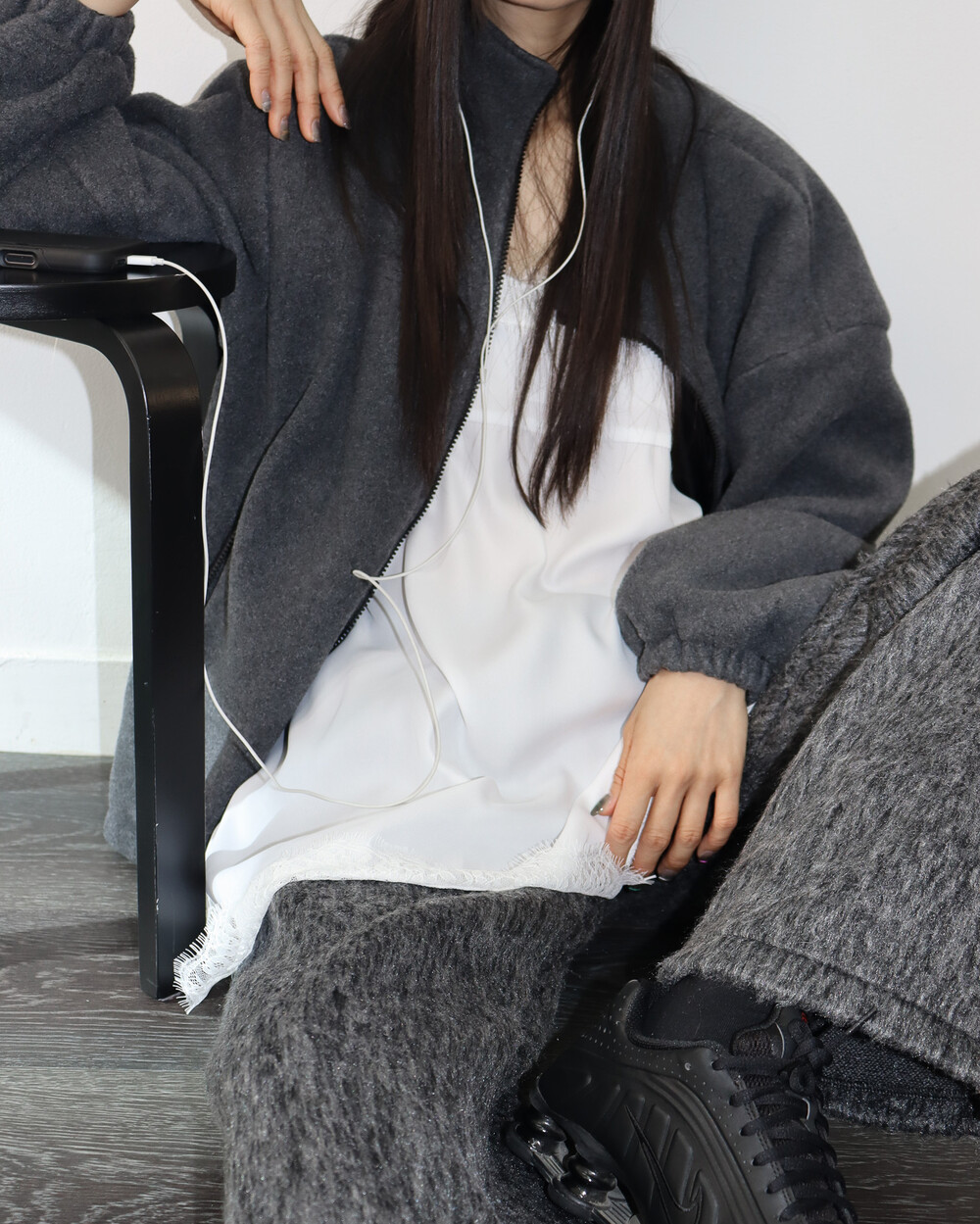 여유로운 실루엣과 롱 기장감이지만 밑단 스토퍼 조절이 가능해