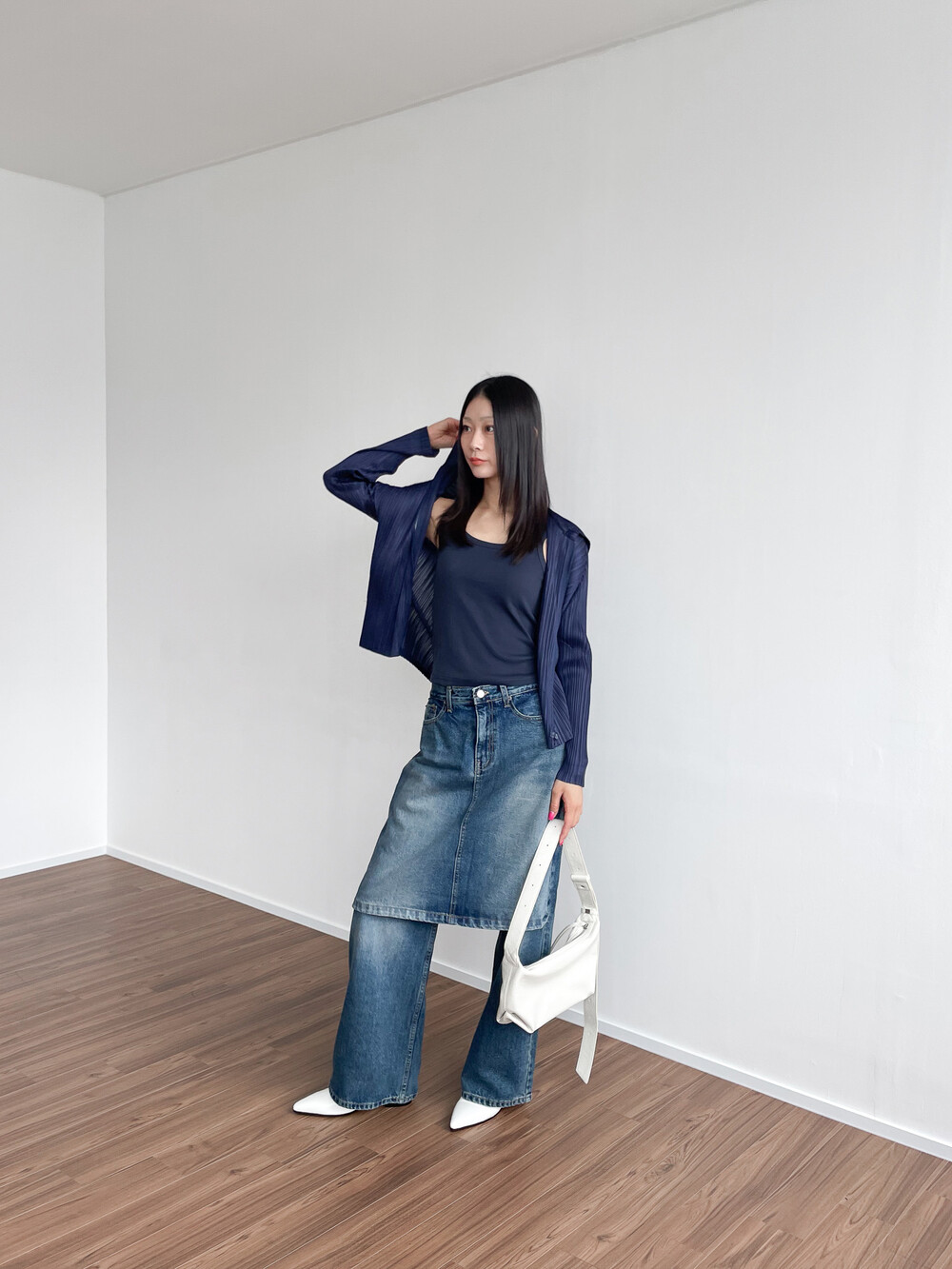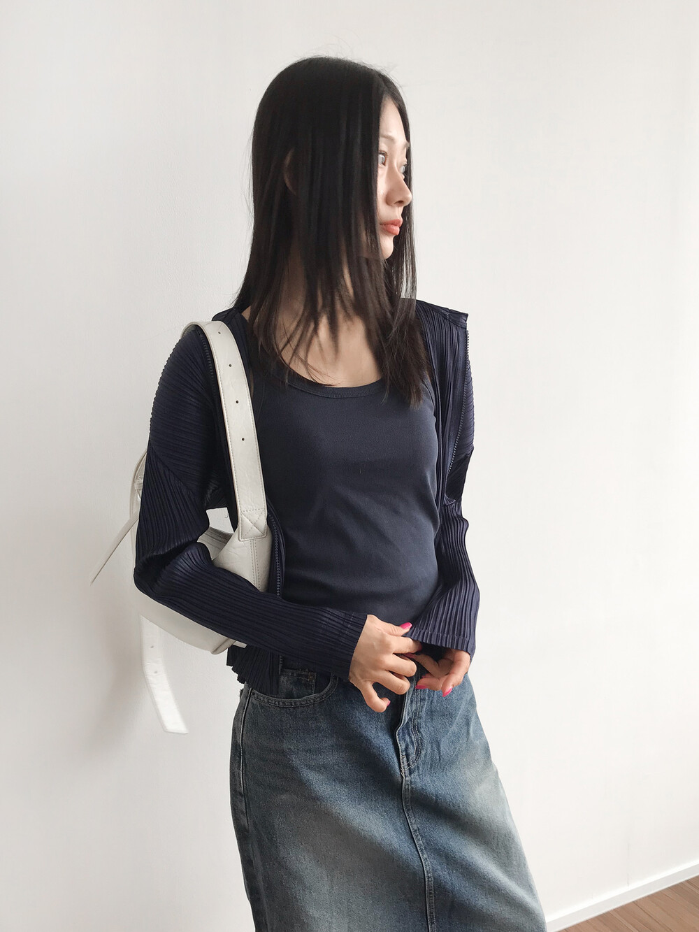 플리츠의 우아한 결감이 톡톡 튀면서도