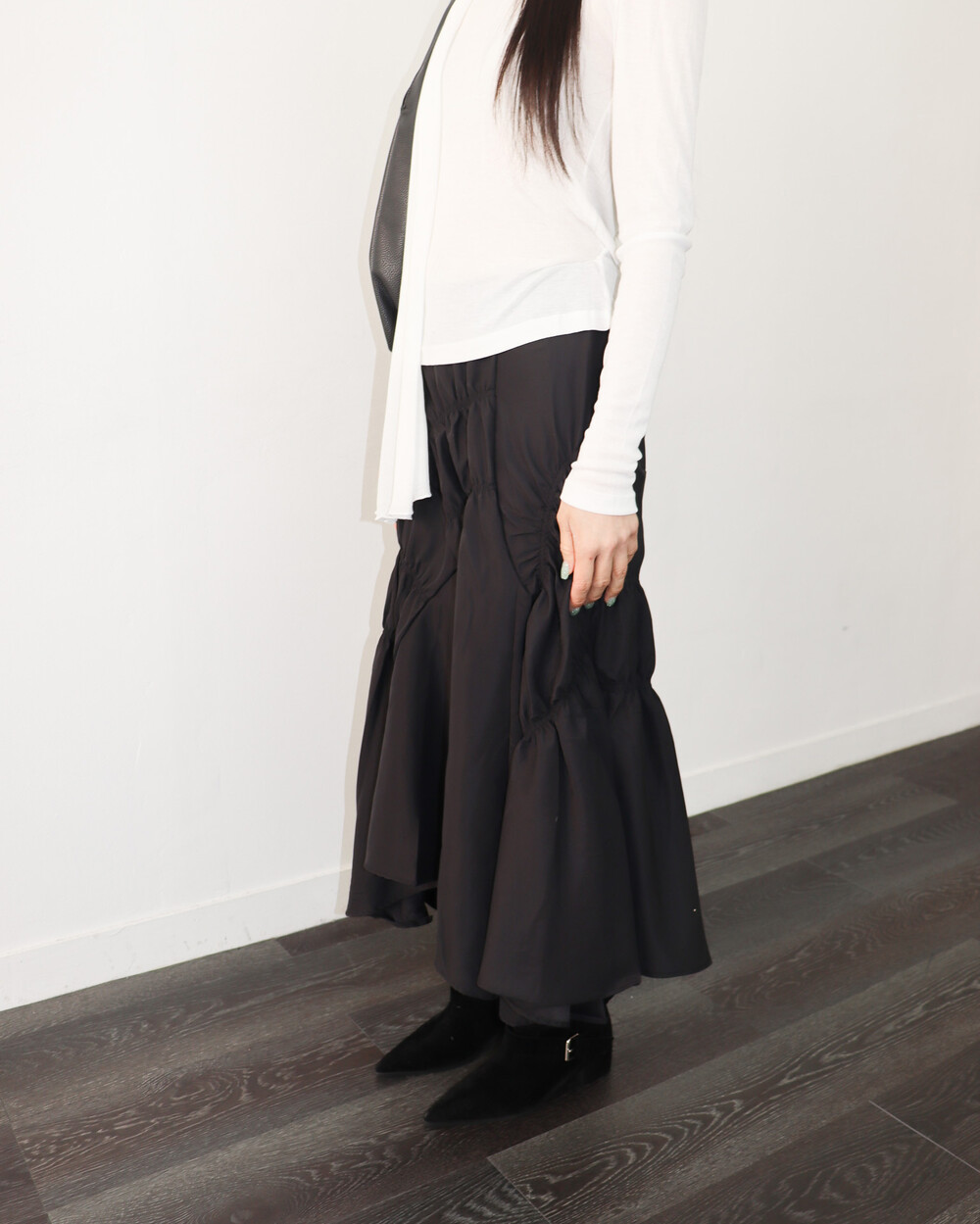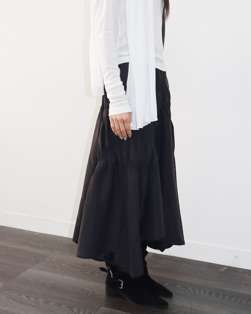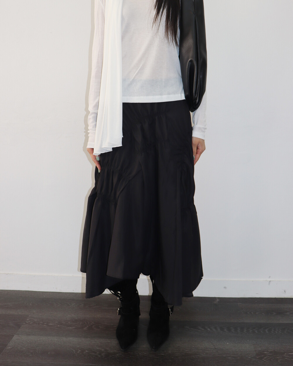 유니크한 디자인의 셔링 스커트