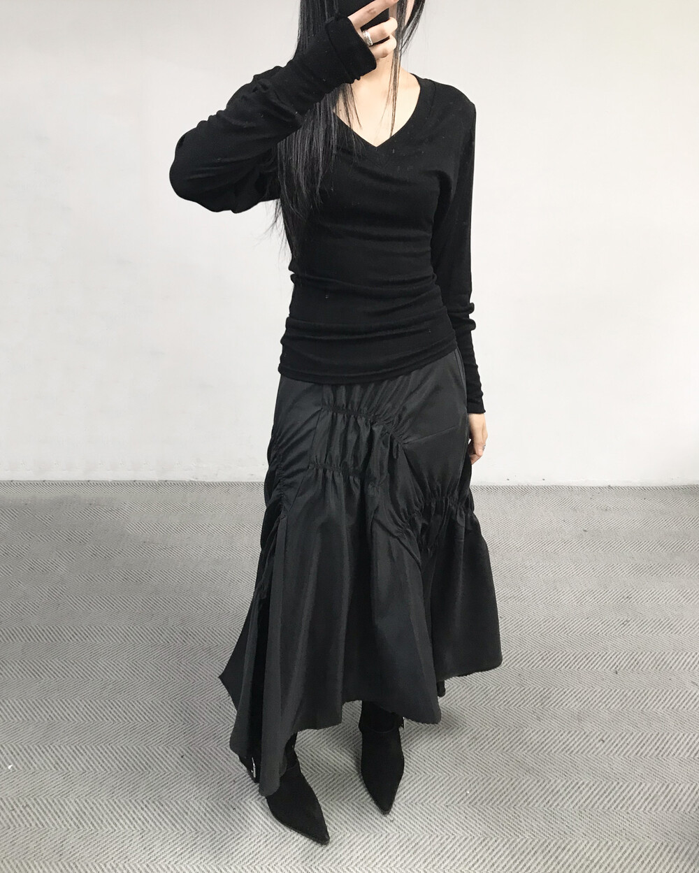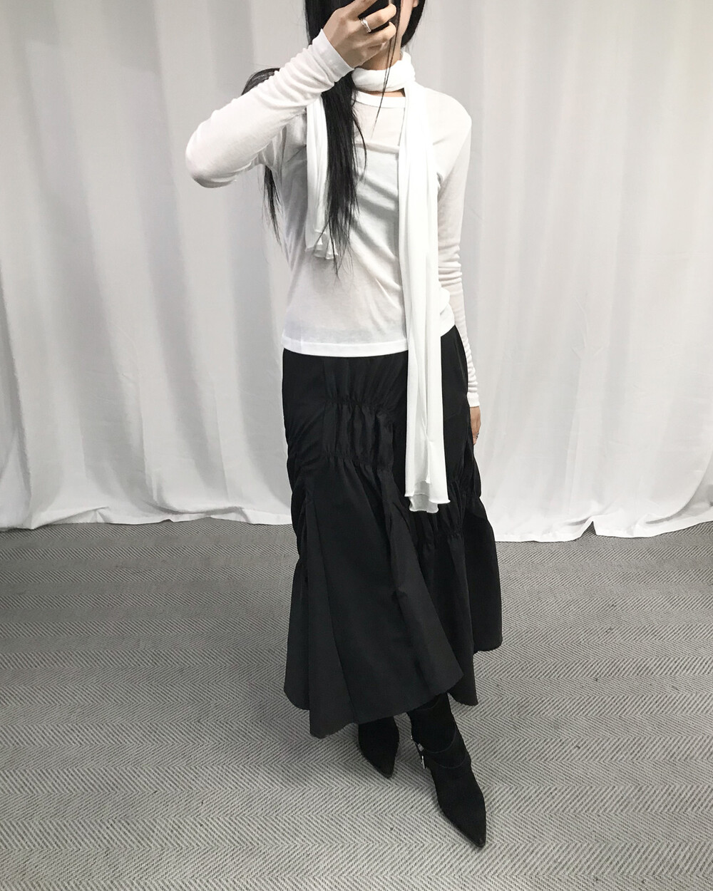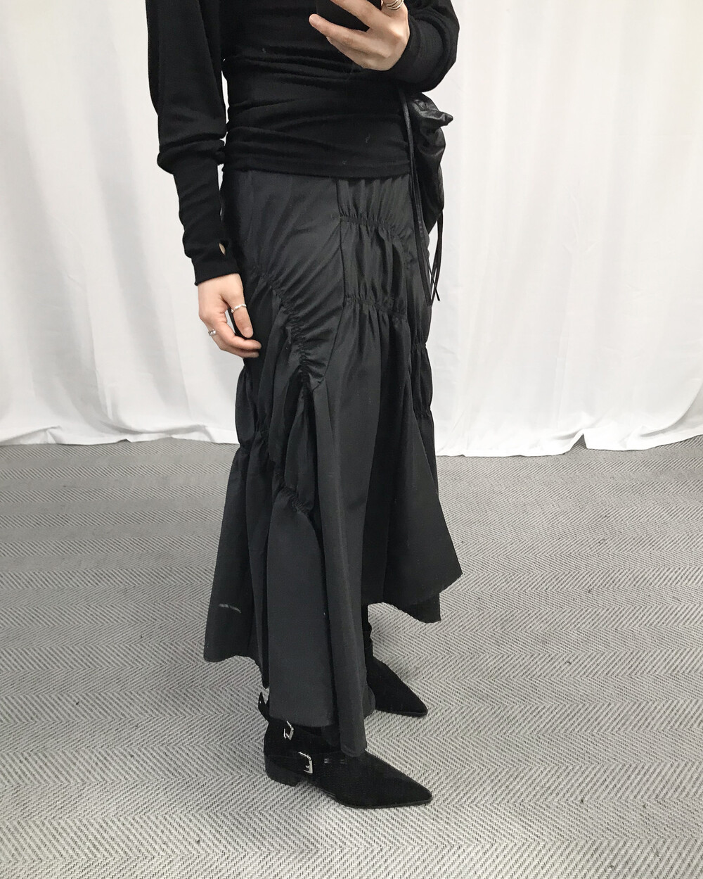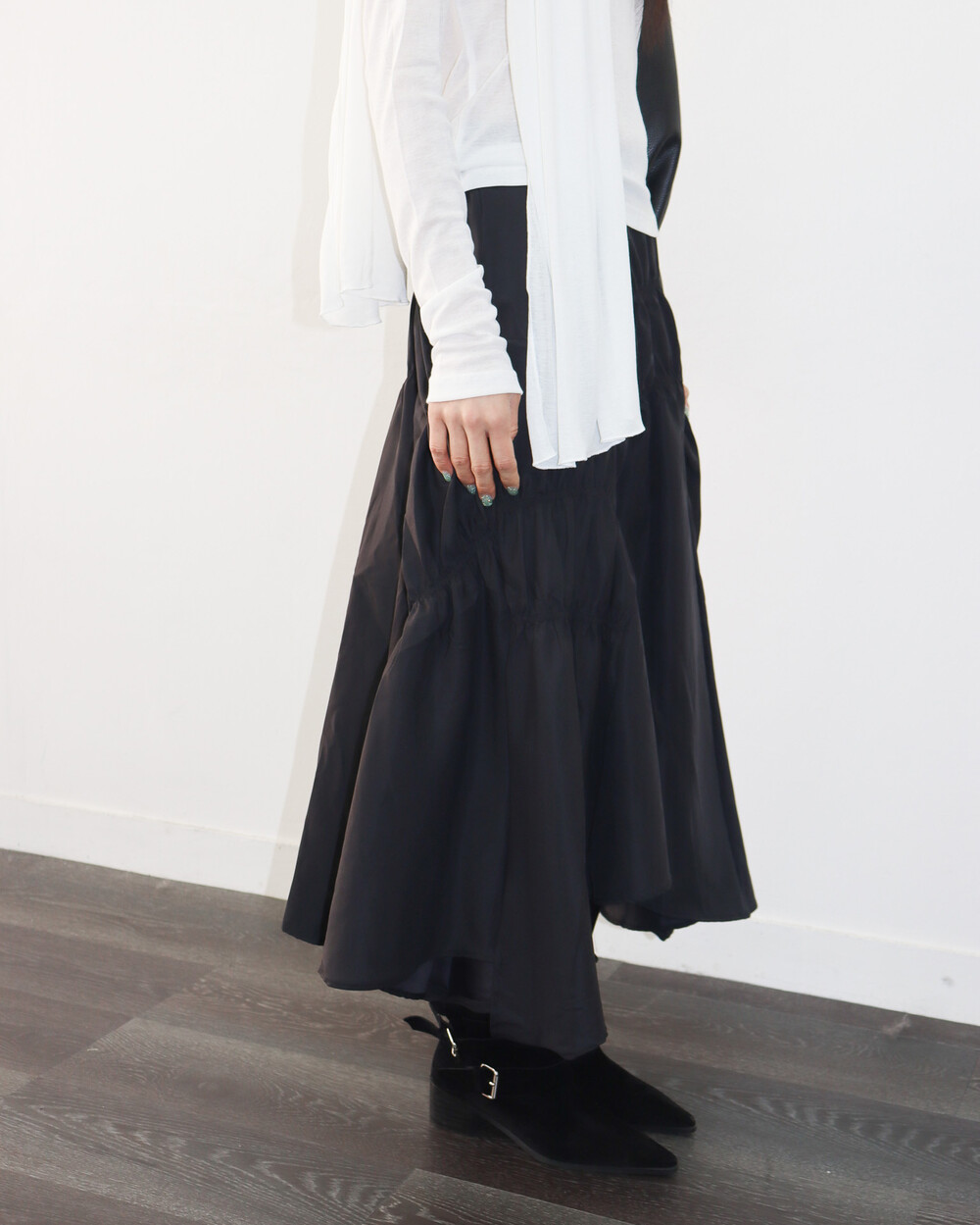 유니크한 디자인의 셔링 스커트