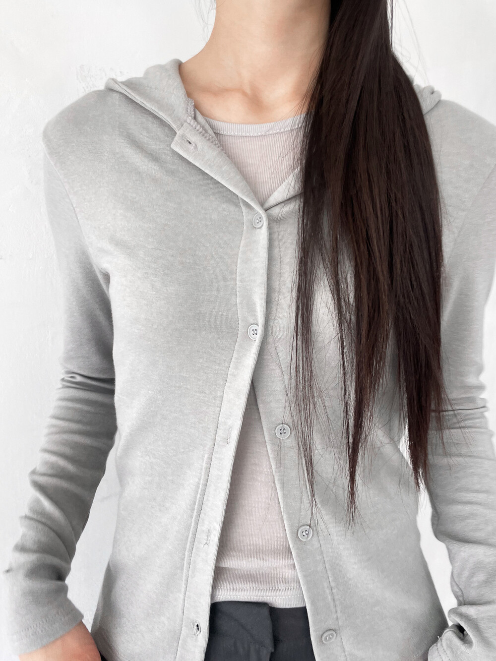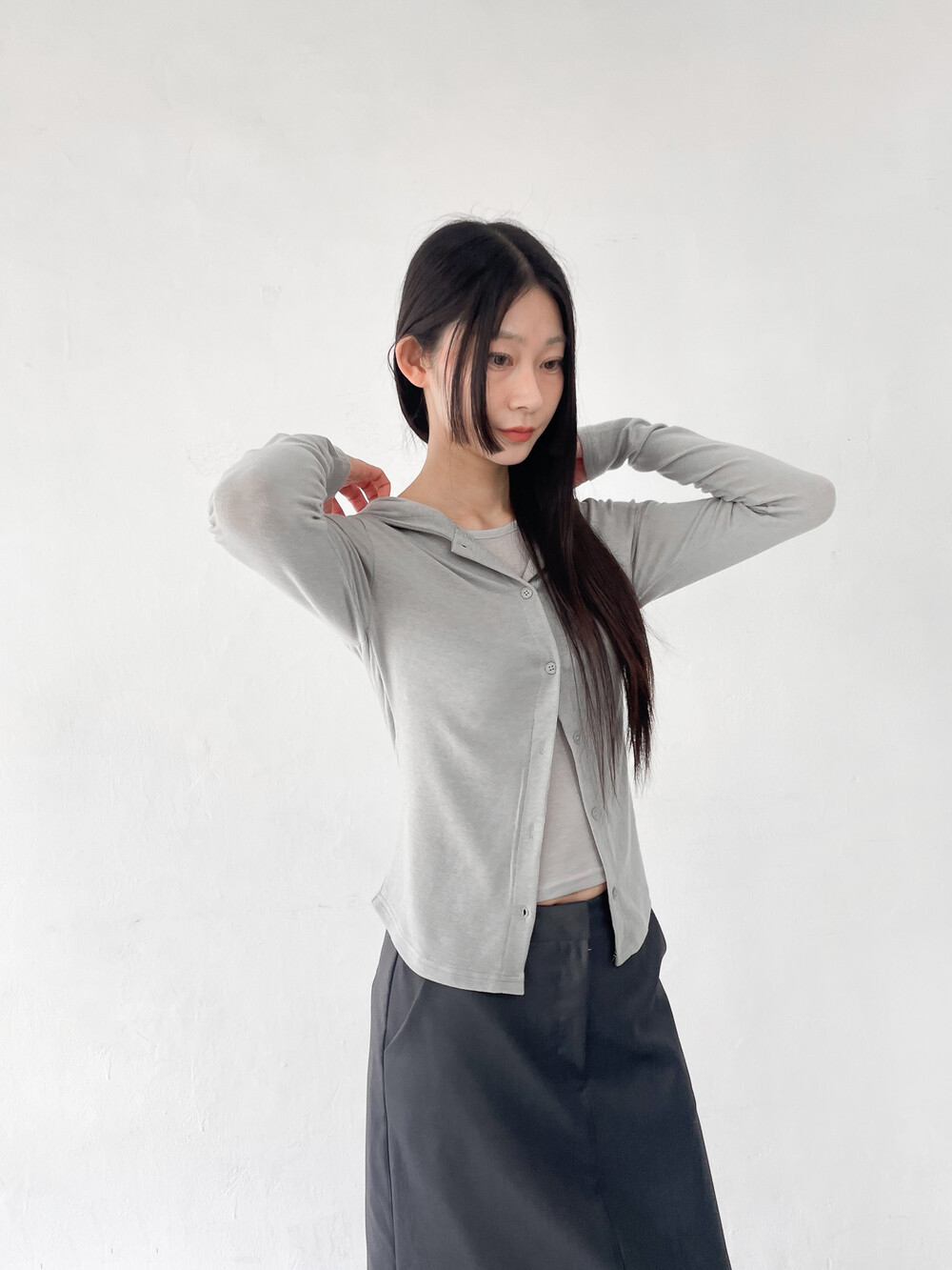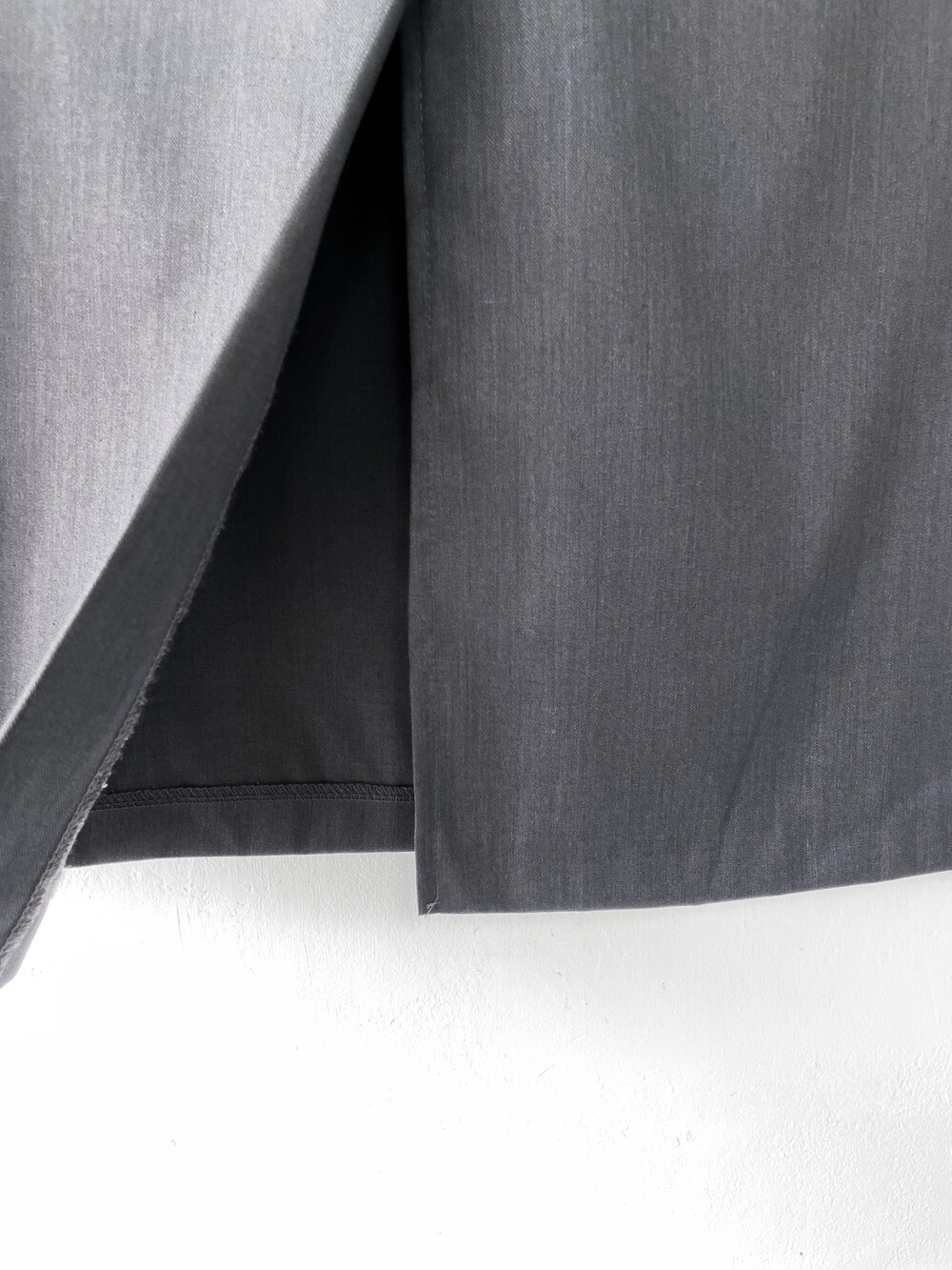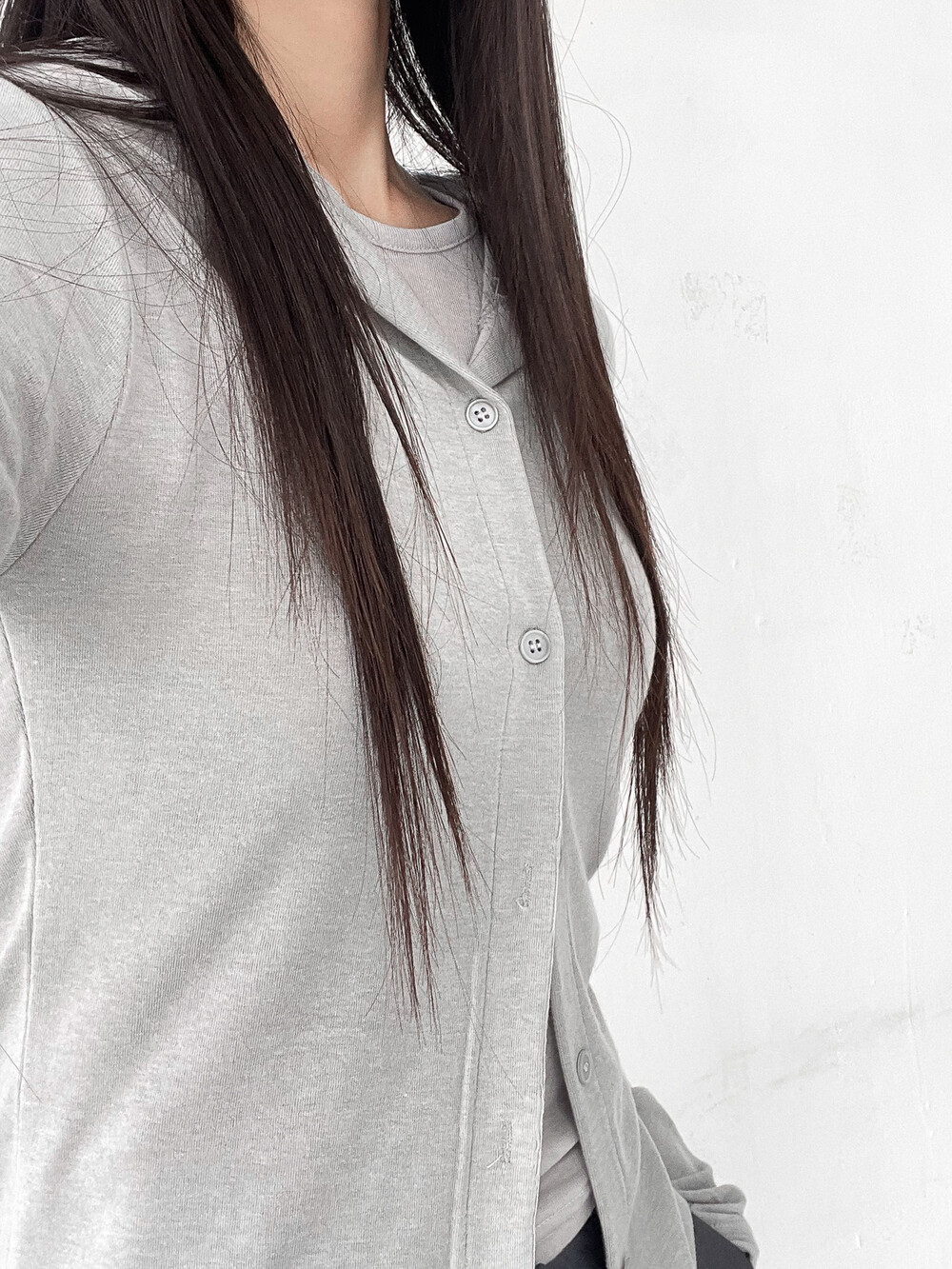 맥시한 기장감과 약간의 광택감이 도는 원단,