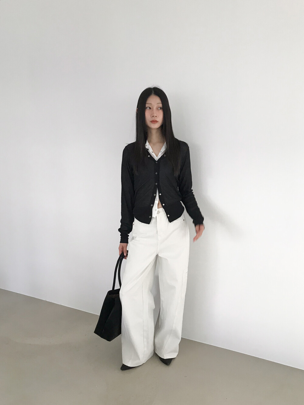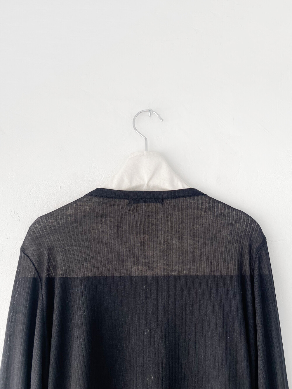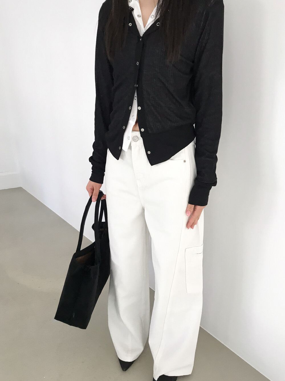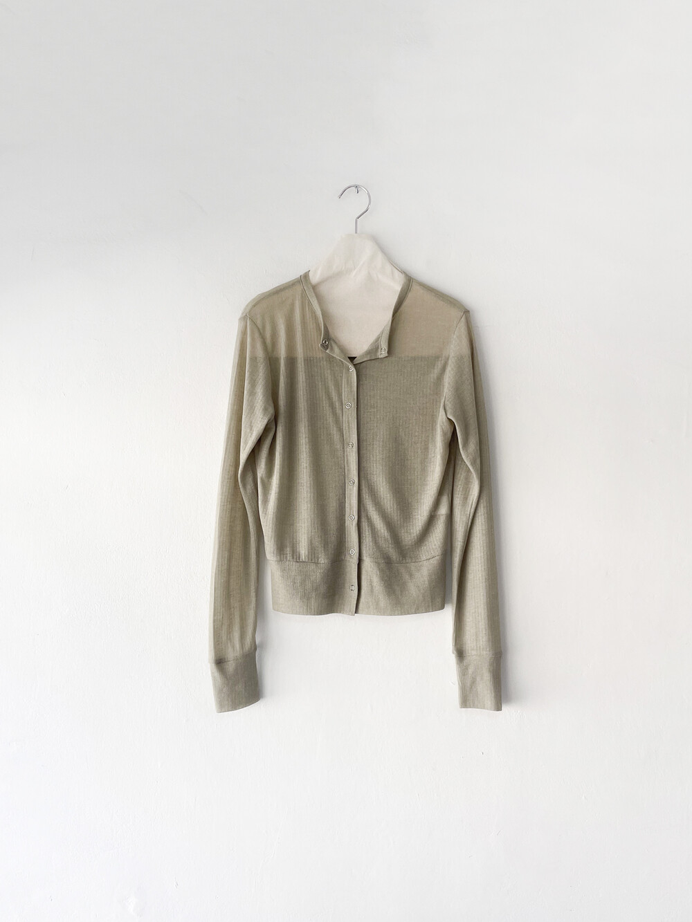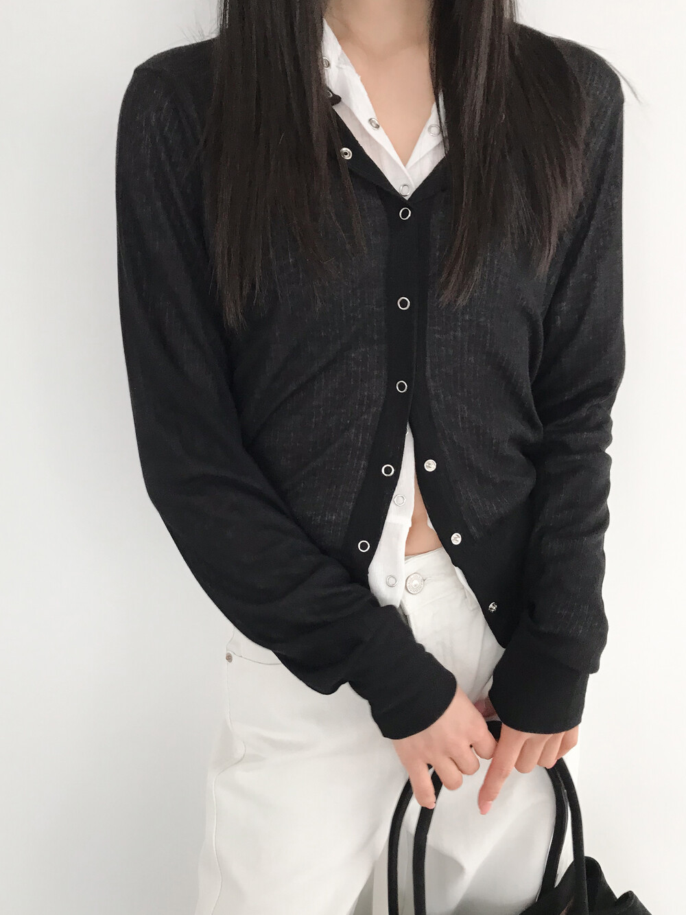 얇은 소재감으로 이너의 컬러감이 약간 희끗하게 비쳐