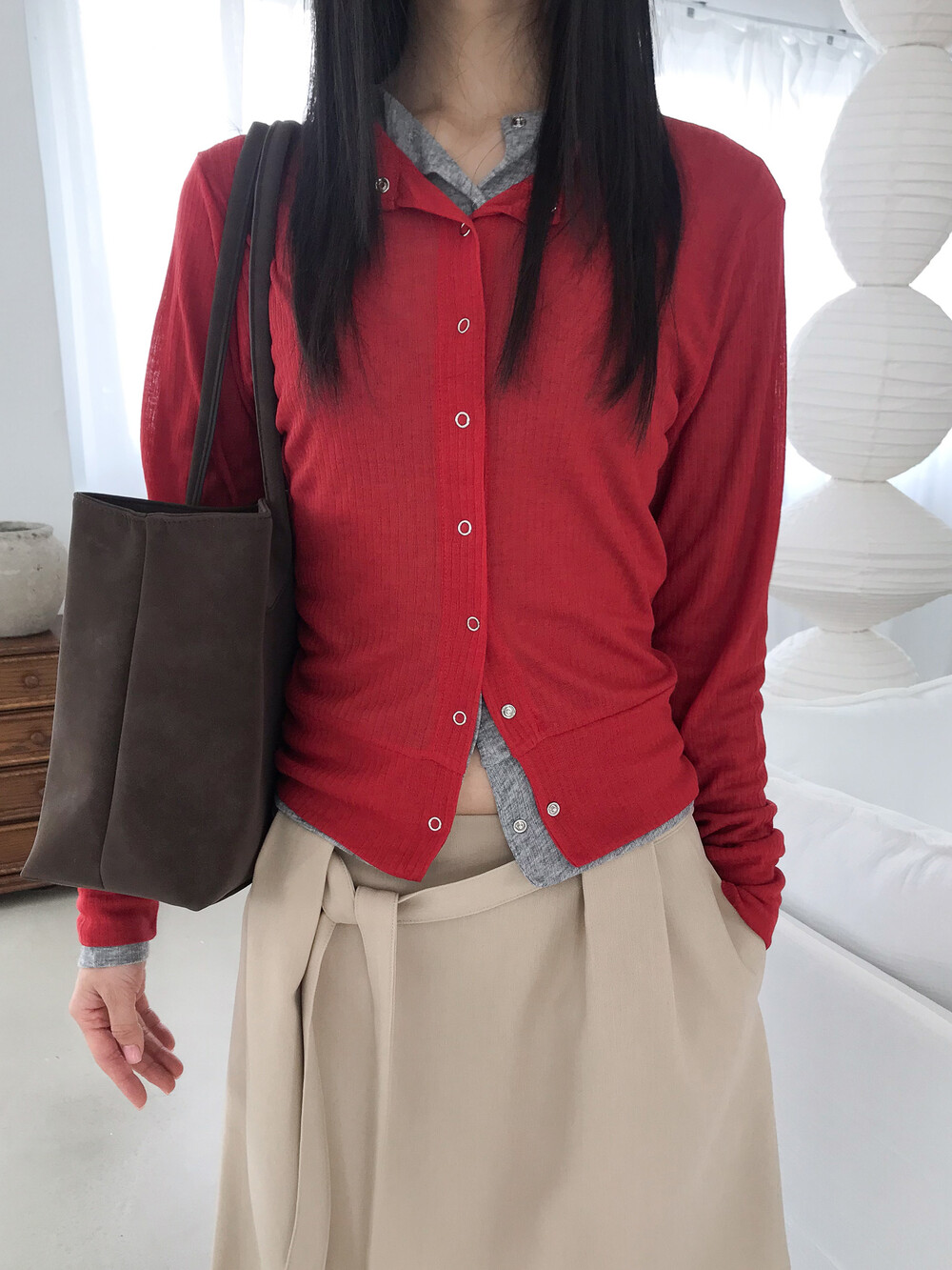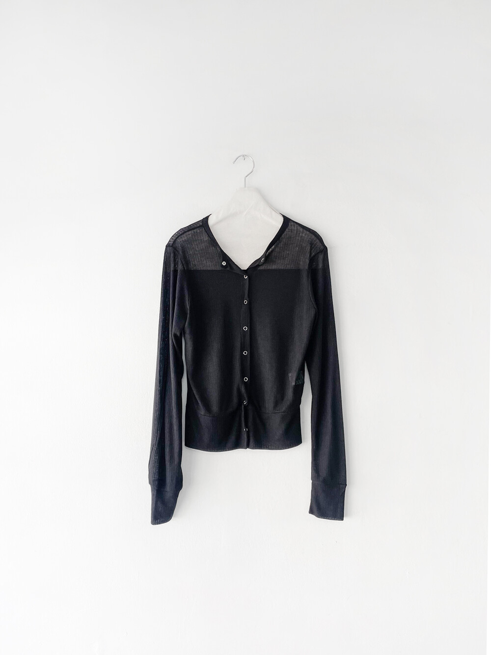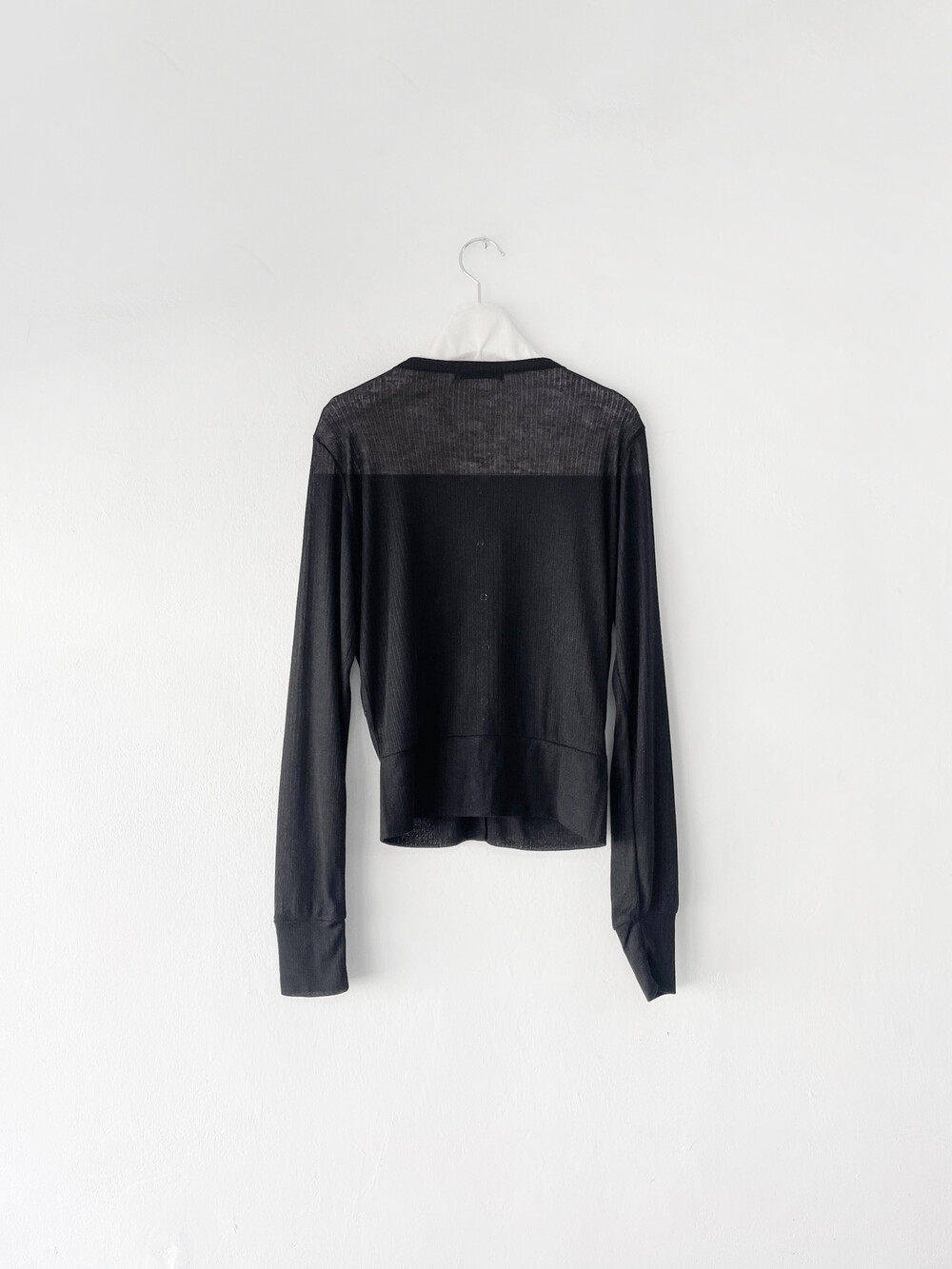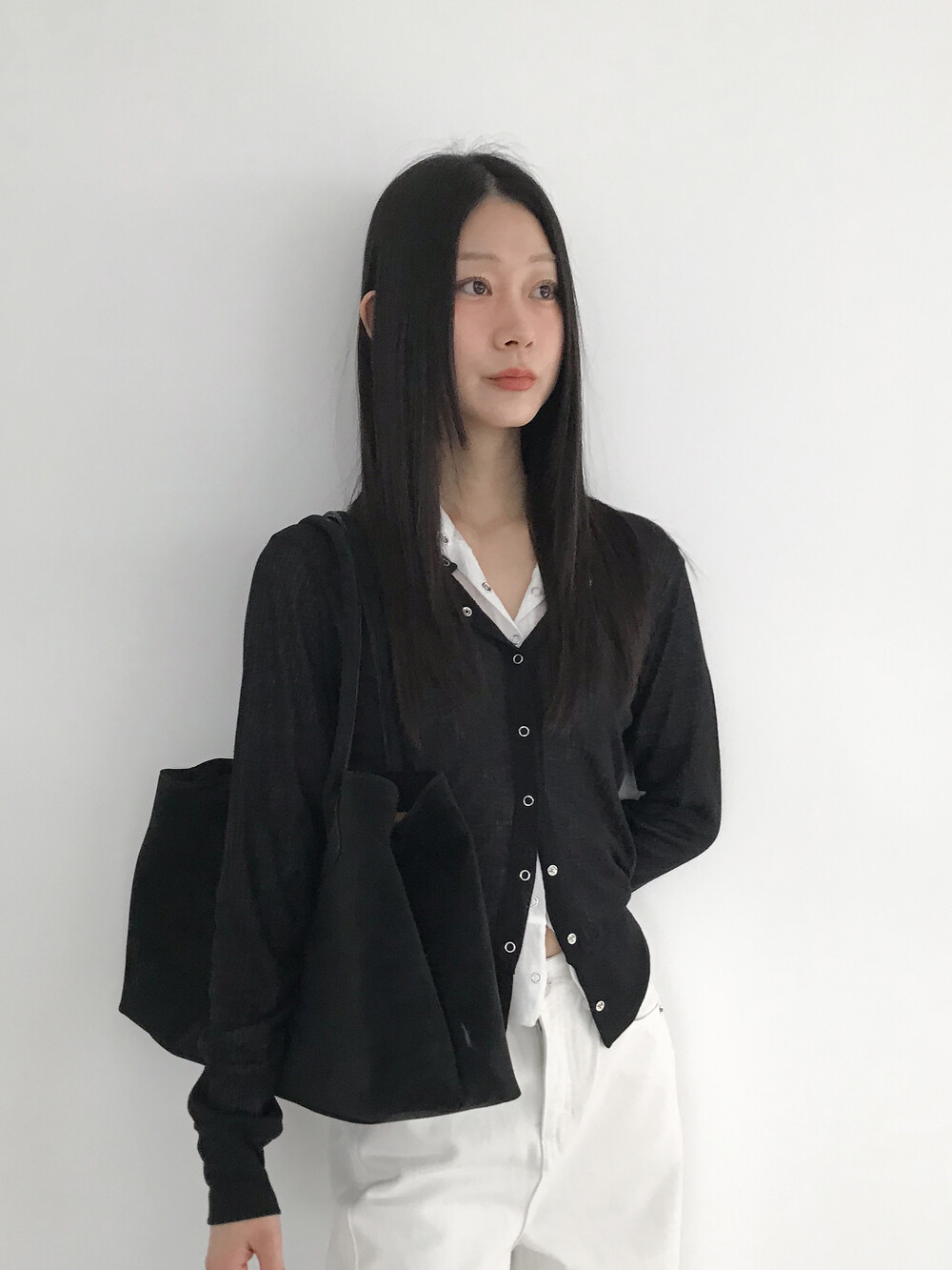 얇은 소재감으로 이너의 컬러감이 약간 희끗하게 비쳐