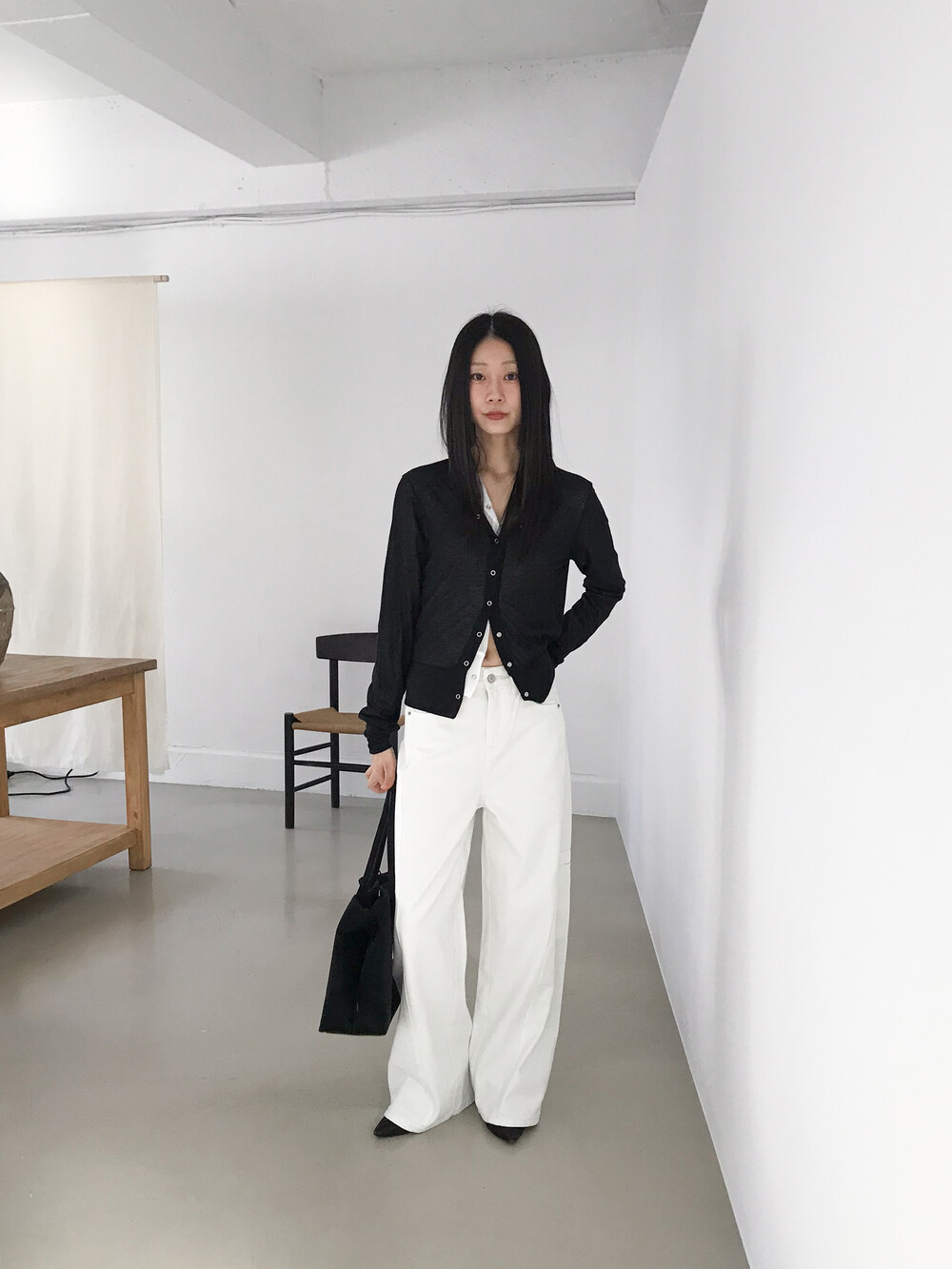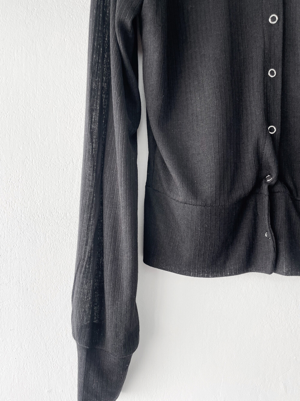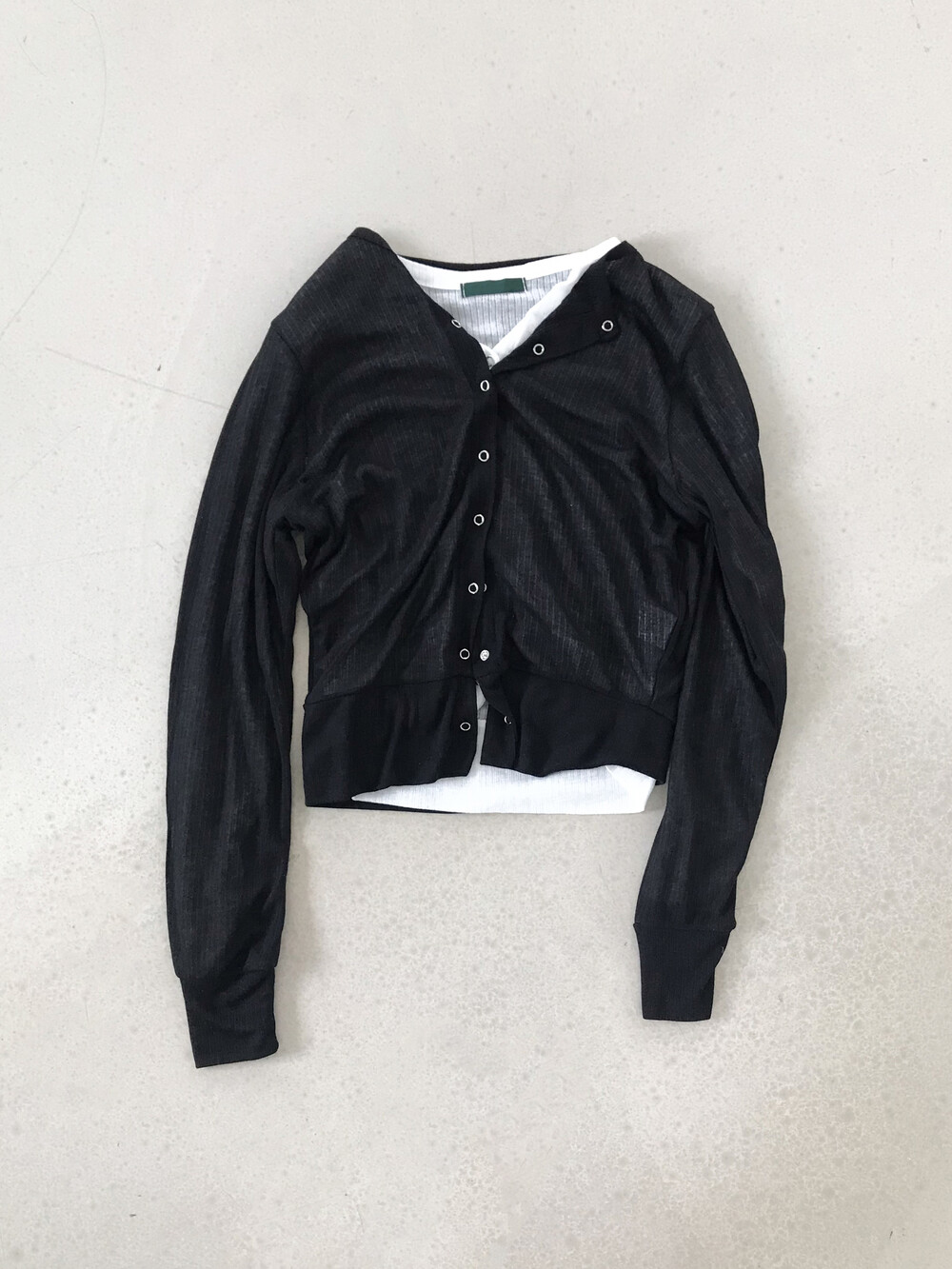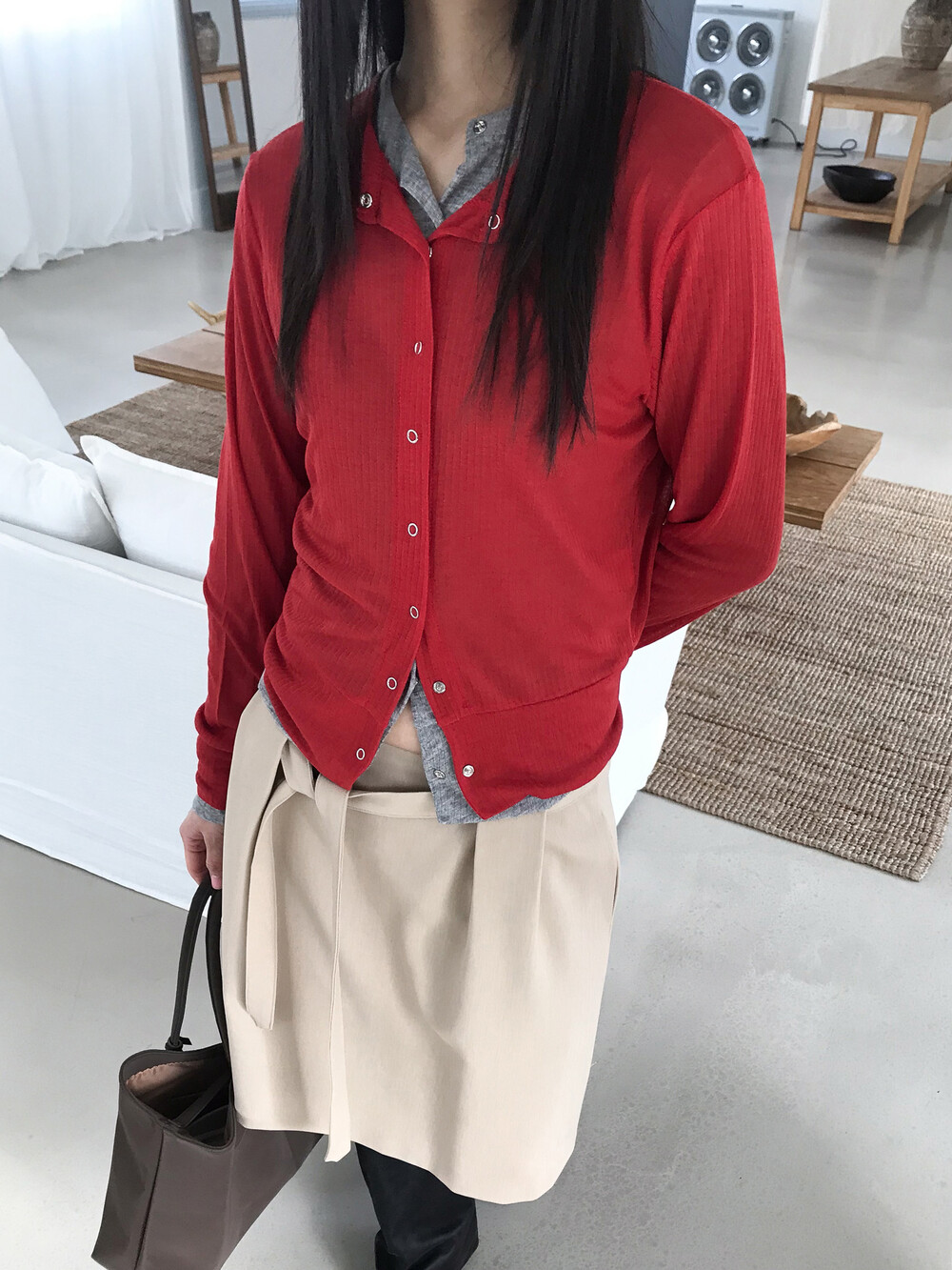 얇은 소재감으로 이너의 컬러감이 약간 희끗하게 비쳐