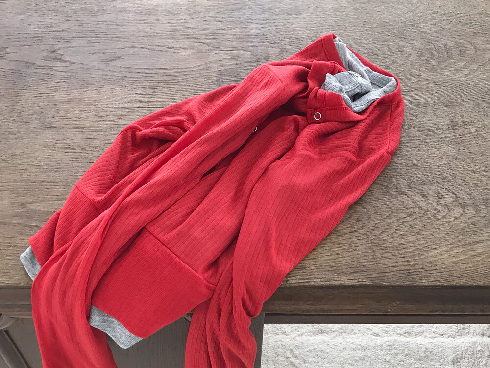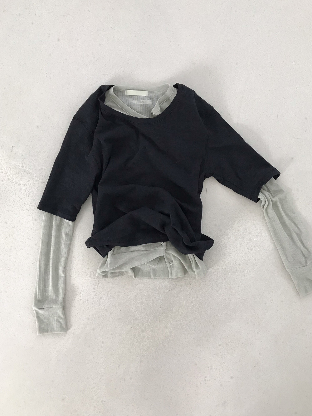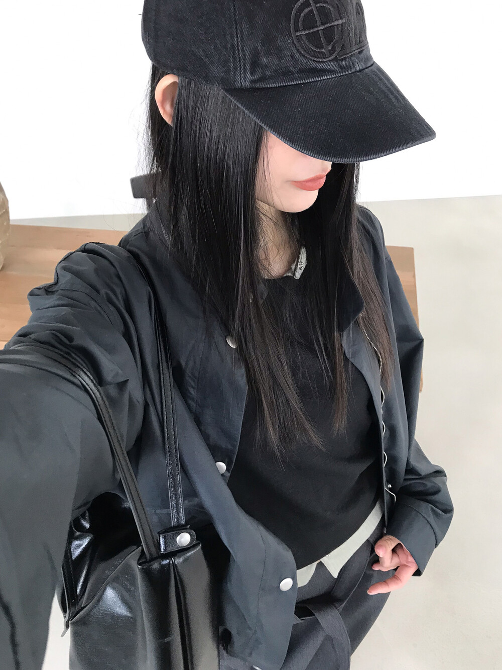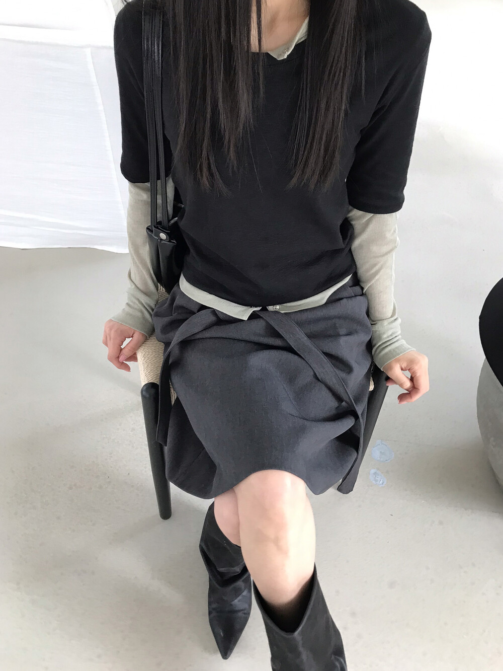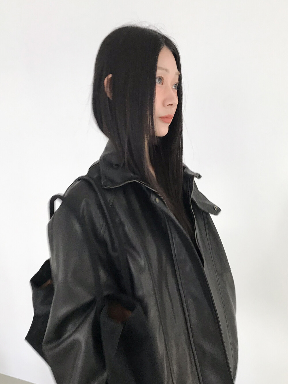 얇은 소재감으로 이너의 컬러감이 약간 희끗하게 비쳐