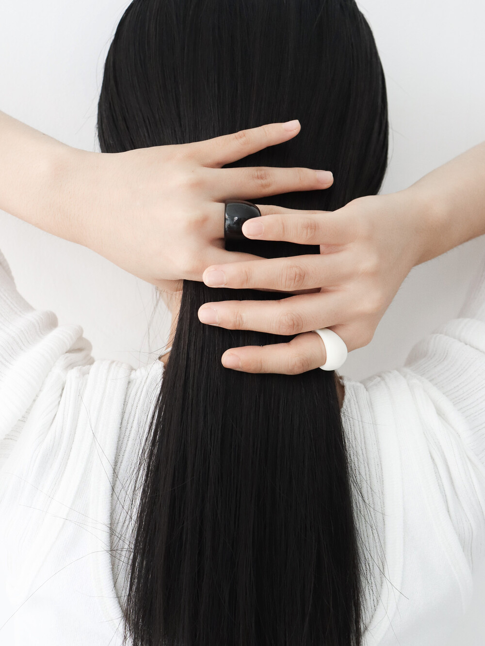 두께감이 있지만 아크릴 소재로 가볍게 착용됩니다