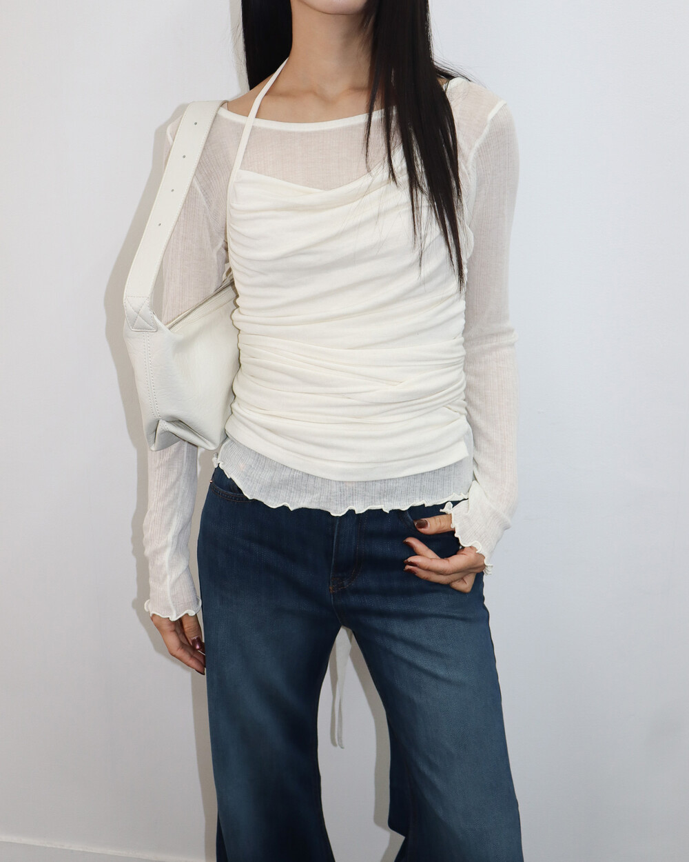 앞판의 파도가 치는 듯한 셔링들이 감각적인 !