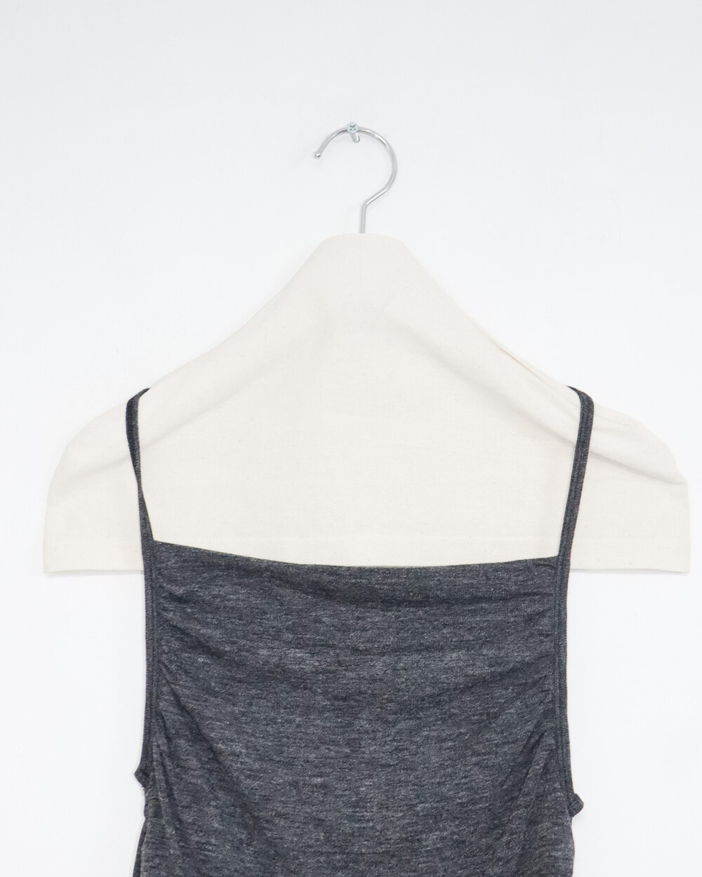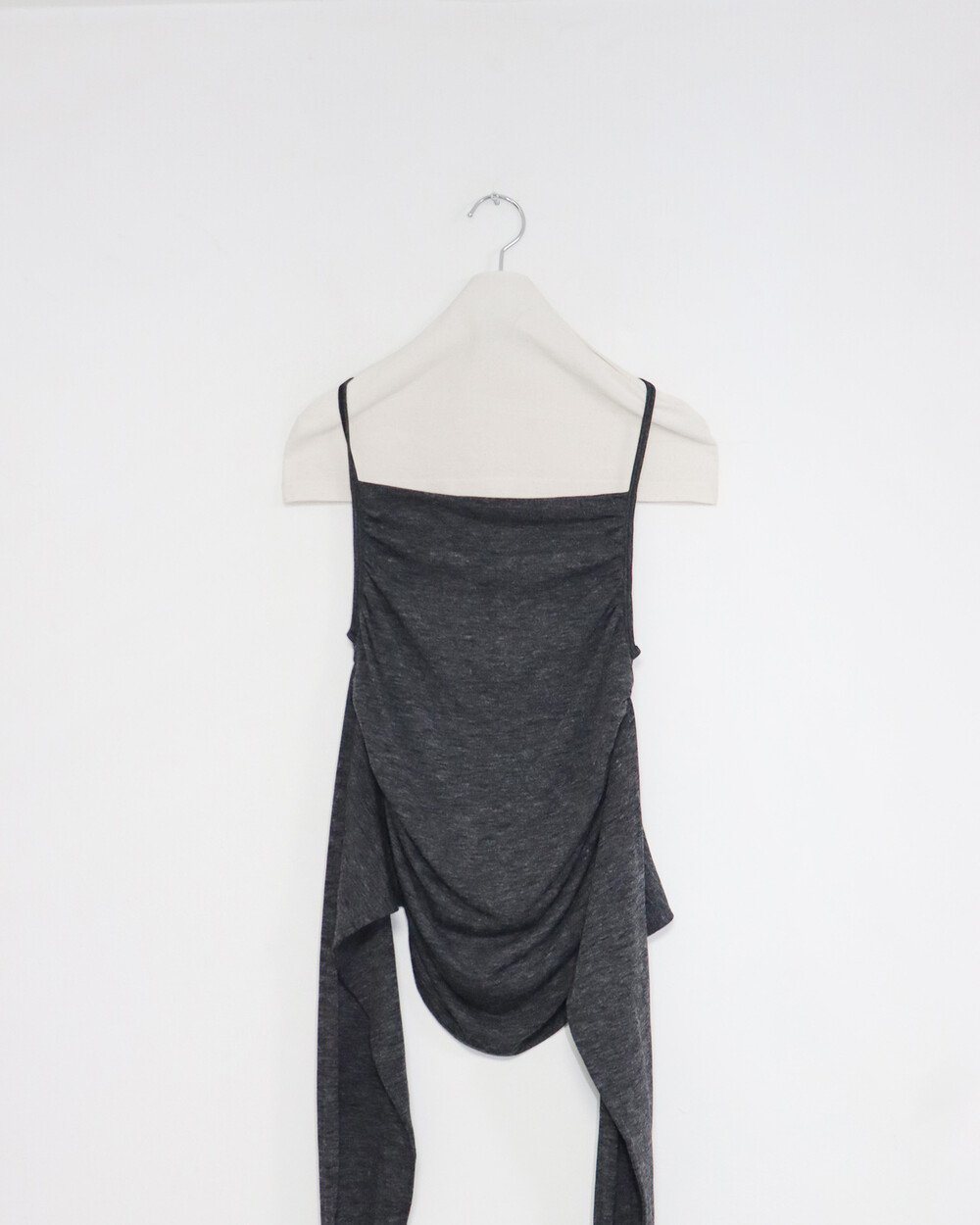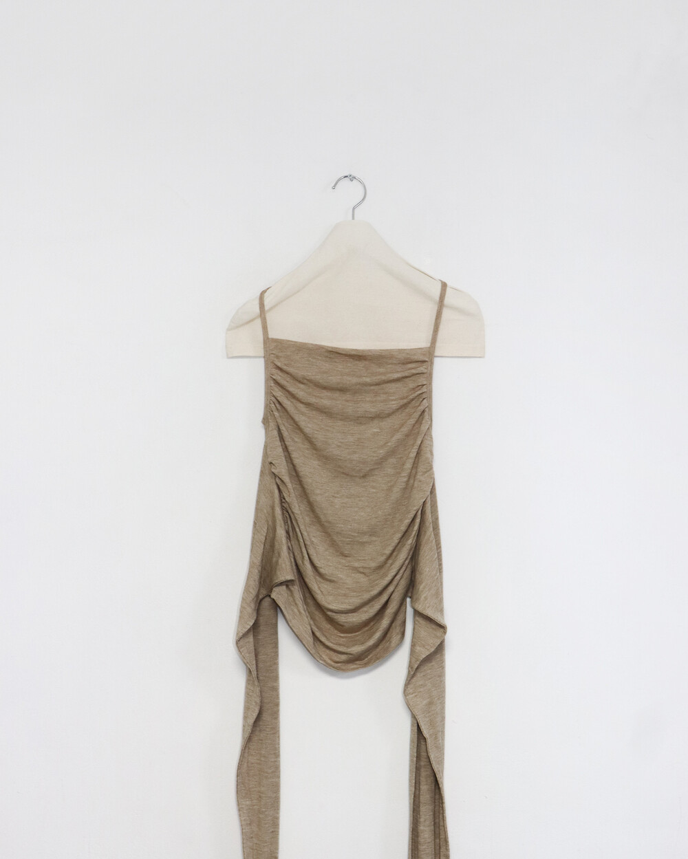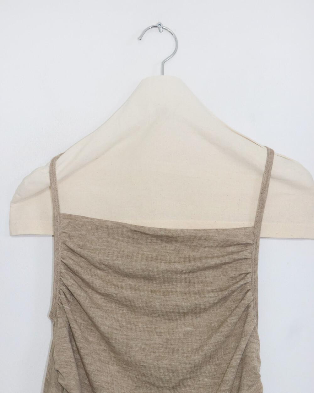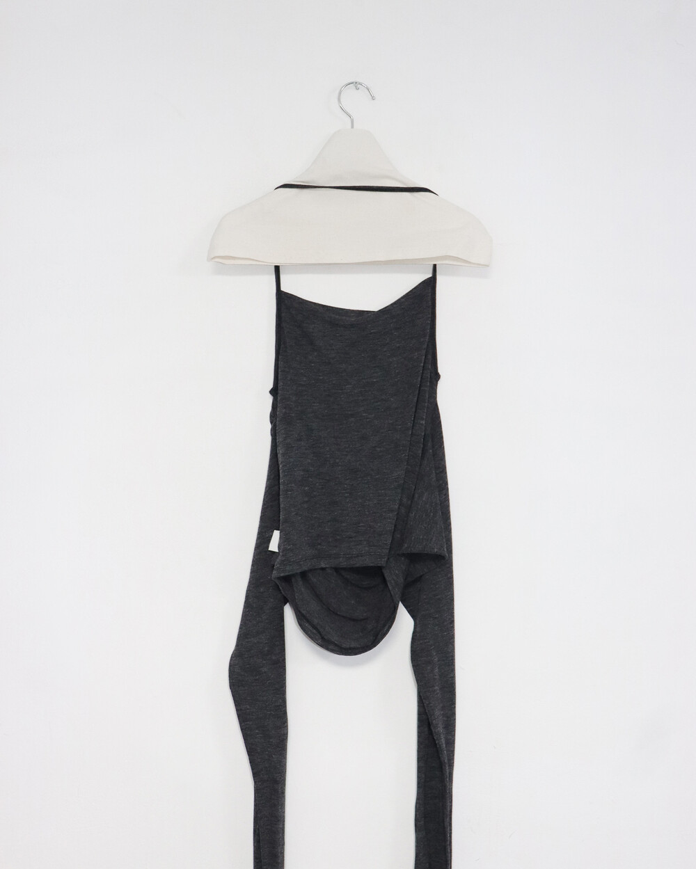 앞판은 홀터넥, 뒤판은 스트랩으로 디자인된 홀터 슬리브리스입니다