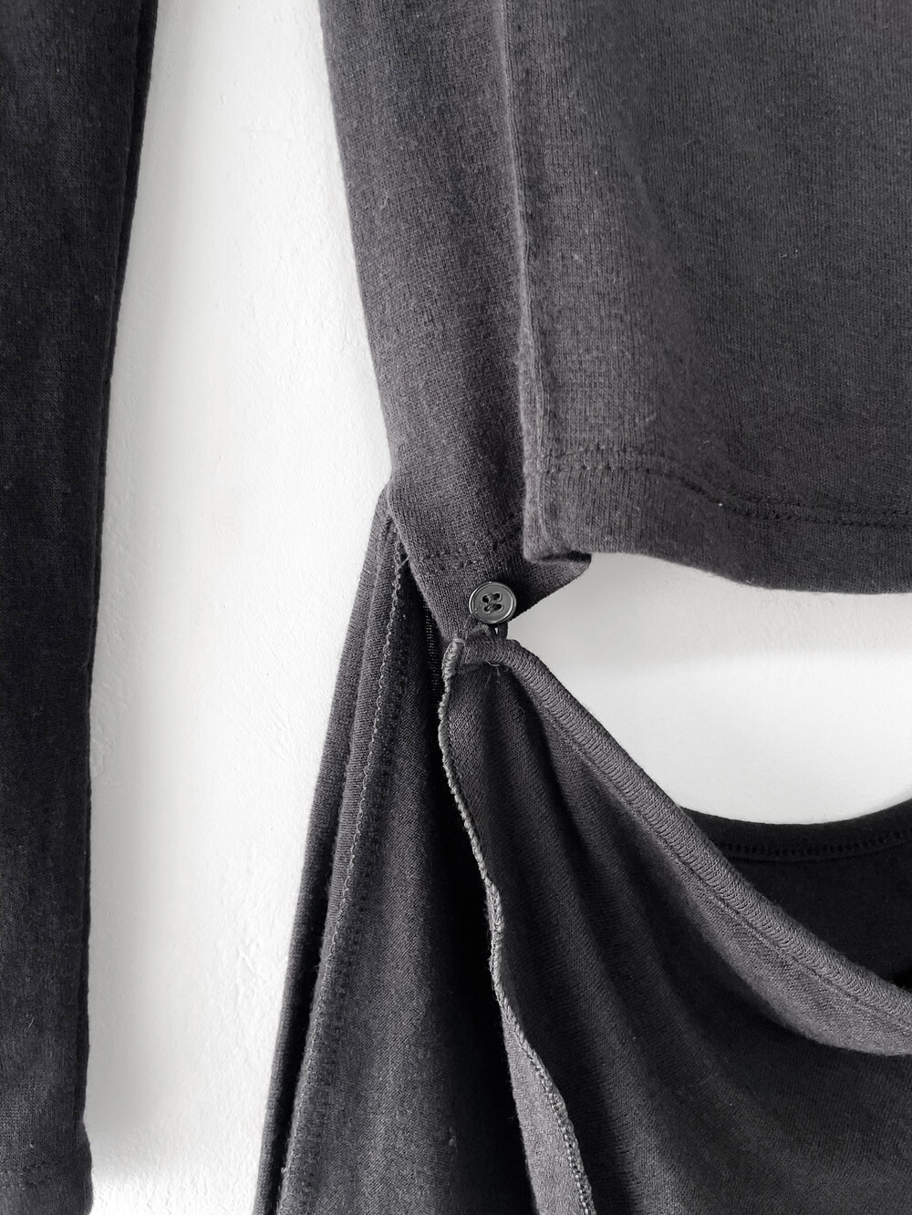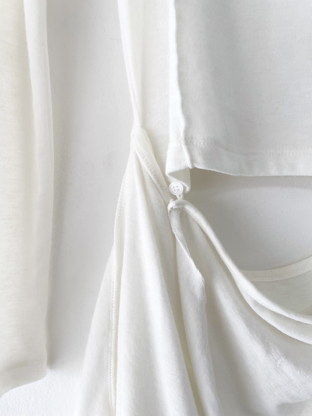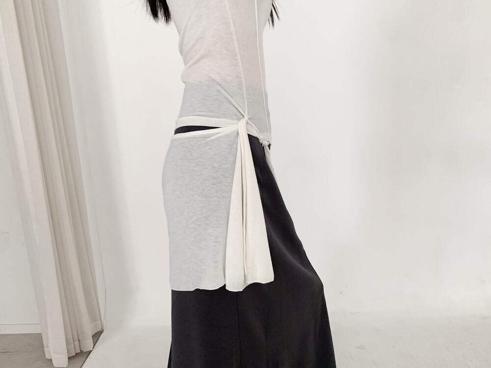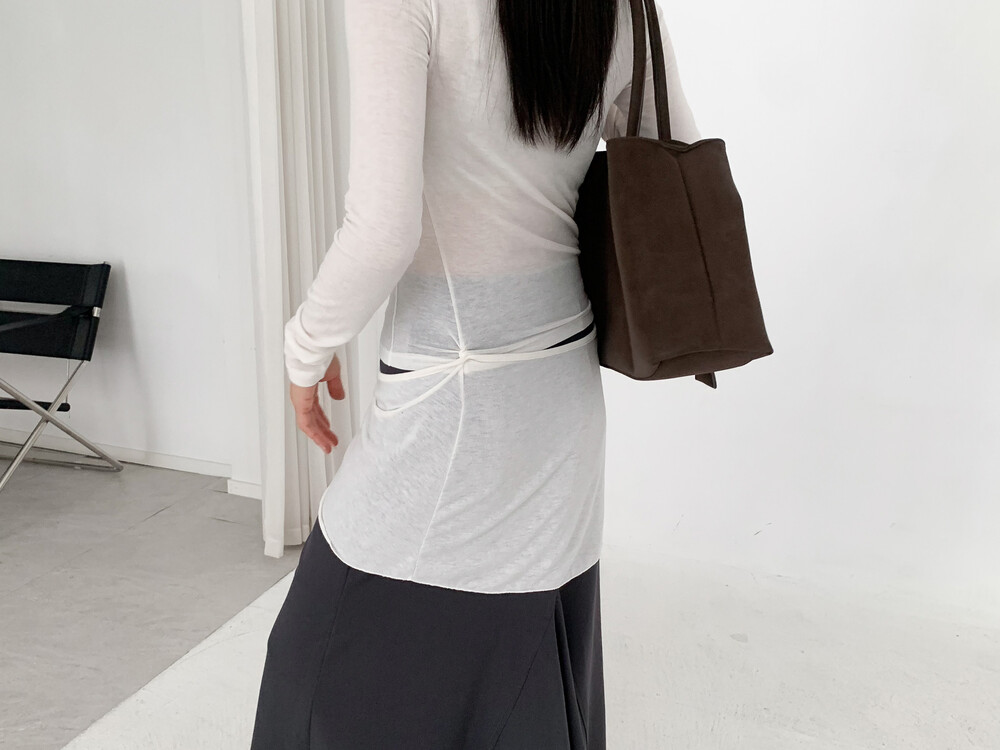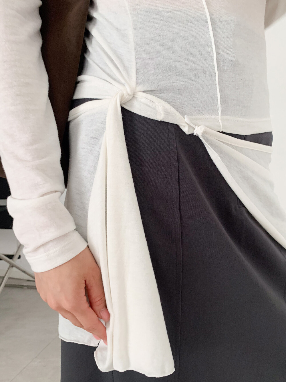 기본적인 탑으로 보이지만, 양 쪽 사이즈 버튼에 랩을 고정하여