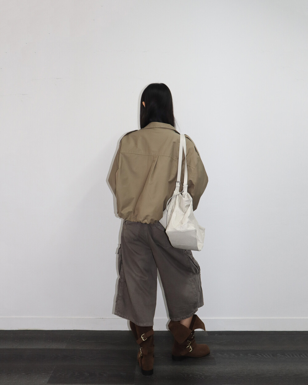 총장 앞53 뒤55.5 어깨 57 가슴 61 소매 53 암홀 24 밑단 ~ 60 (스트링으로 조절가능)