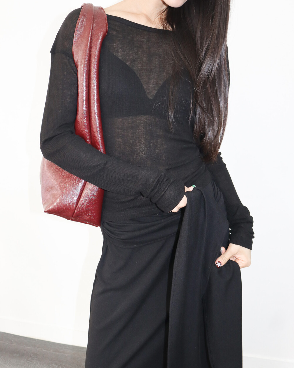맥시한 기장감이 더욱 쿨~한 매력으로 다가온.