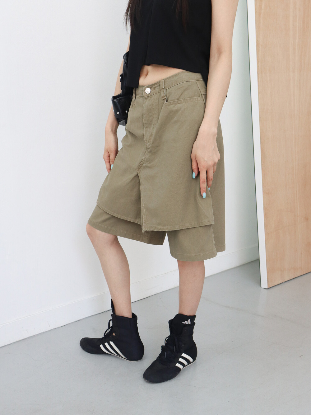 OAS LAYERED BERMUDA PANTS (KHAKI)