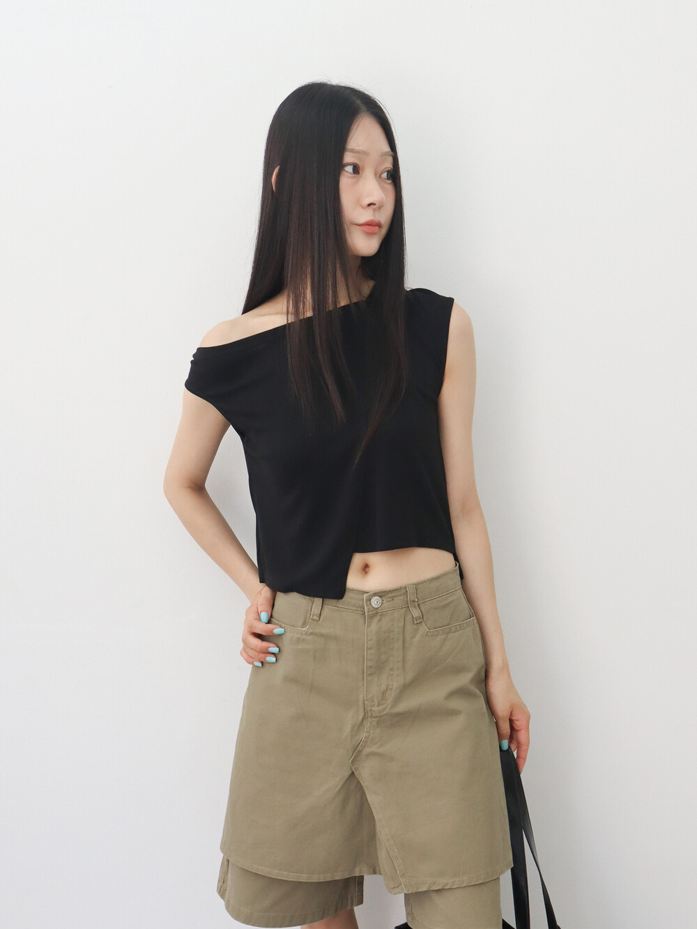 적댱히 와이드한 버뮤다팬츠와 스커트가 레이어링 된 제품
