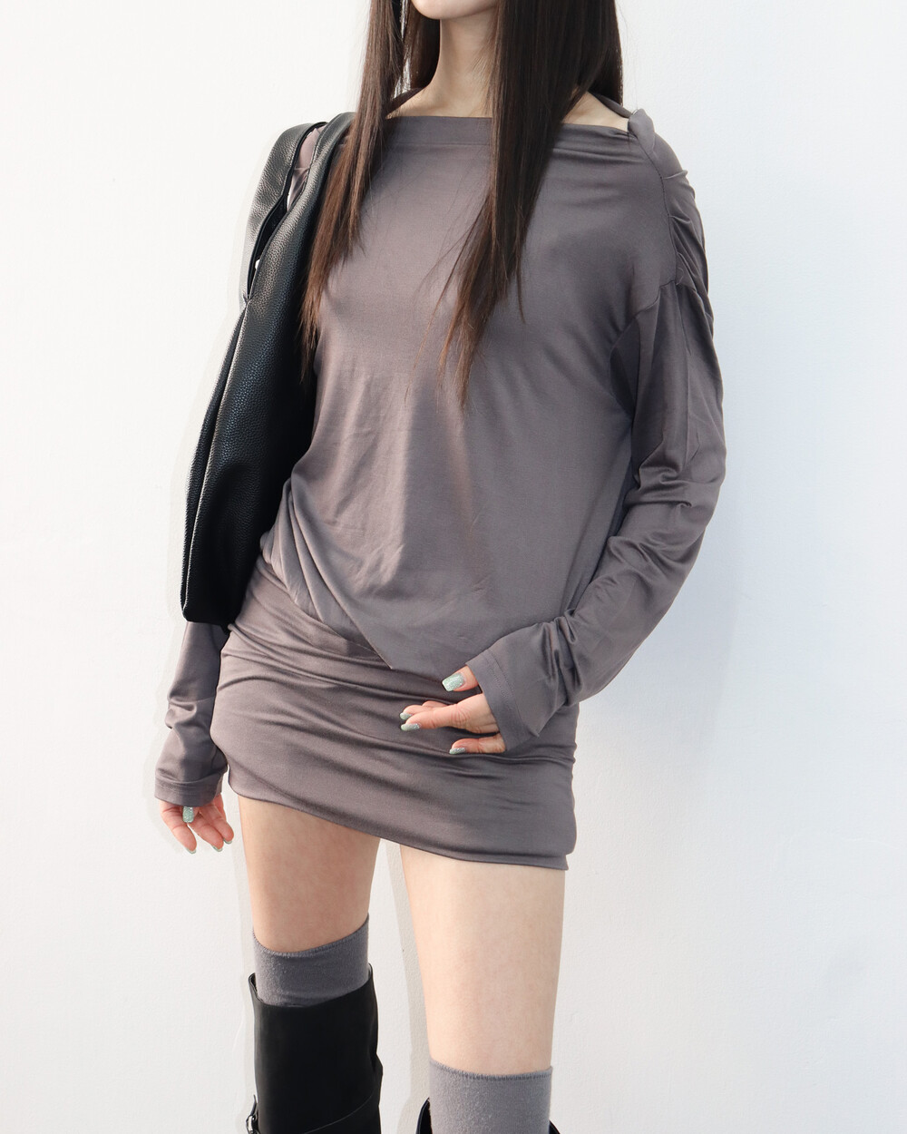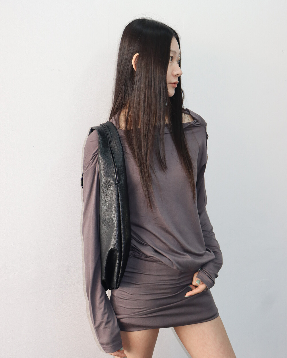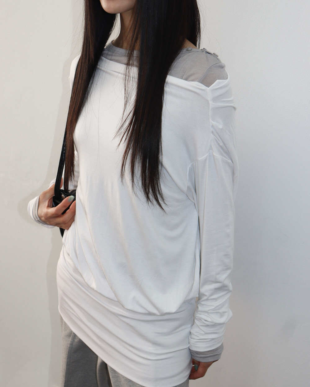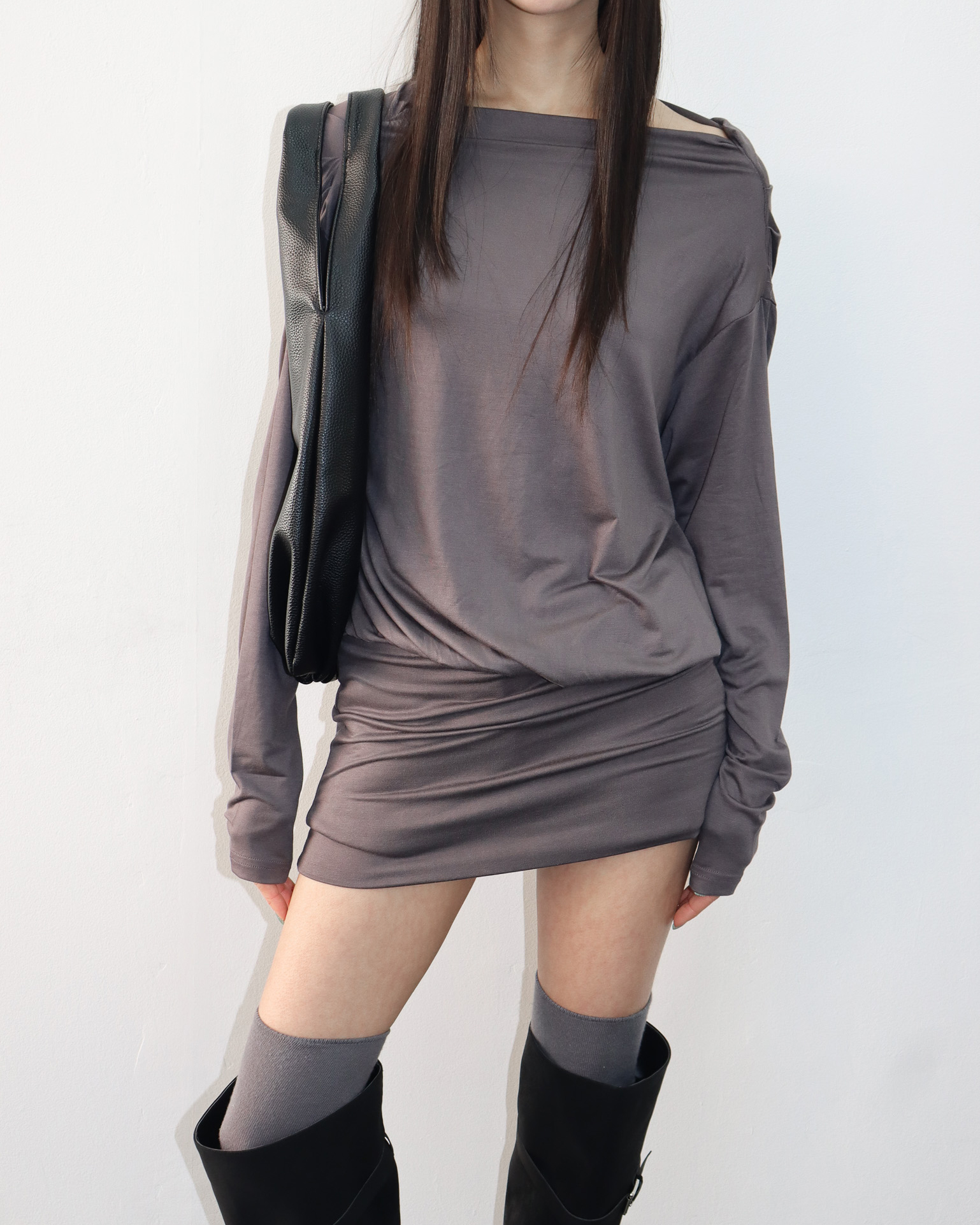 한쪽 어깨를 드러내기 때문에 날씬해 보이는 건 덤 !