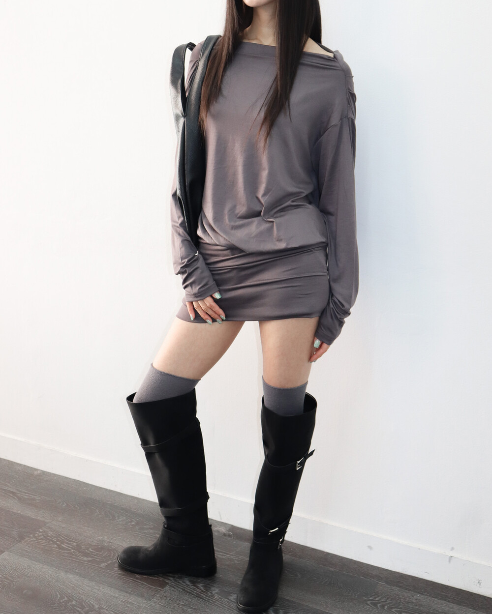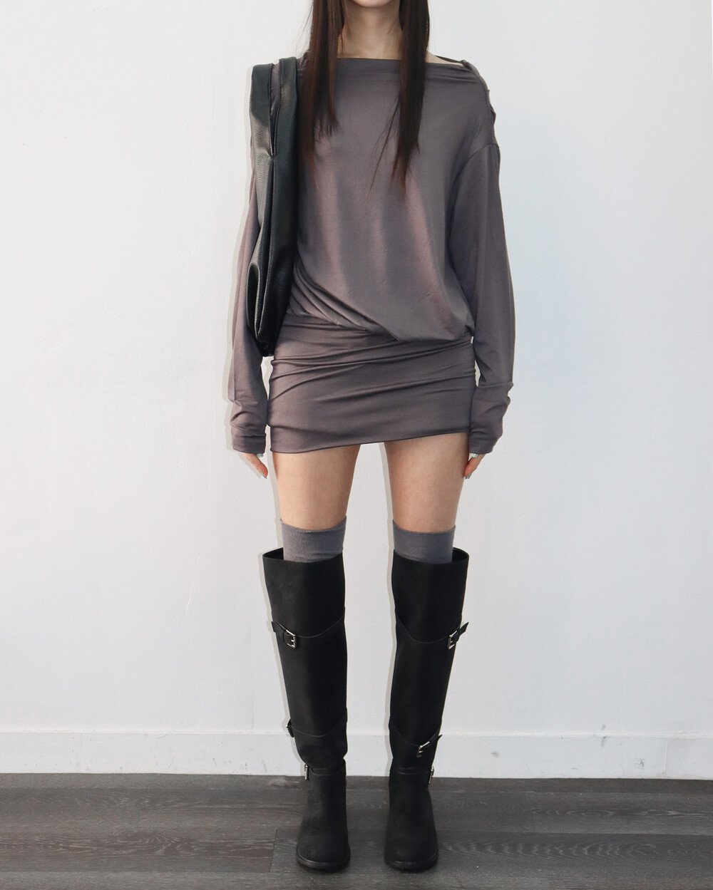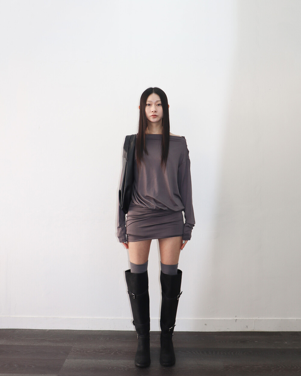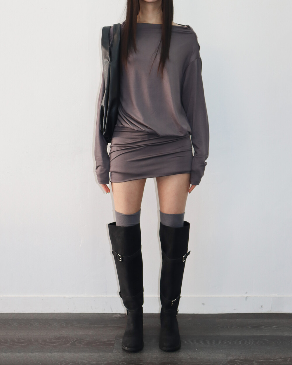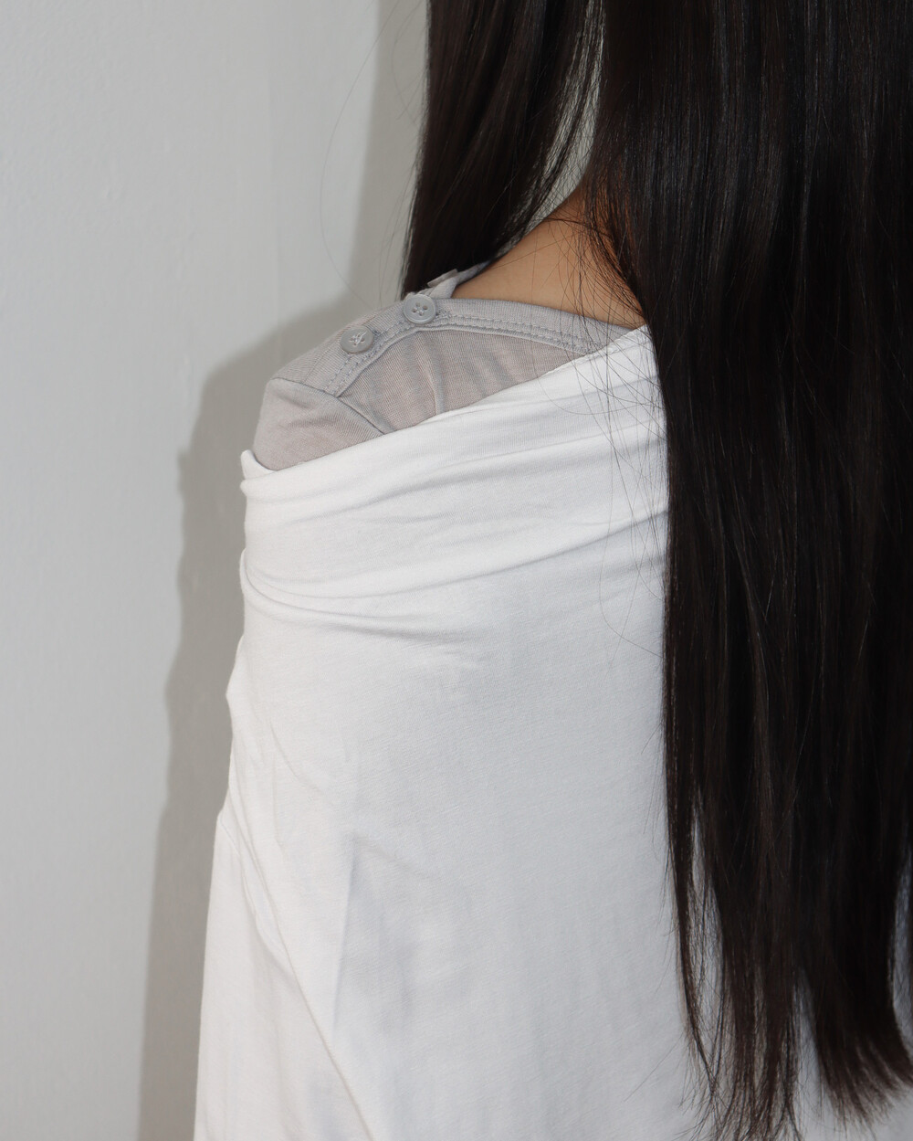 한쪽 어깨를 드러내기 때문에 날씬해 보이는 건 덤 !
