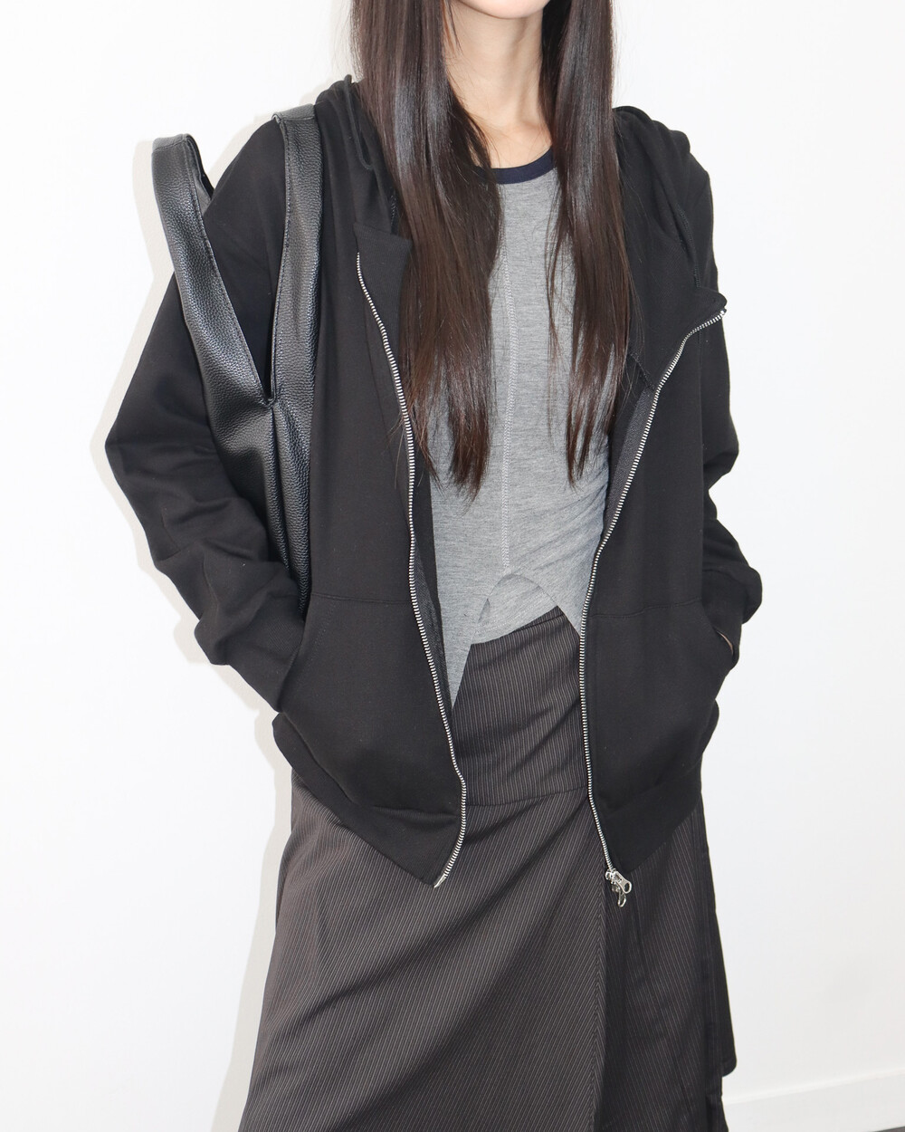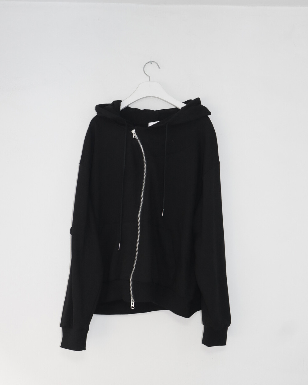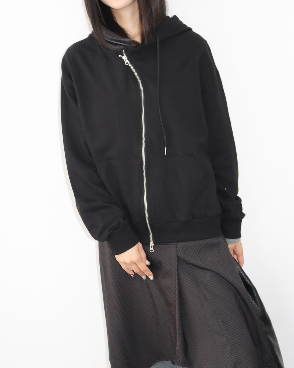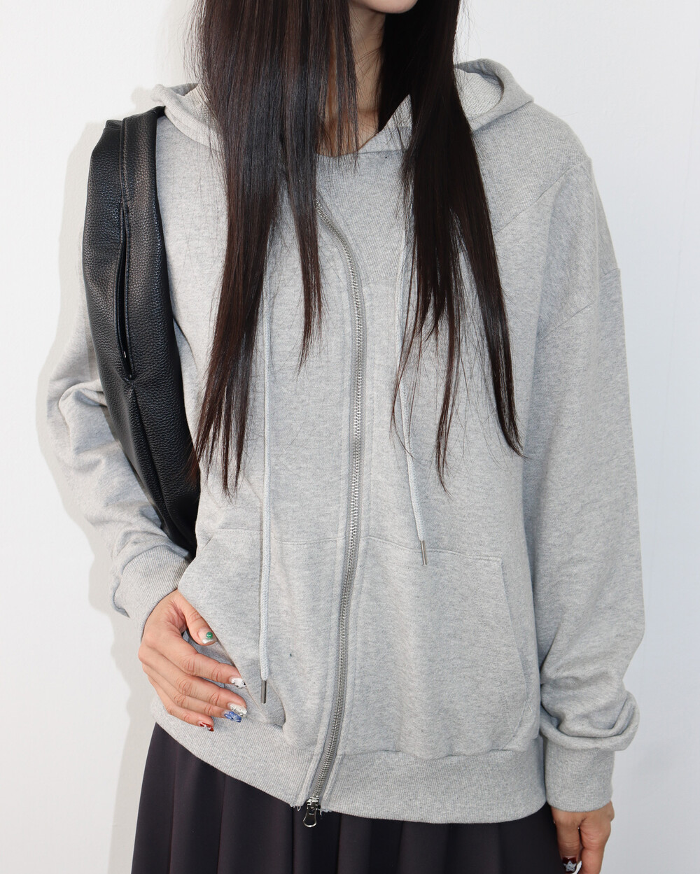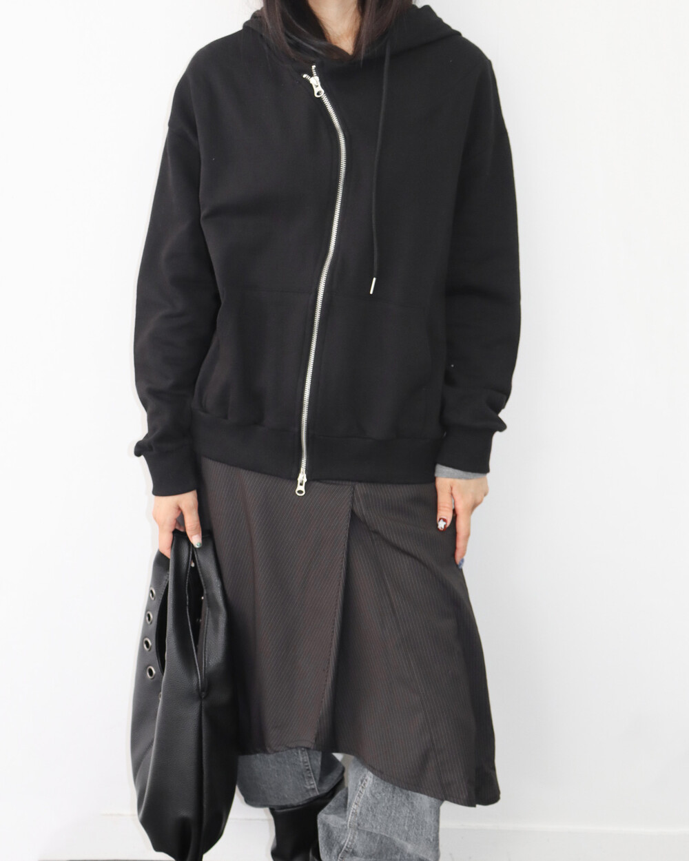 이 후디는 사선으로 떨어지는 지퍼가 포인트 !
