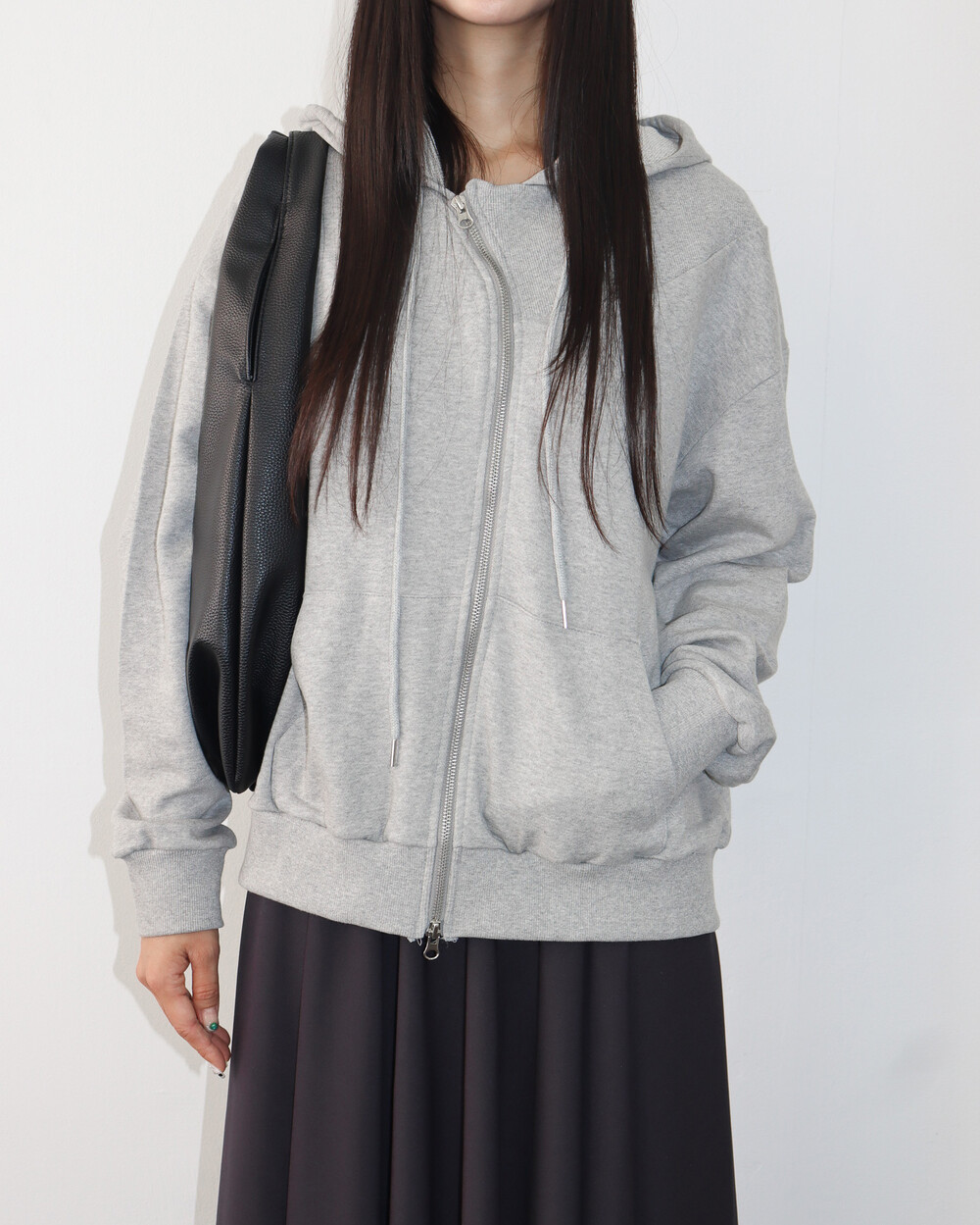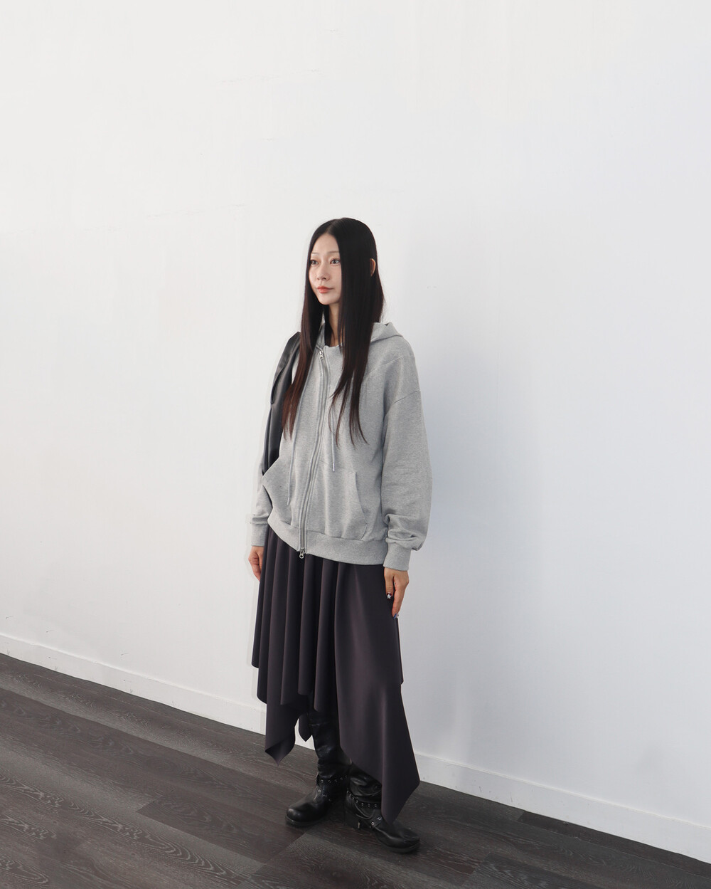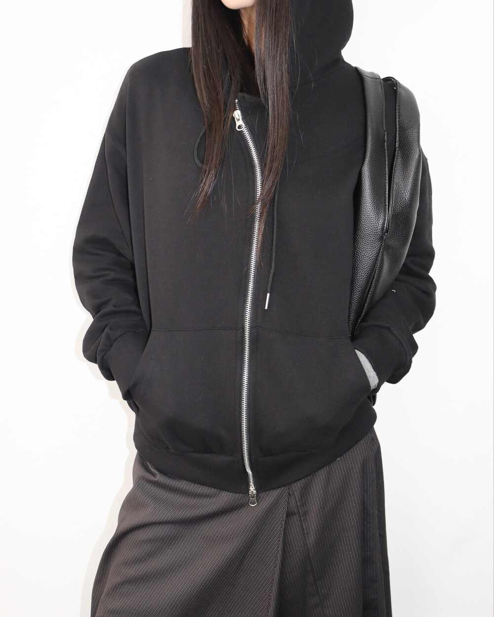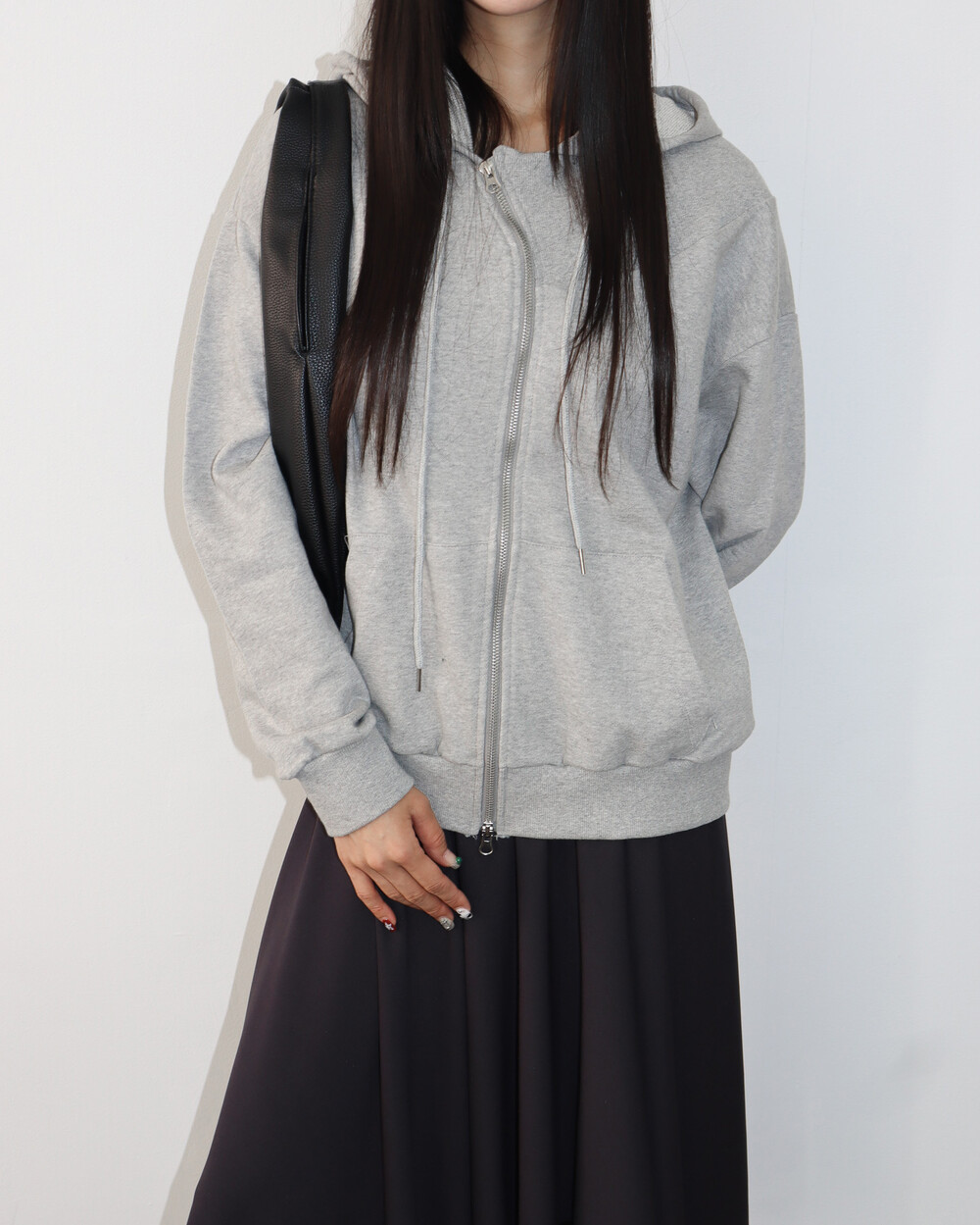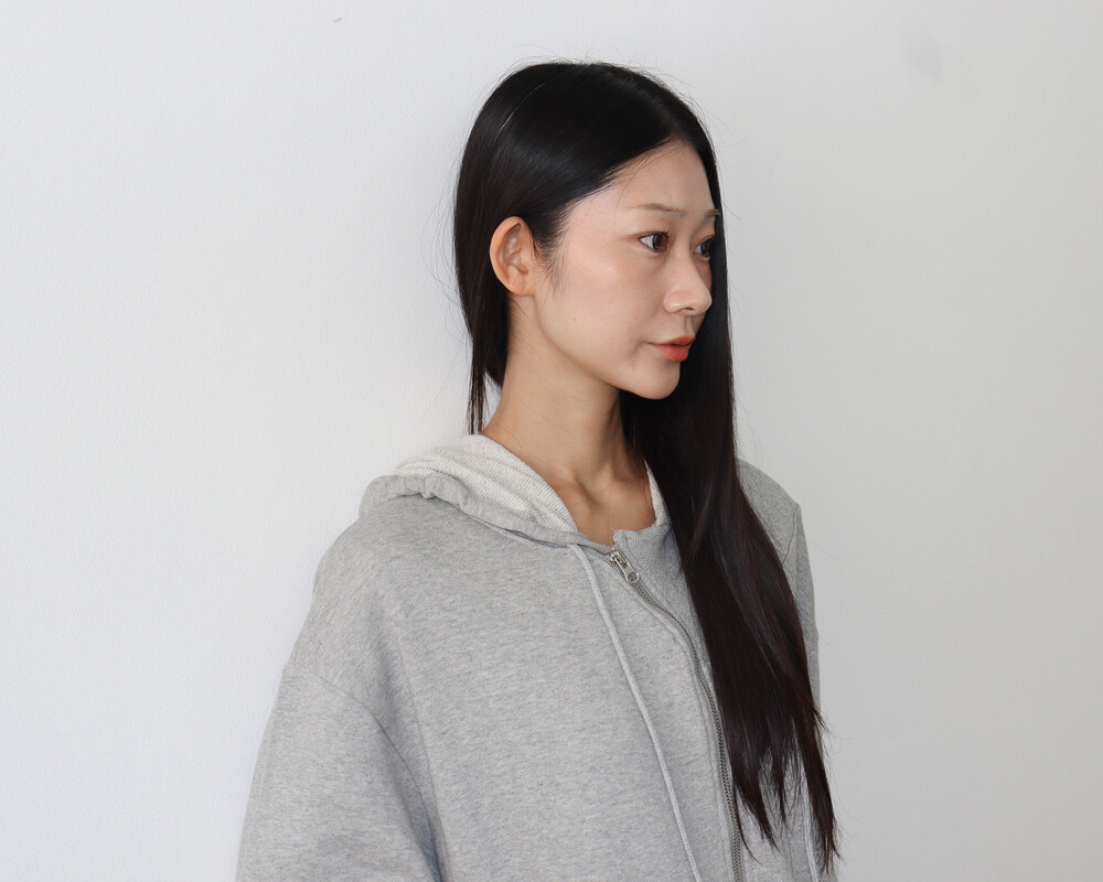 이 후디는 사선으로 떨어지는 지퍼가 포인트 !