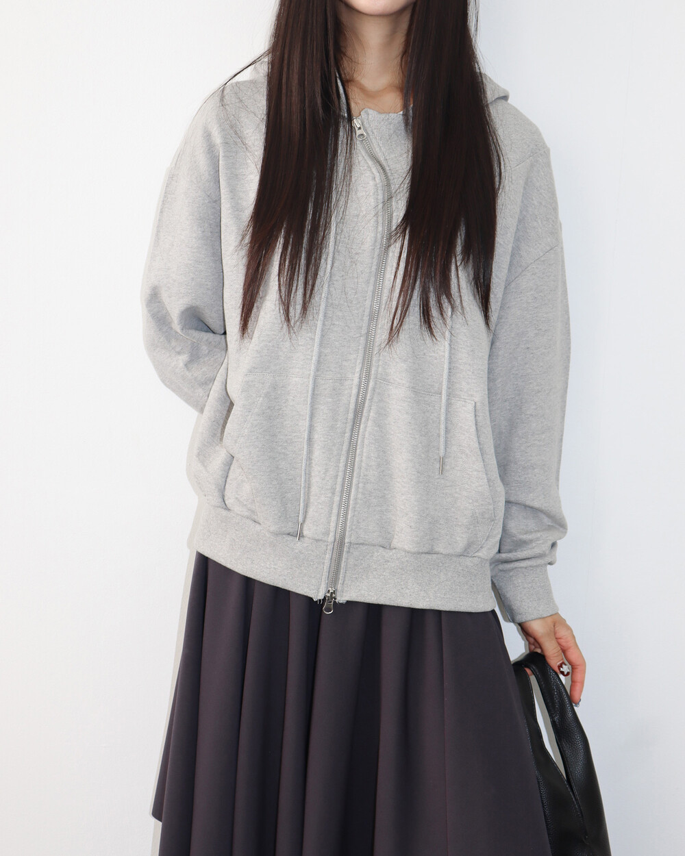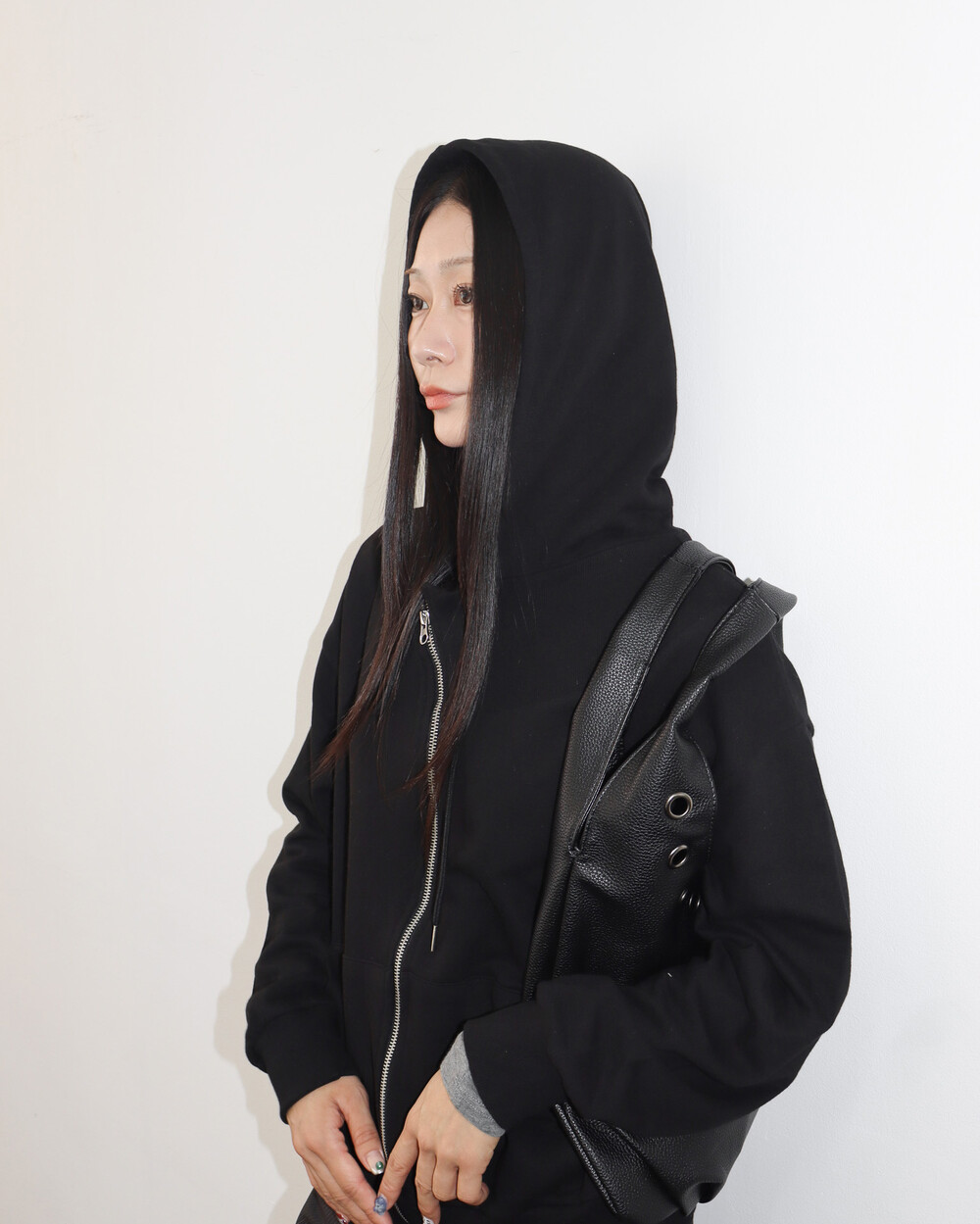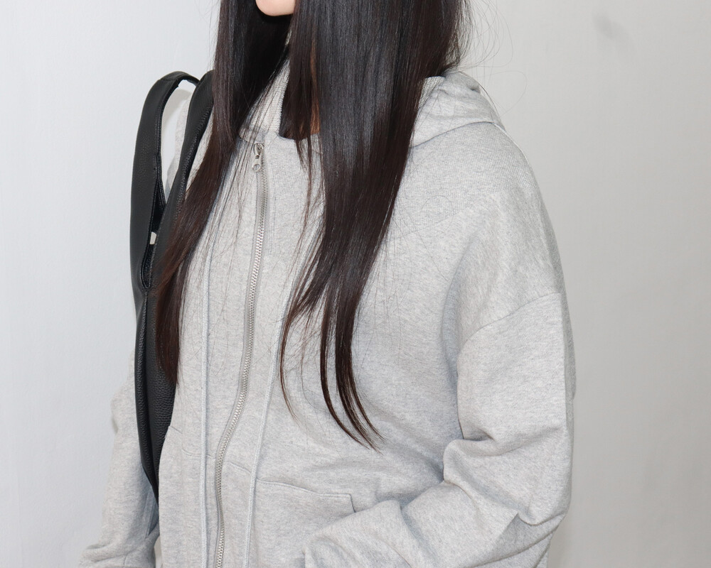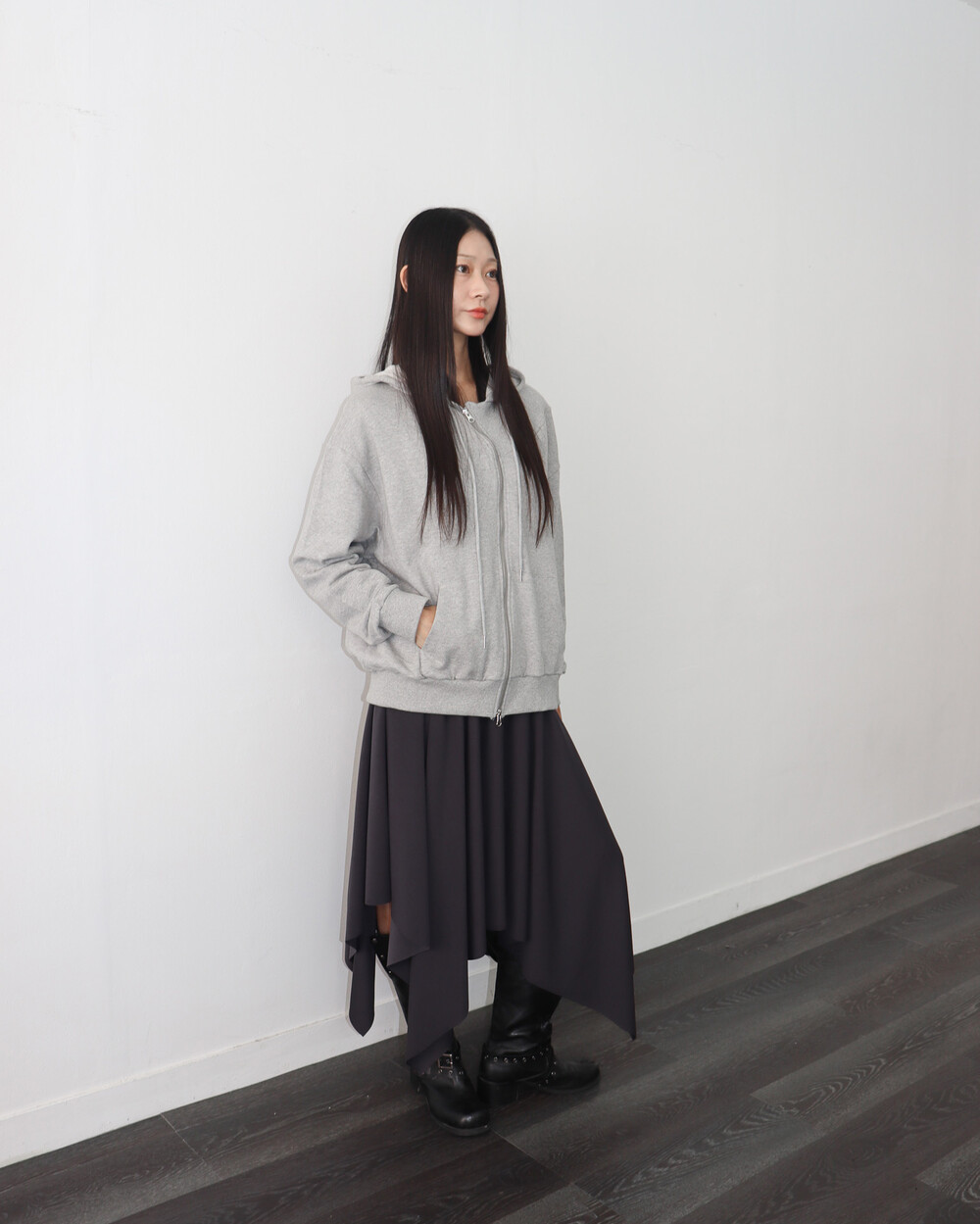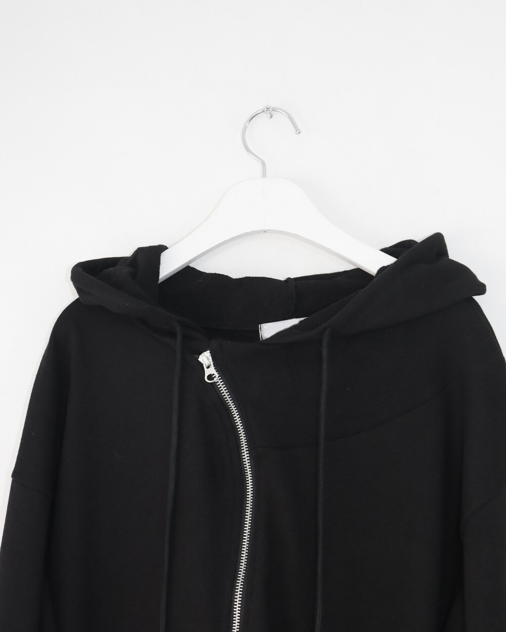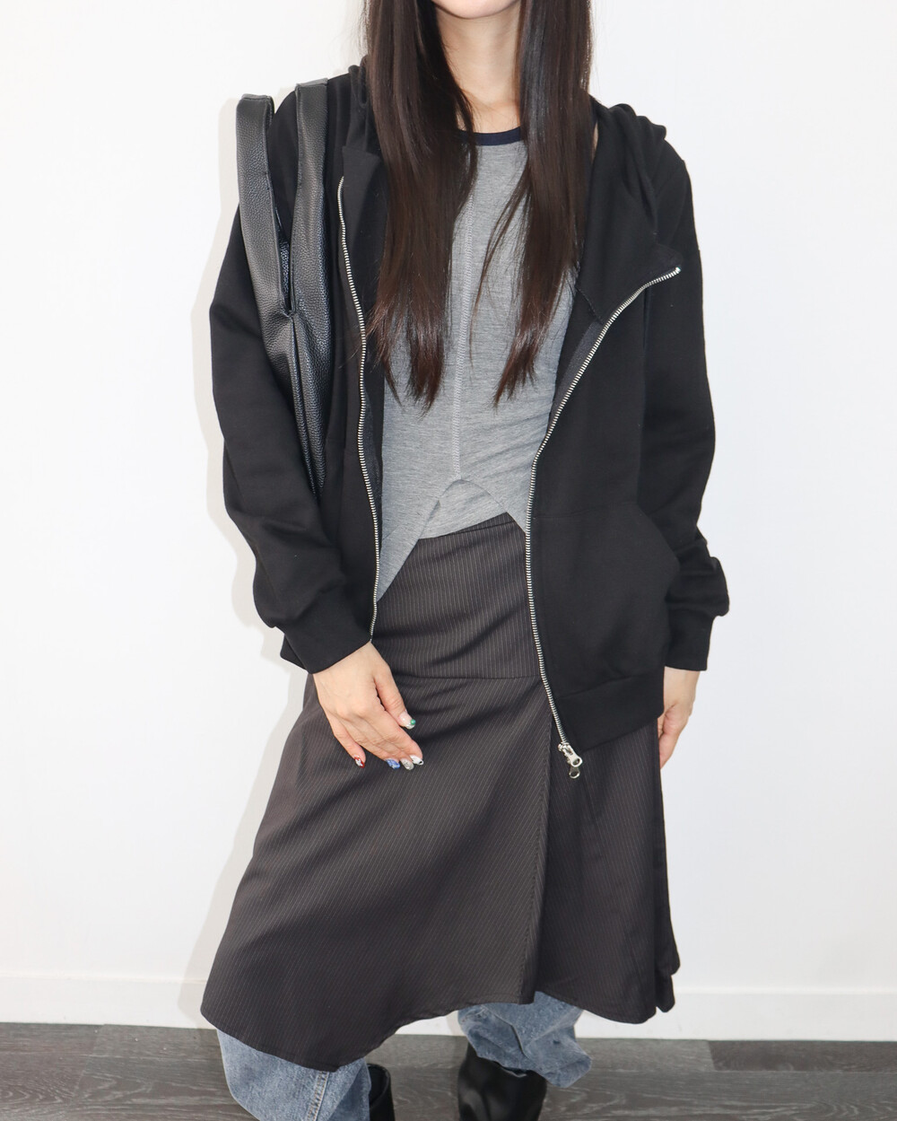 이 후디는 사선으로 떨어지는 지퍼가 포인트 !
