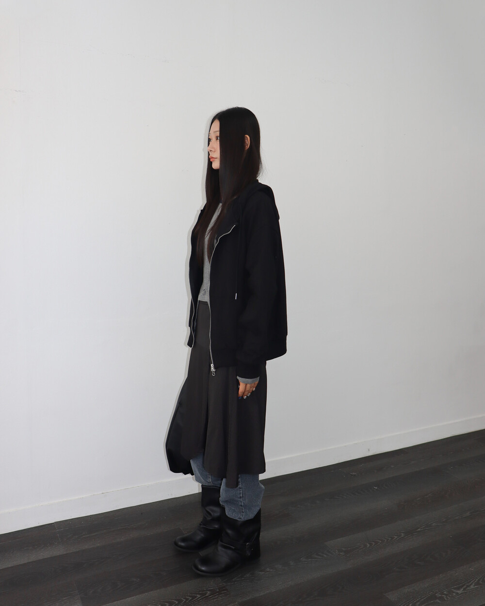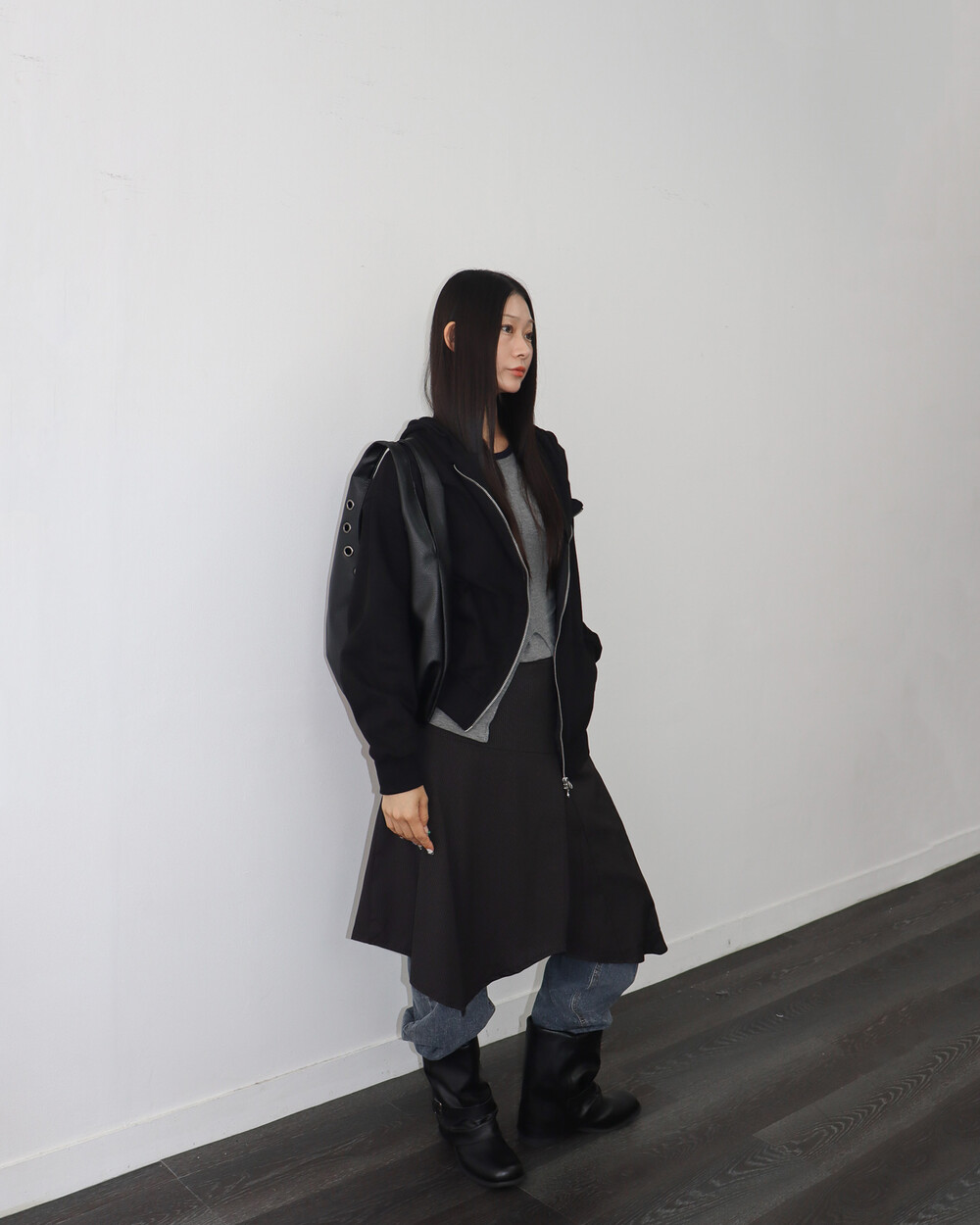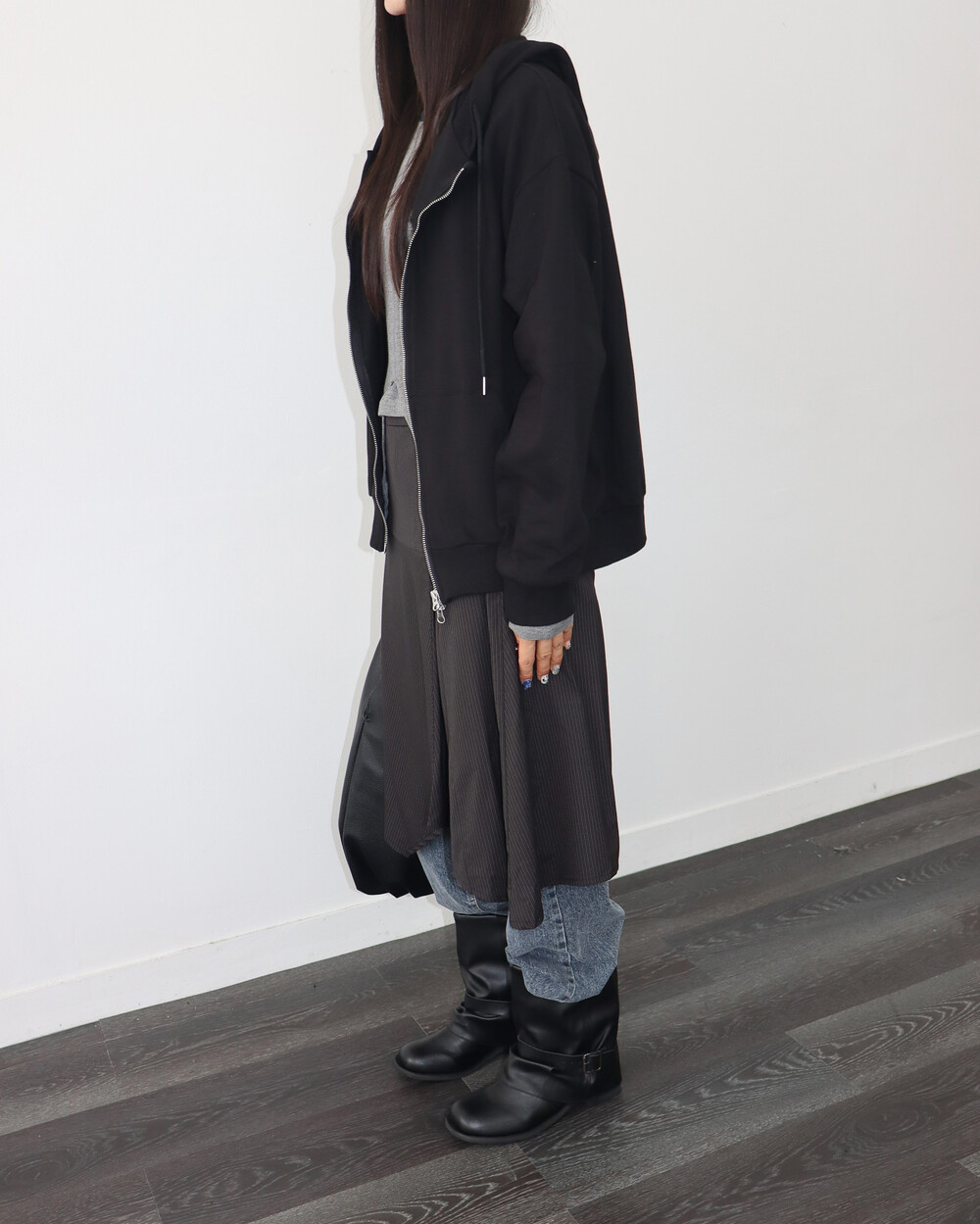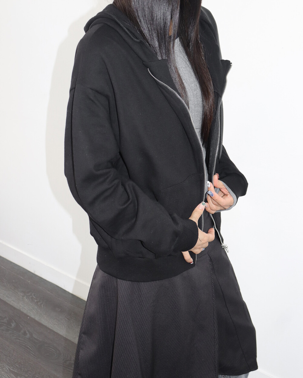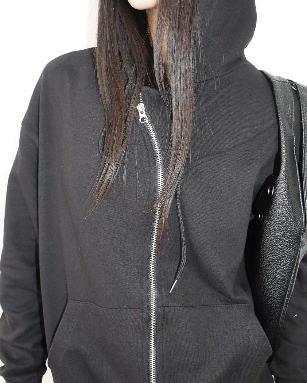 이 후디는 사선으로 떨어지는 지퍼가 포인트 !
