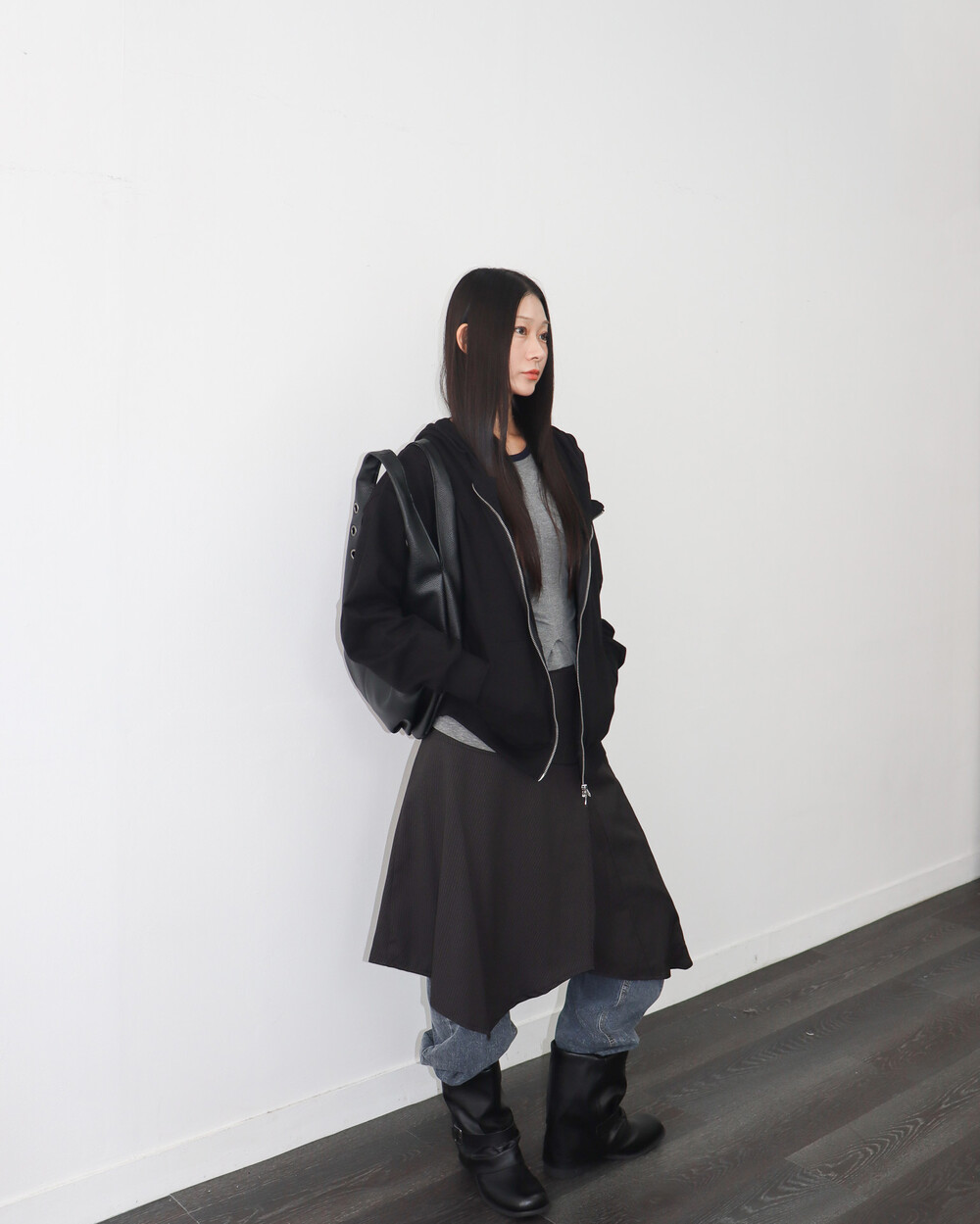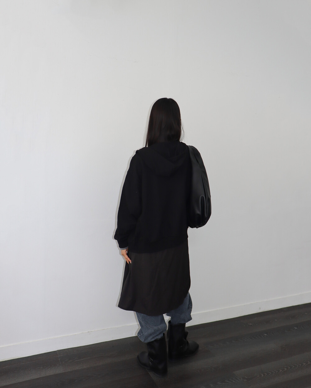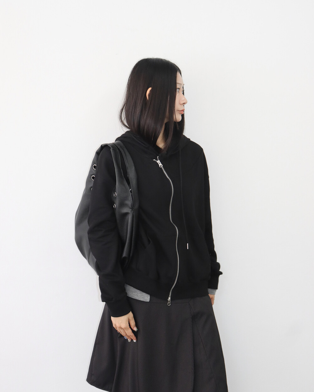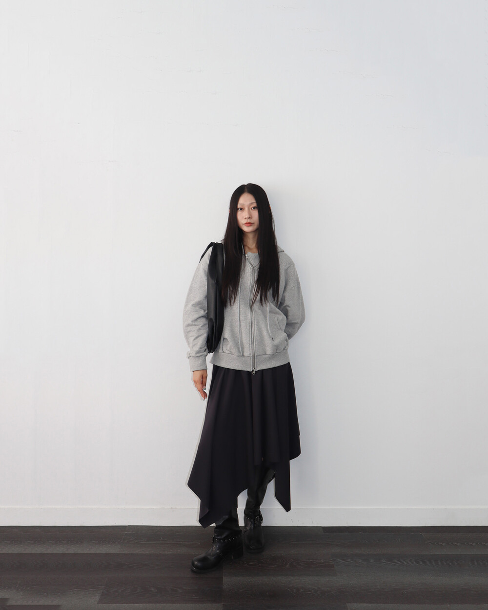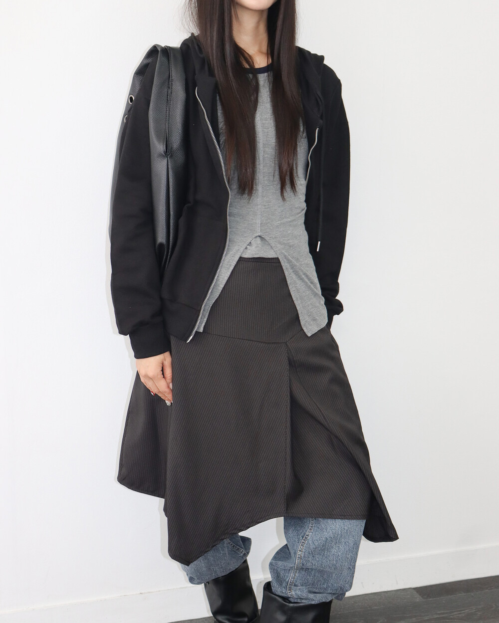 이 후디는 사선으로 떨어지는 지퍼가 포인트 !