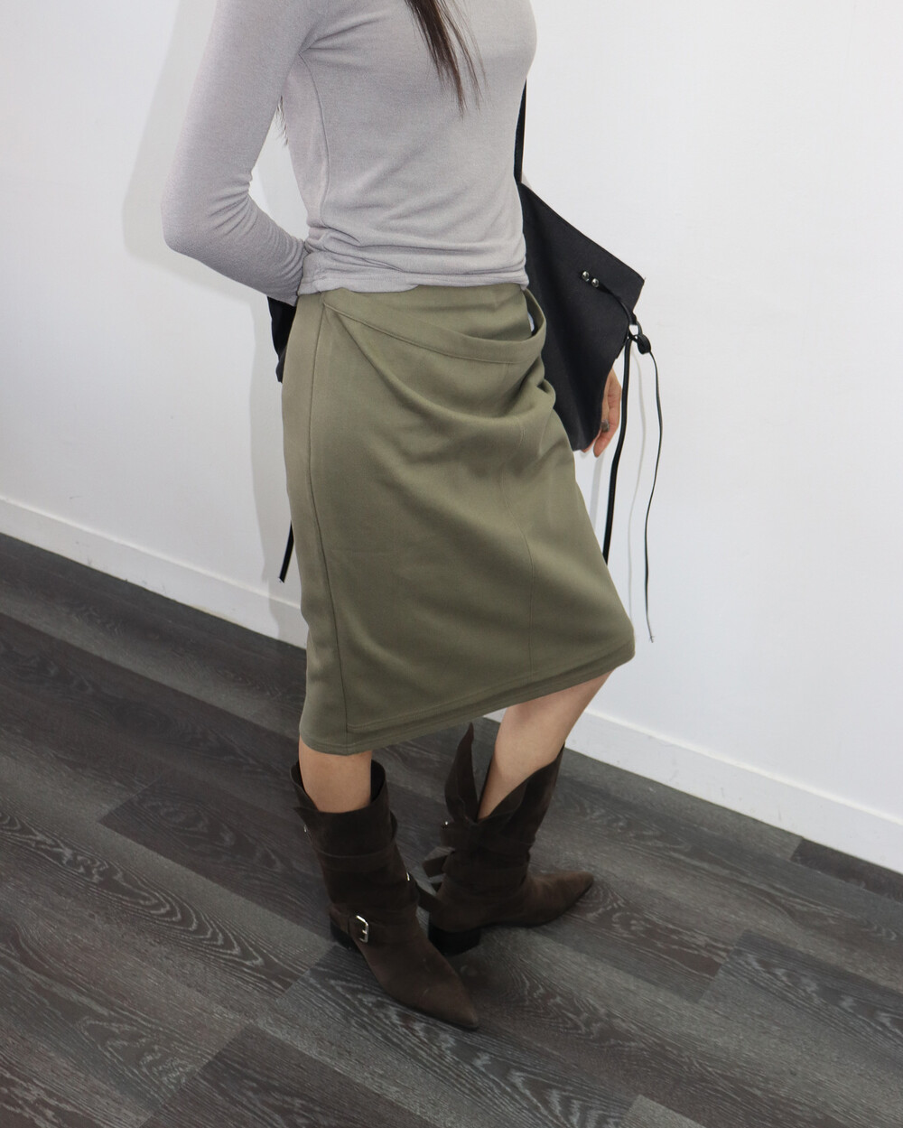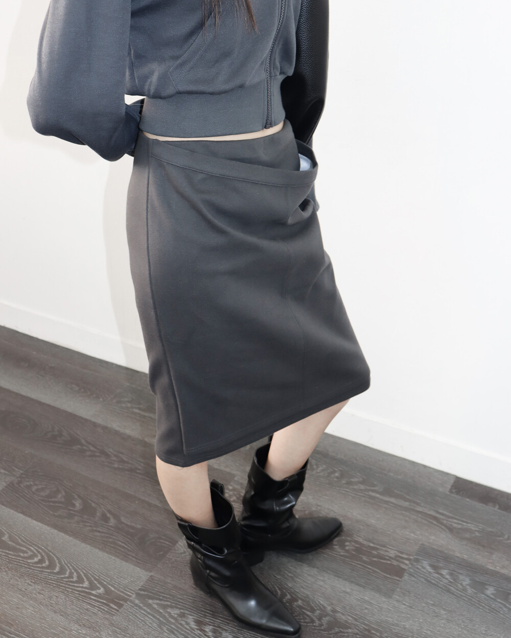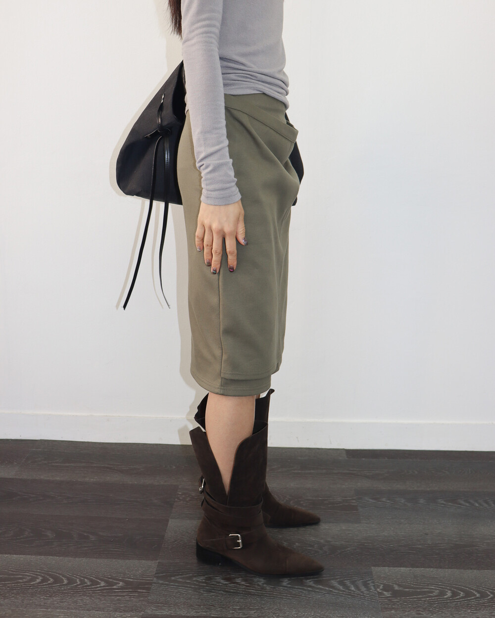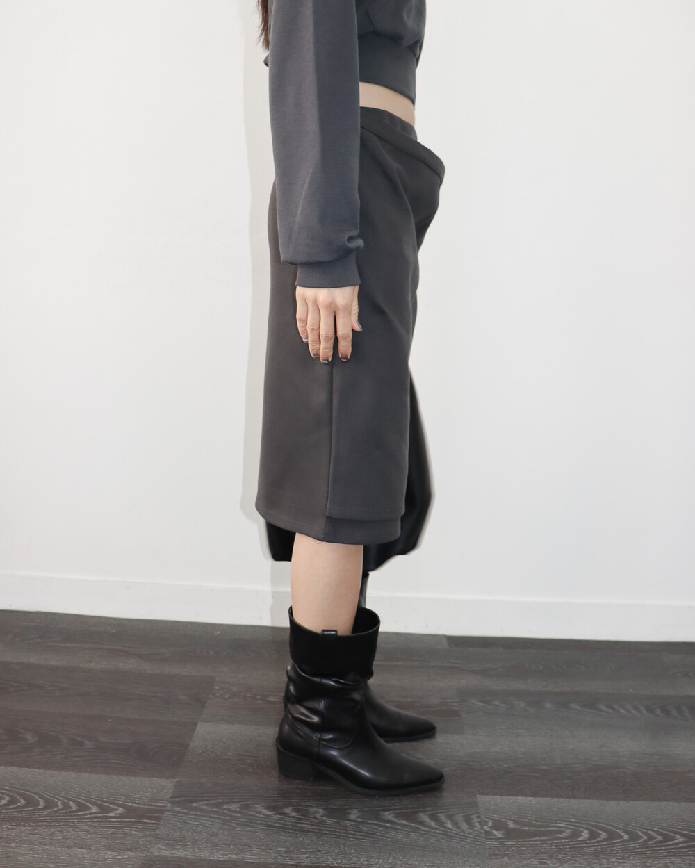 원단을 하나 더 덧대어 더블 레이어드된 디자인으로