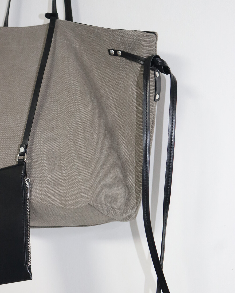 특히 스트랩은 가죽이고, 본판은 코튼의 텍스처가 대비되어