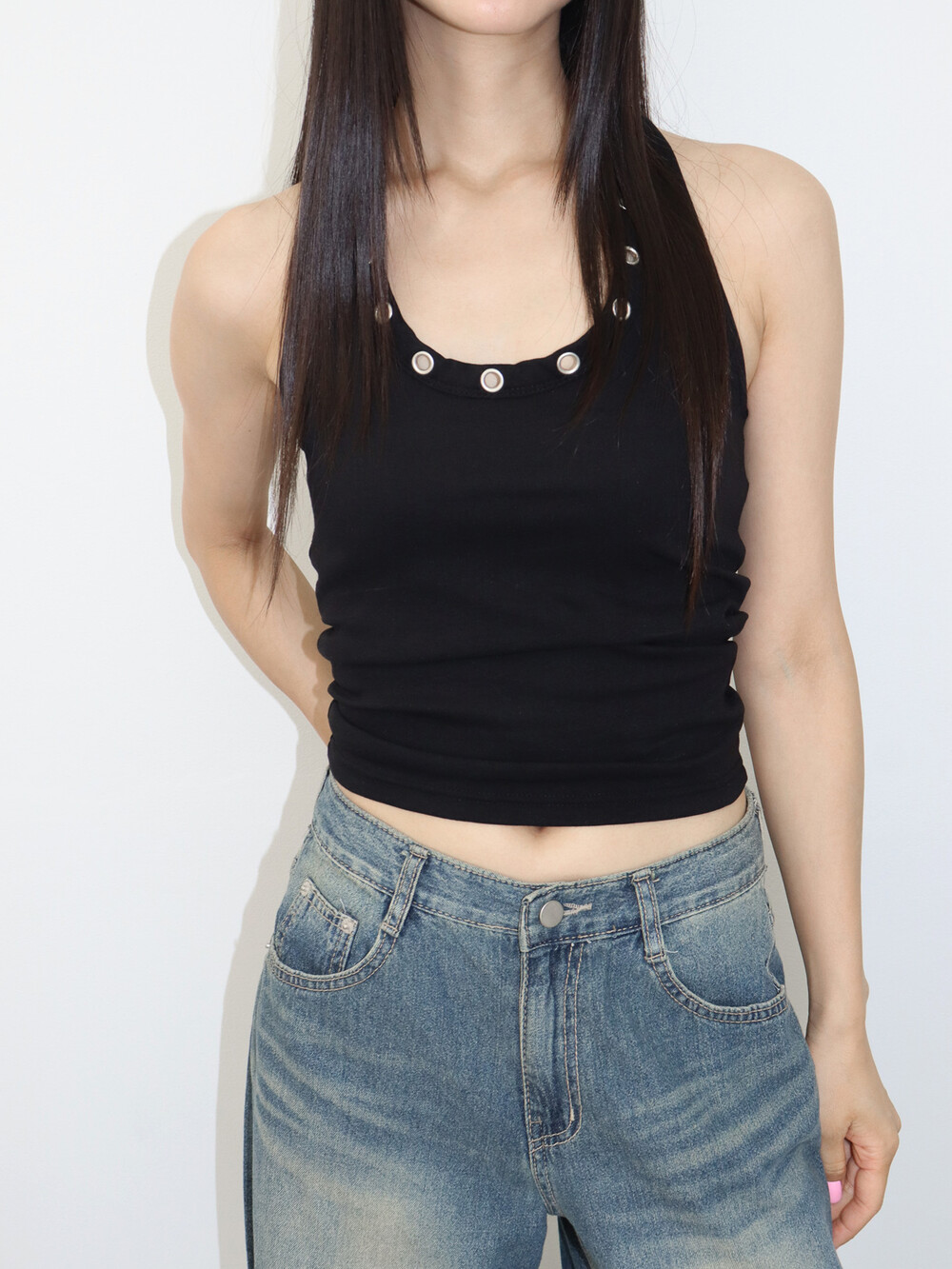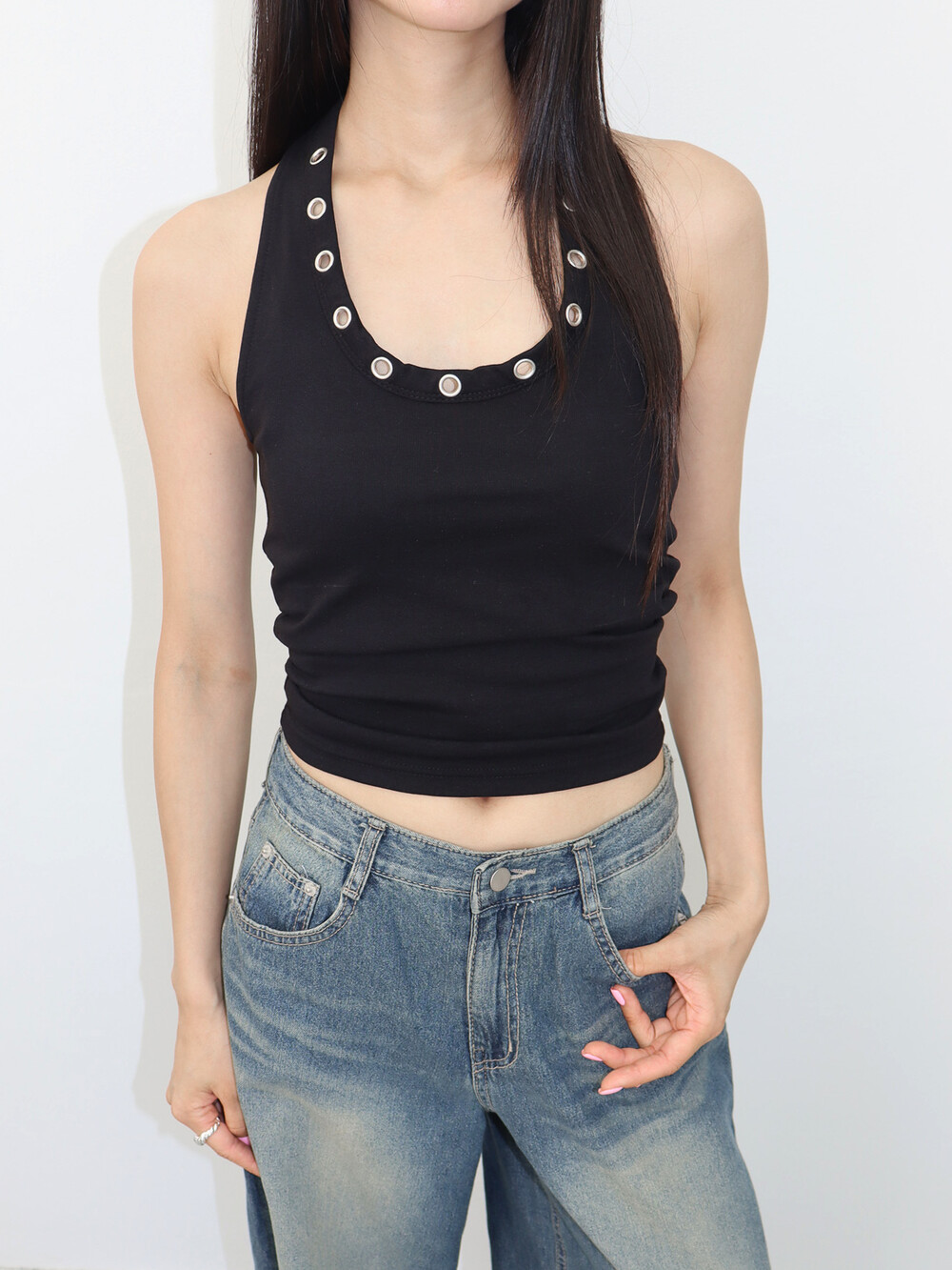 OO EYELET HALTER SLEEVELESS (2COLOR)