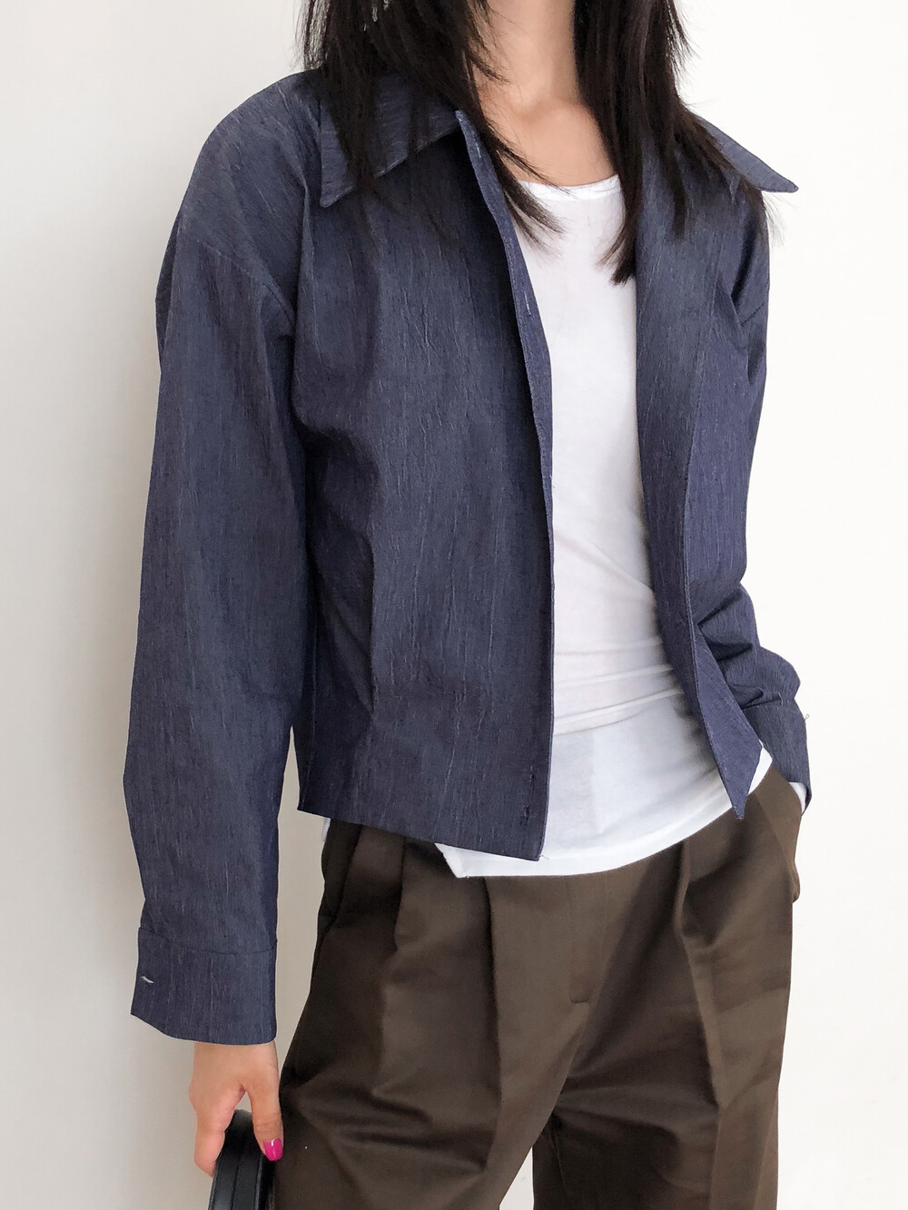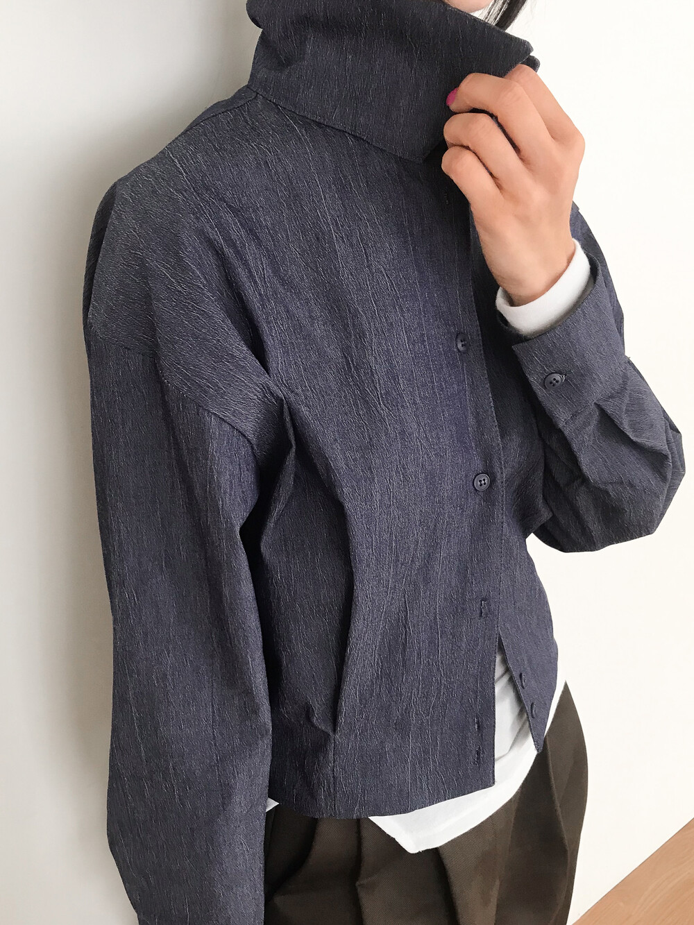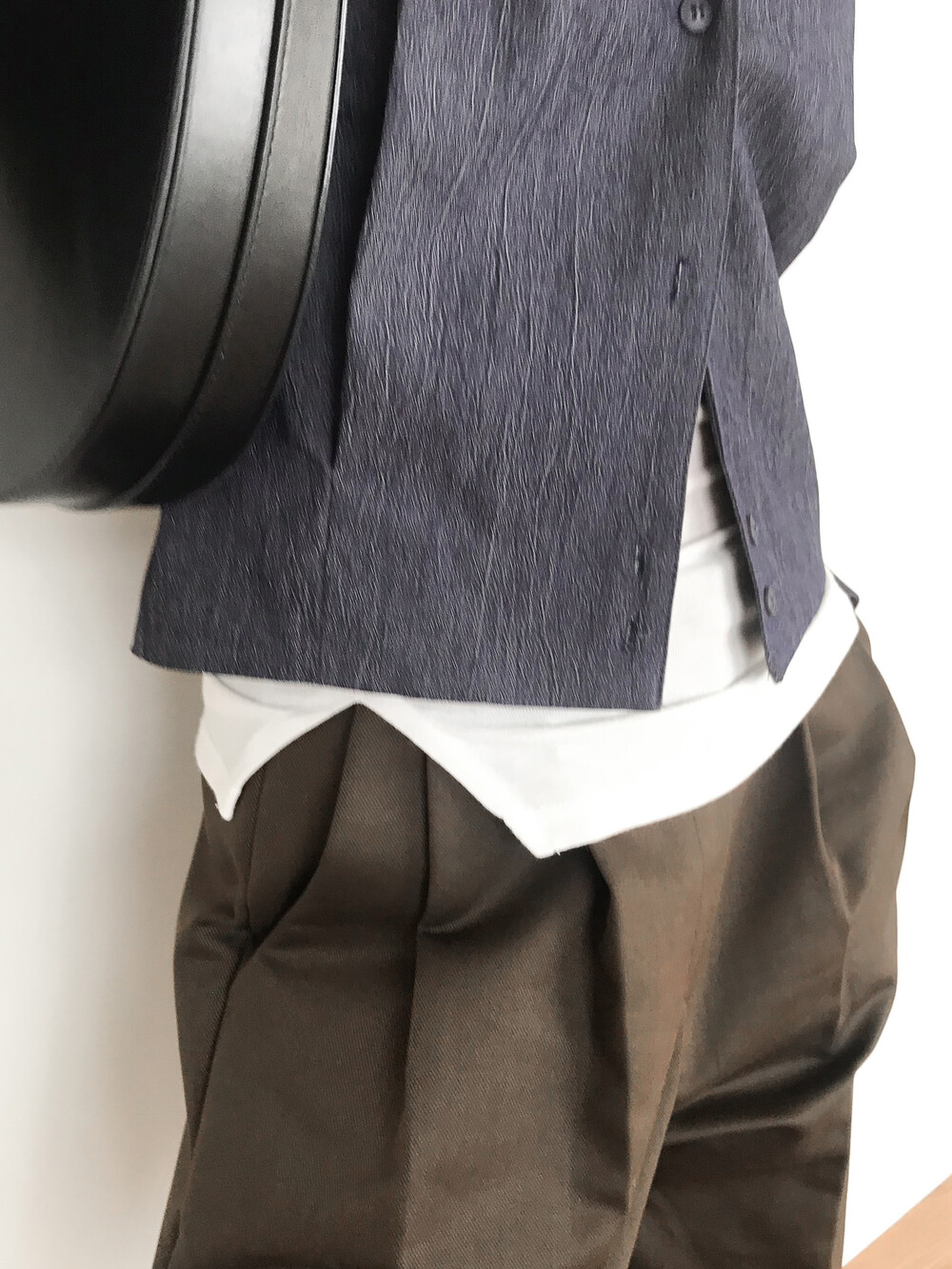 탄탄하고 고시감 있는 원단감으로 실루엣이 흐트러지지 않아요