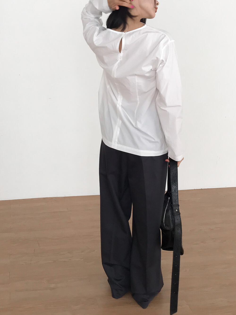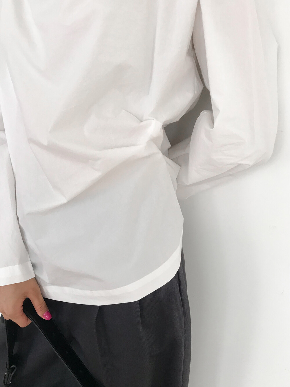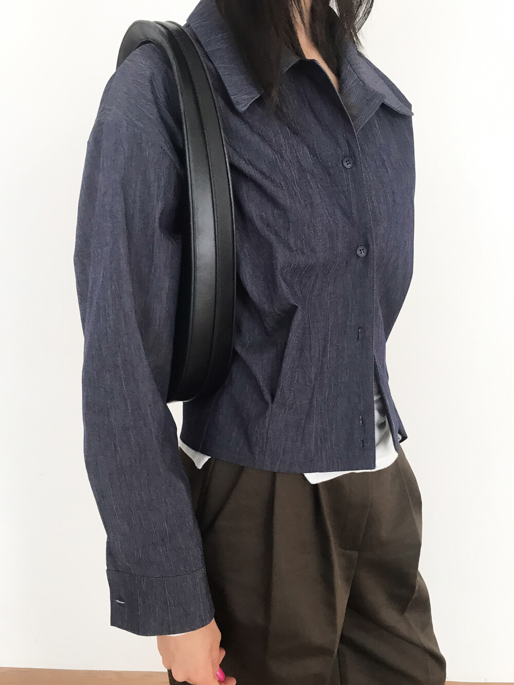 탄탄하고 고시감 있는 원단감으로 실루엣이 흐트러지지 않아요
