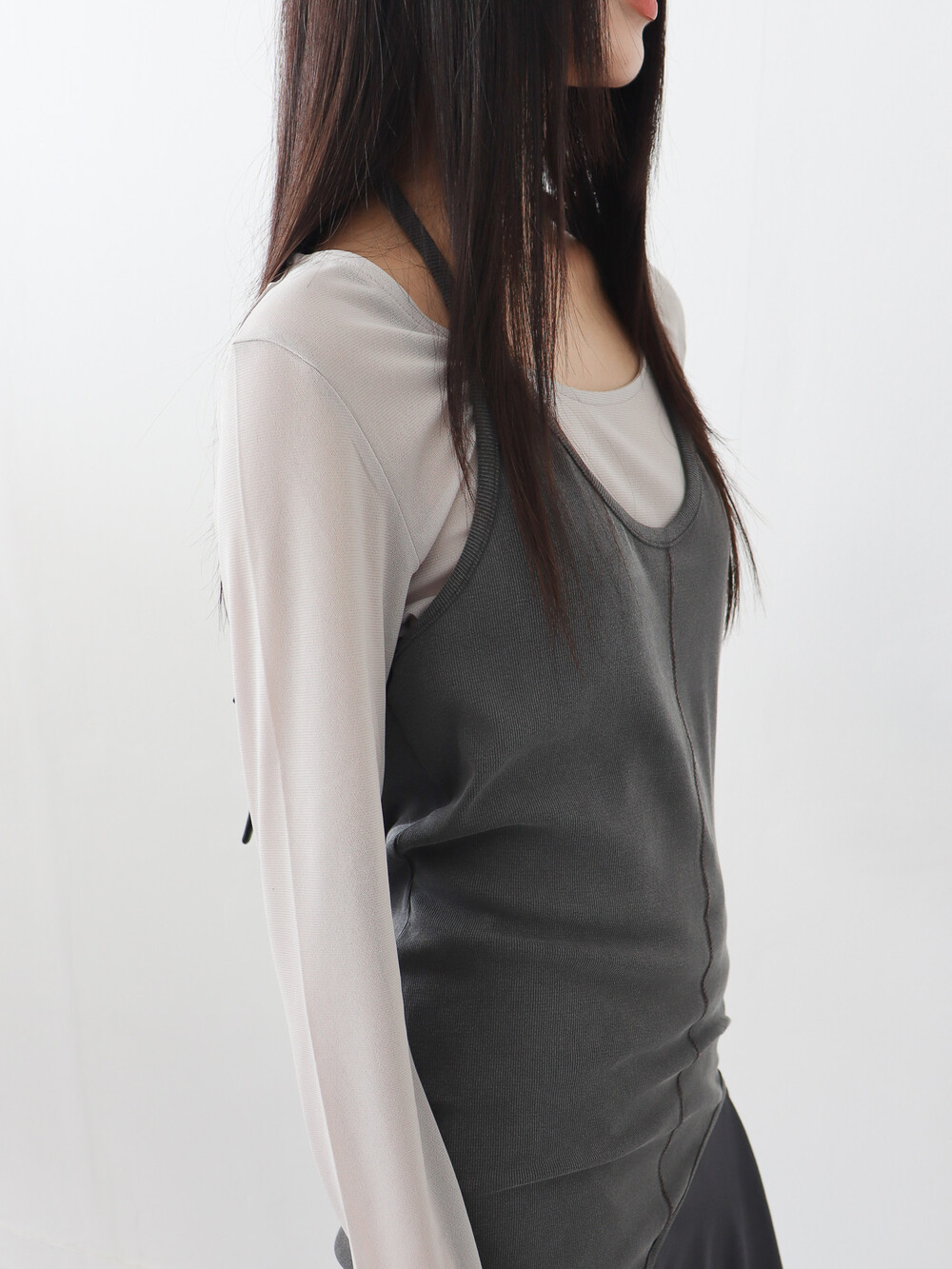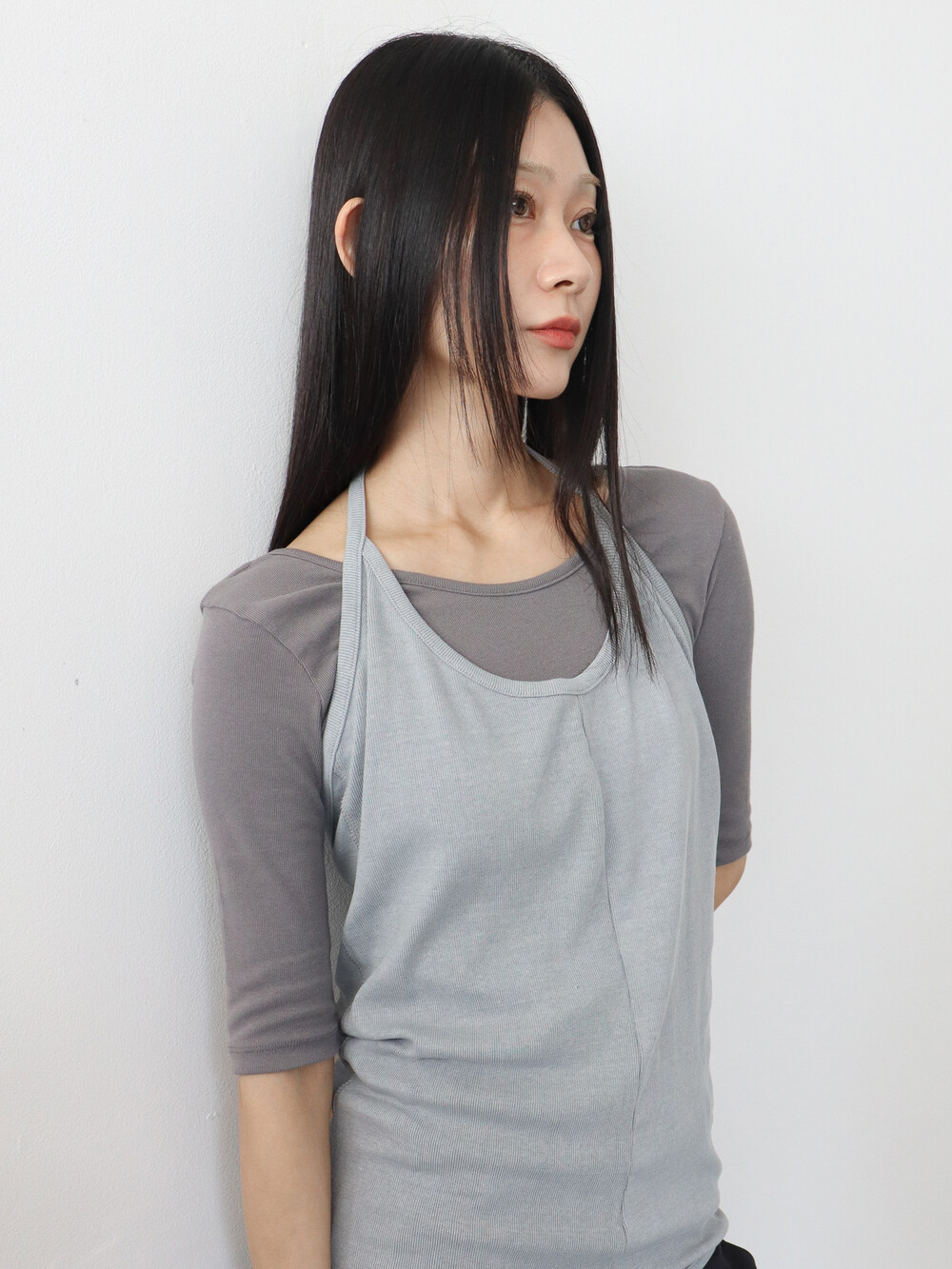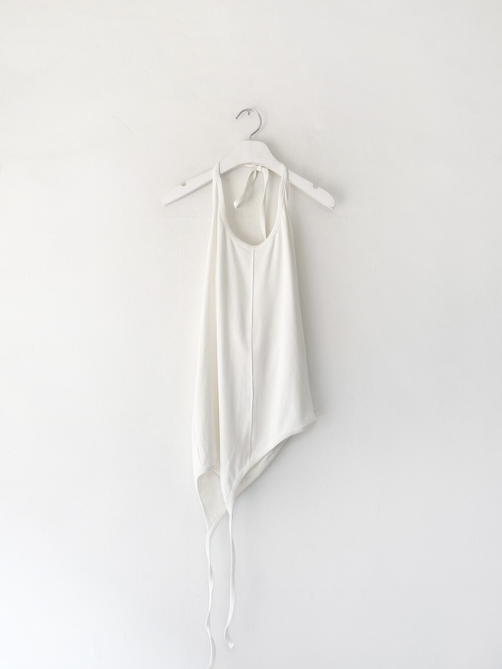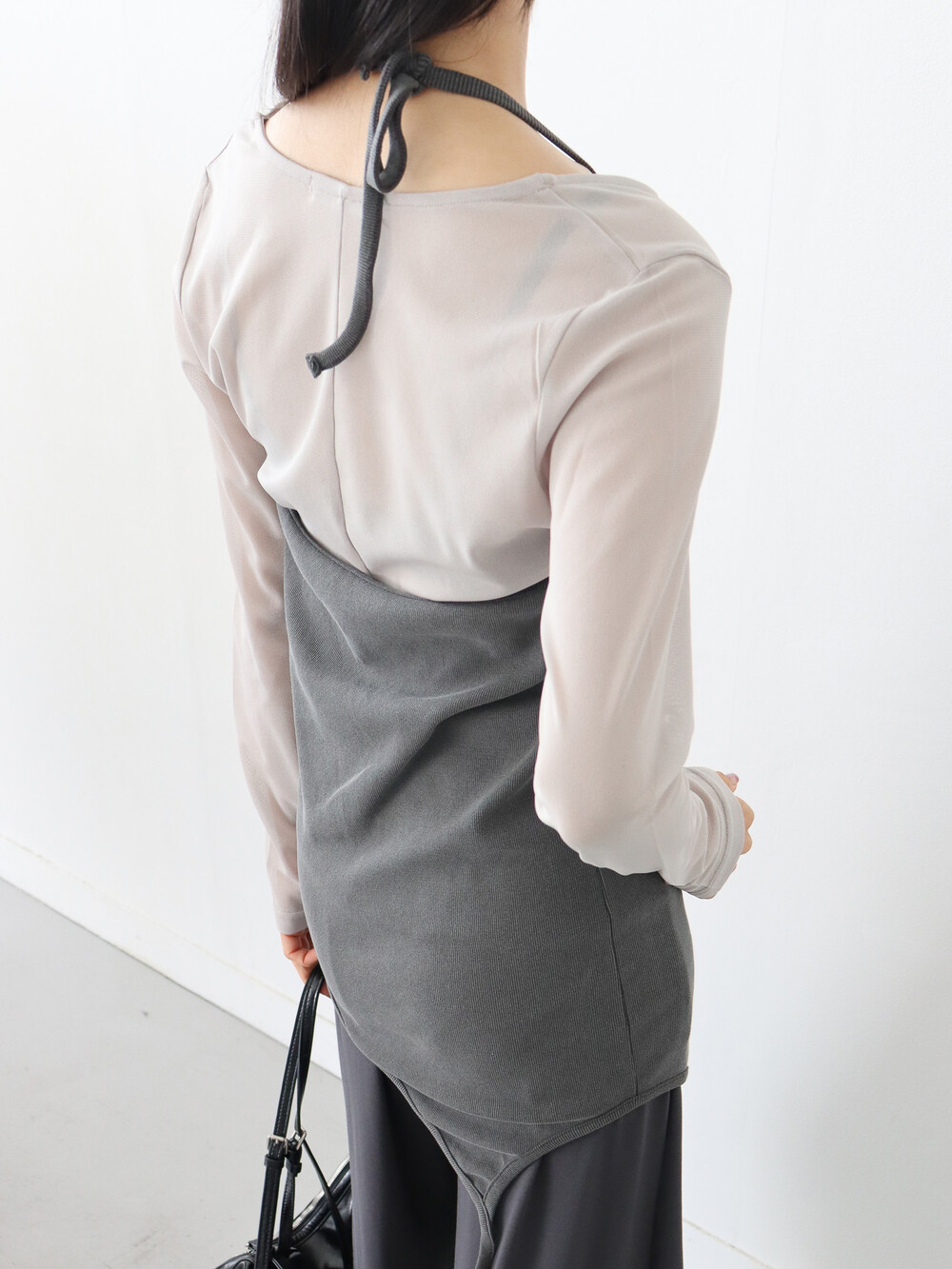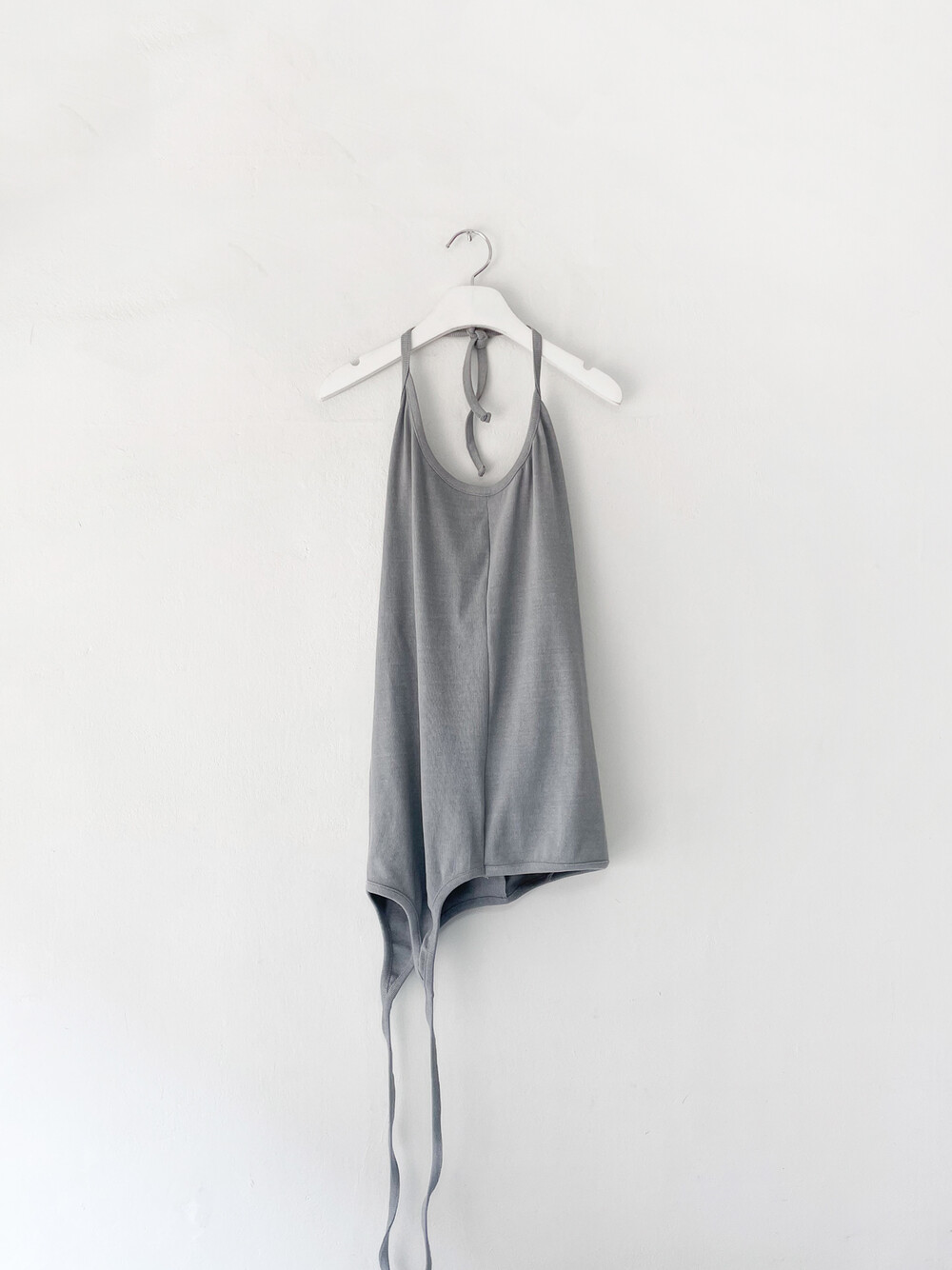끈을 홀터로 묶어 착용하는 방식의 내추럴한 분위기의 탑