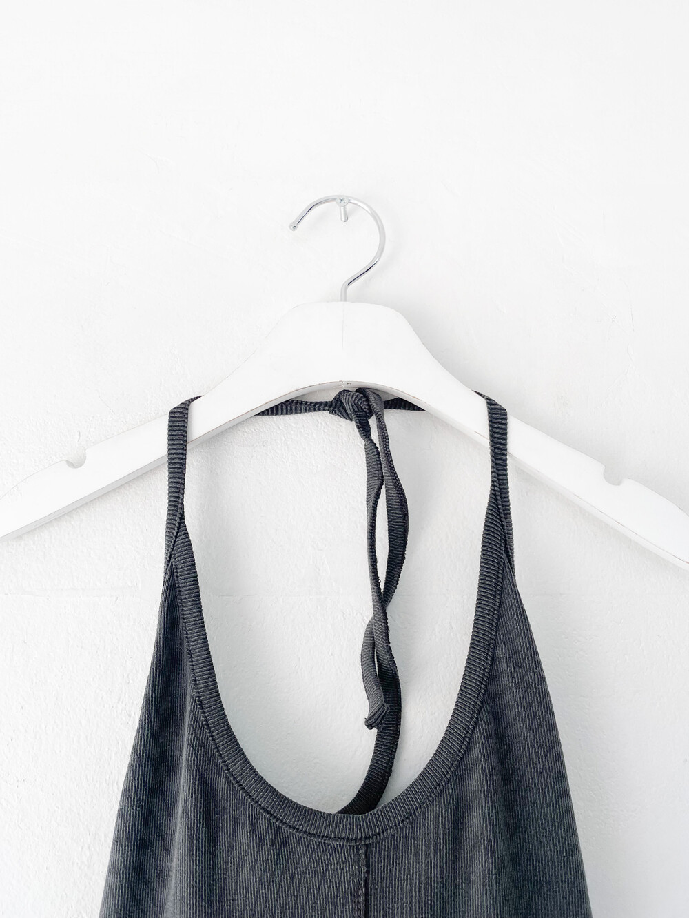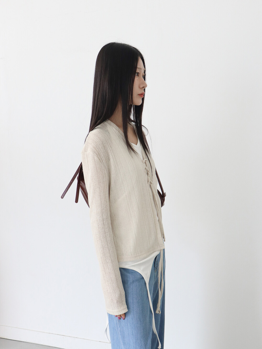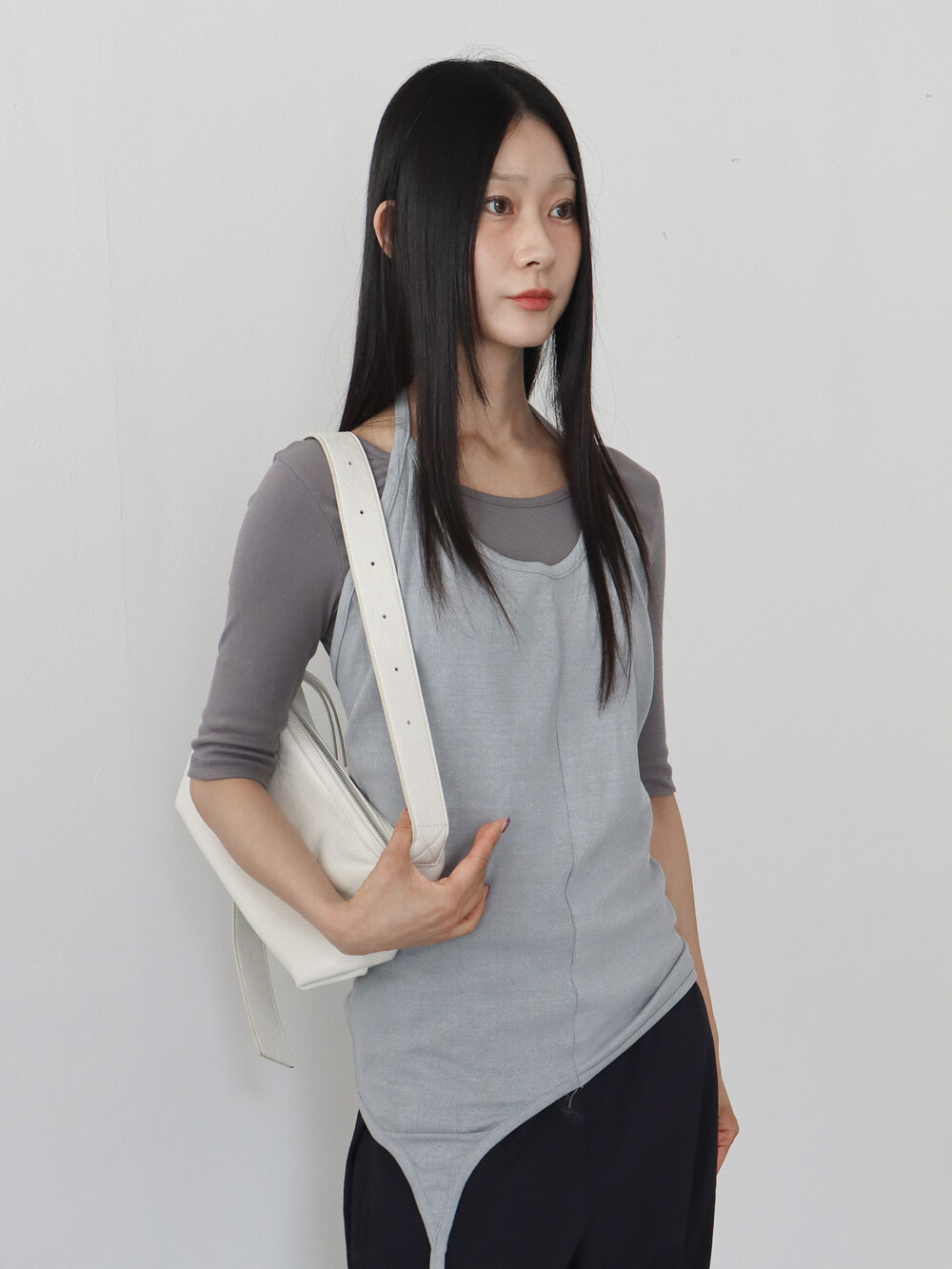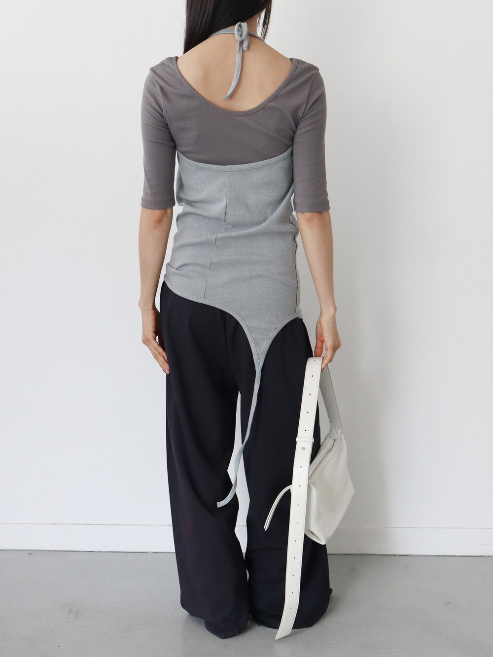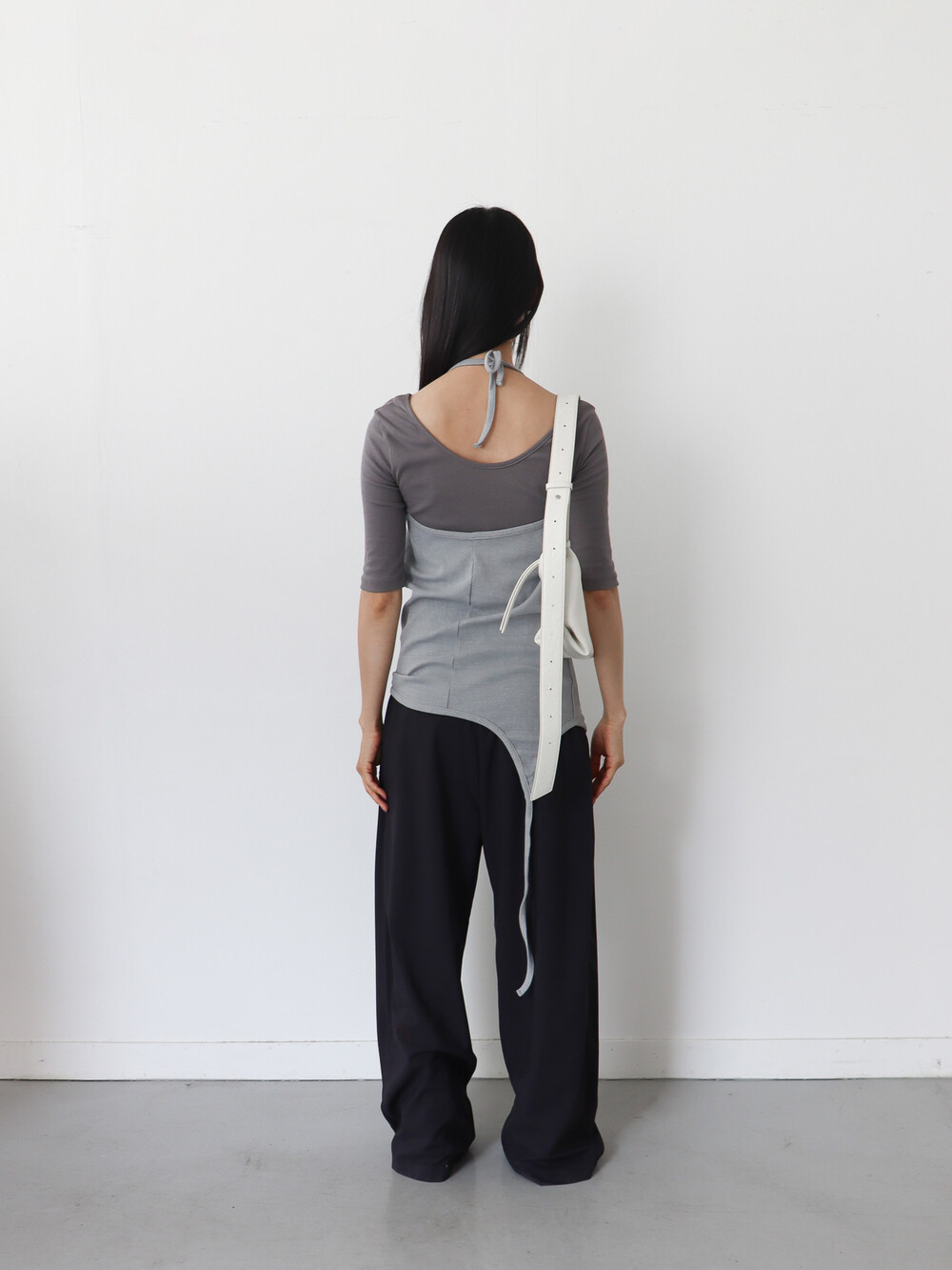 끈을 홀터로 묶어 착용하는 방식의 내추럴한 분위기의 탑