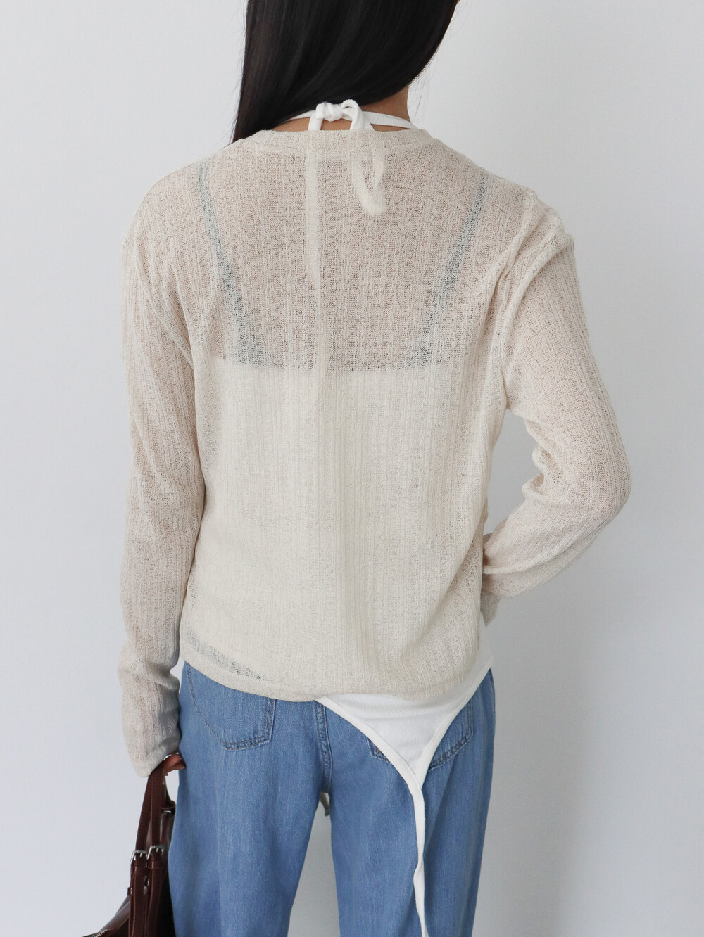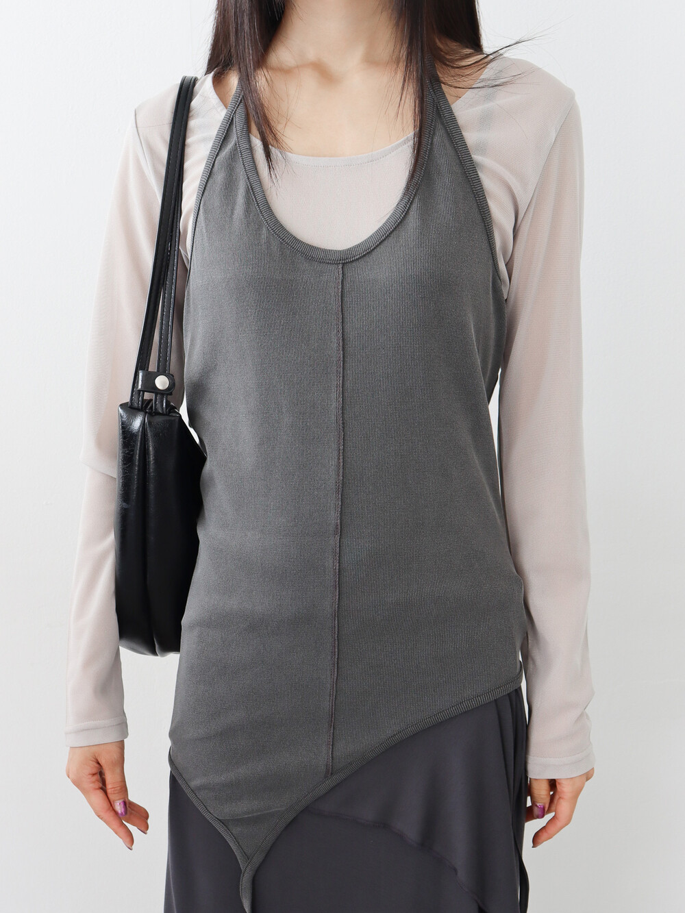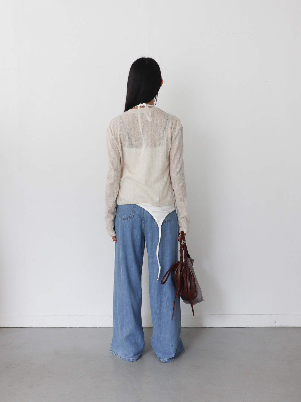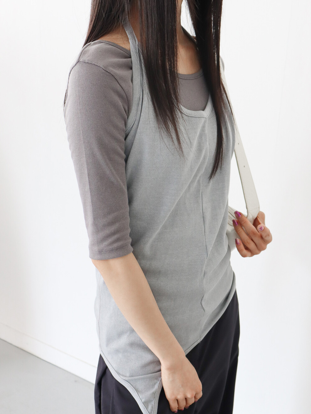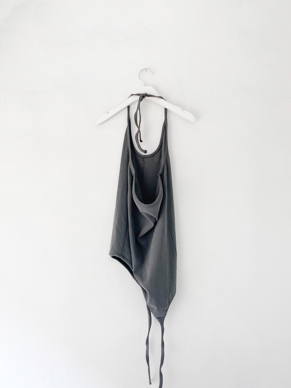 끈을 홀터로 묶어 착용하는 방식의 내추럴한 분위기의 탑