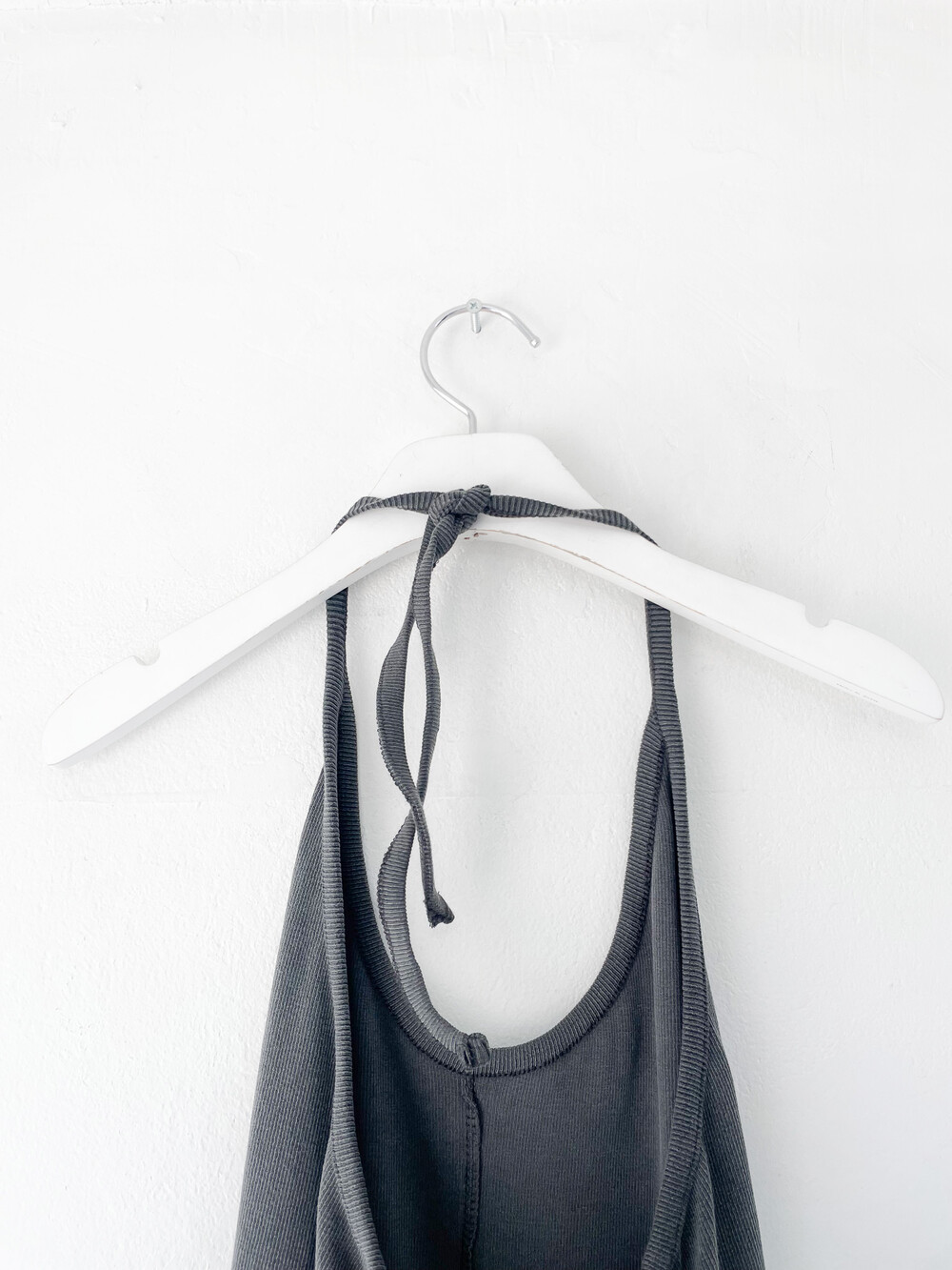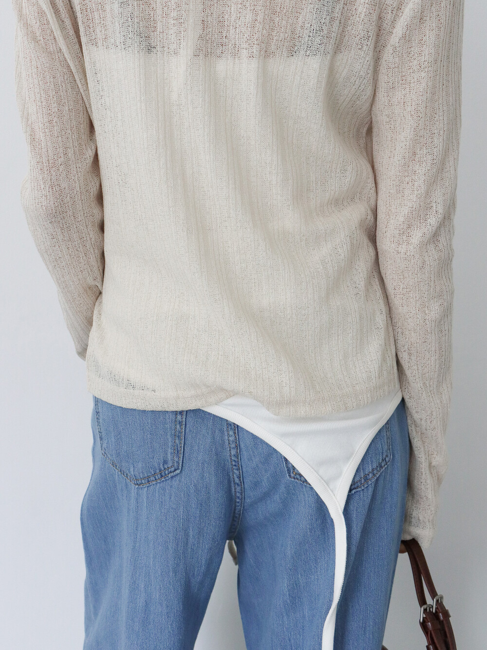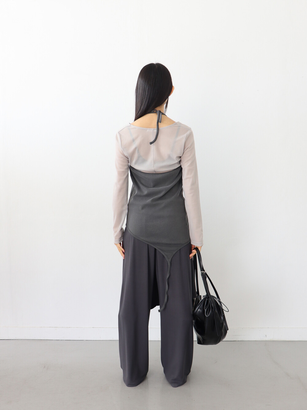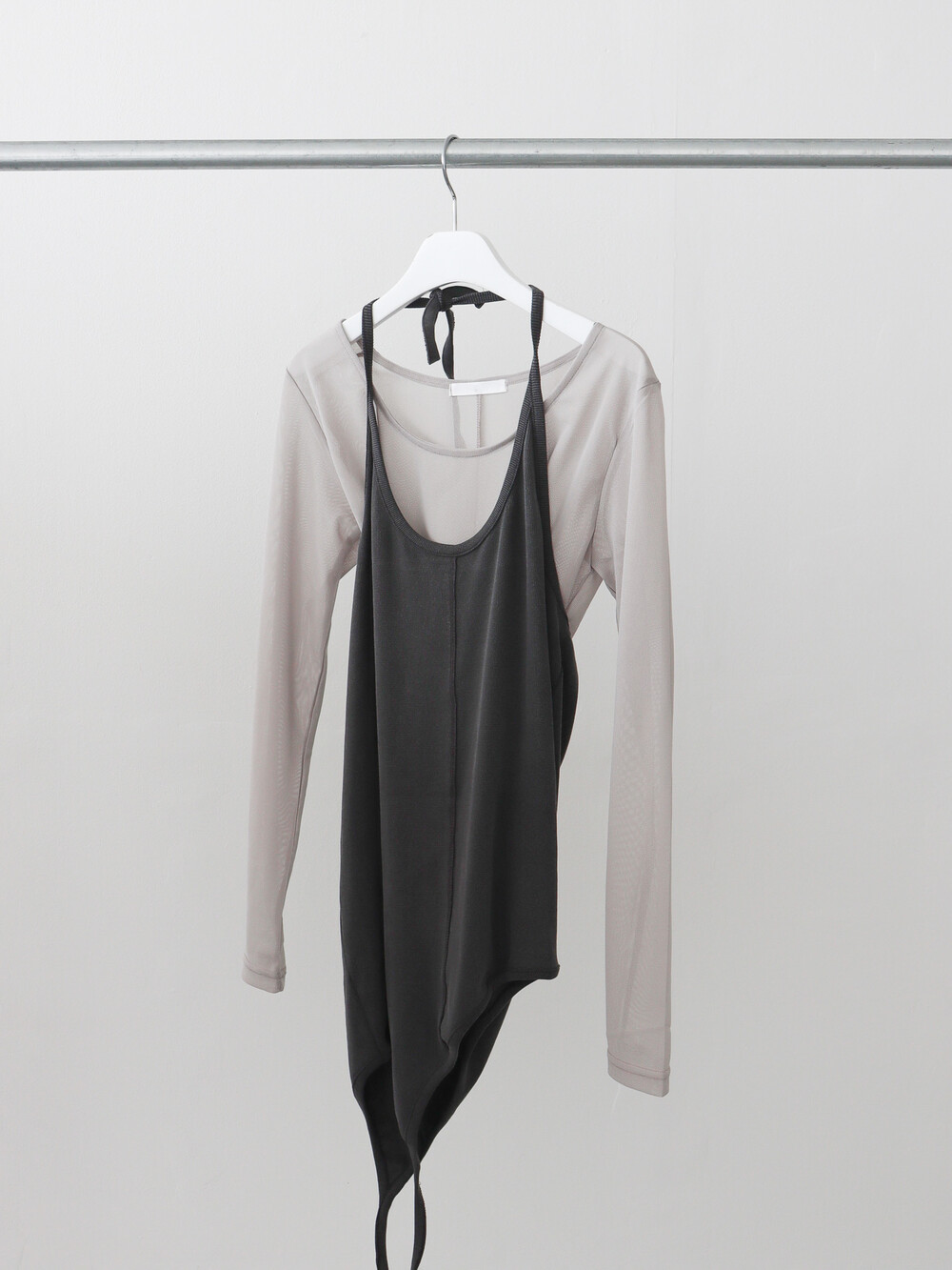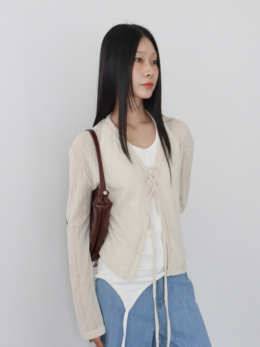 끈을 홀터로 묶어 착용하는 방식의 내추럴한 분위기의 탑