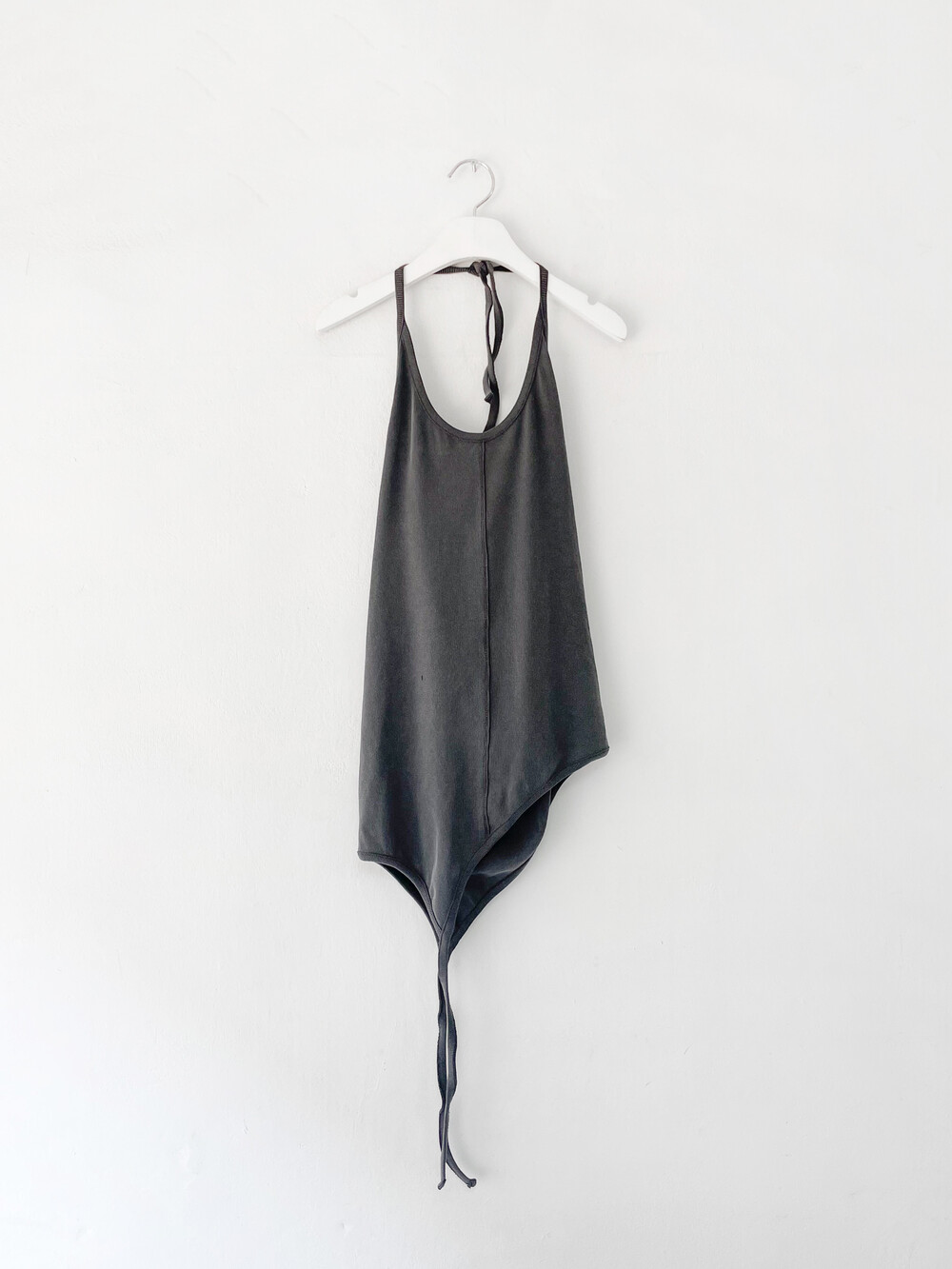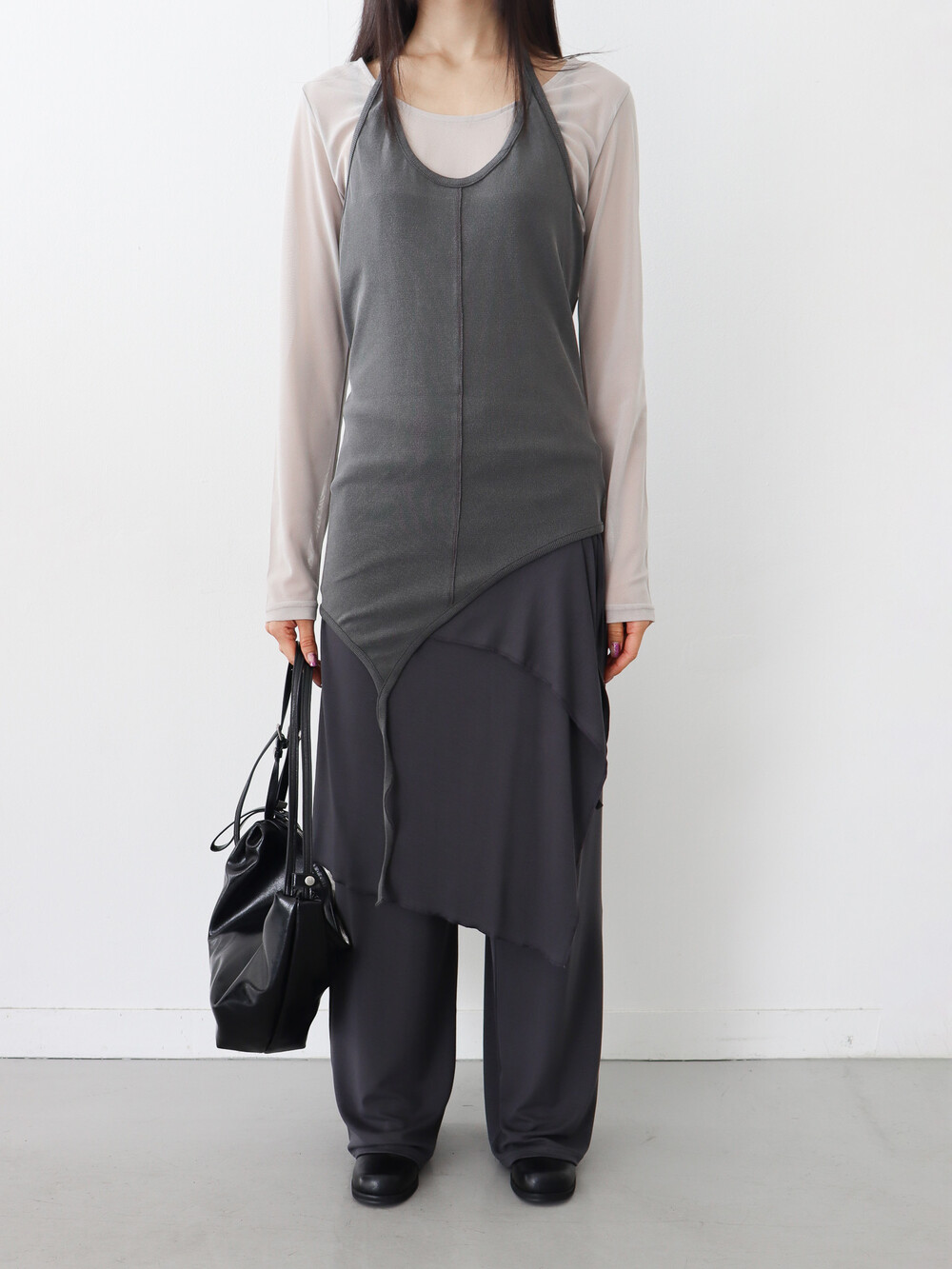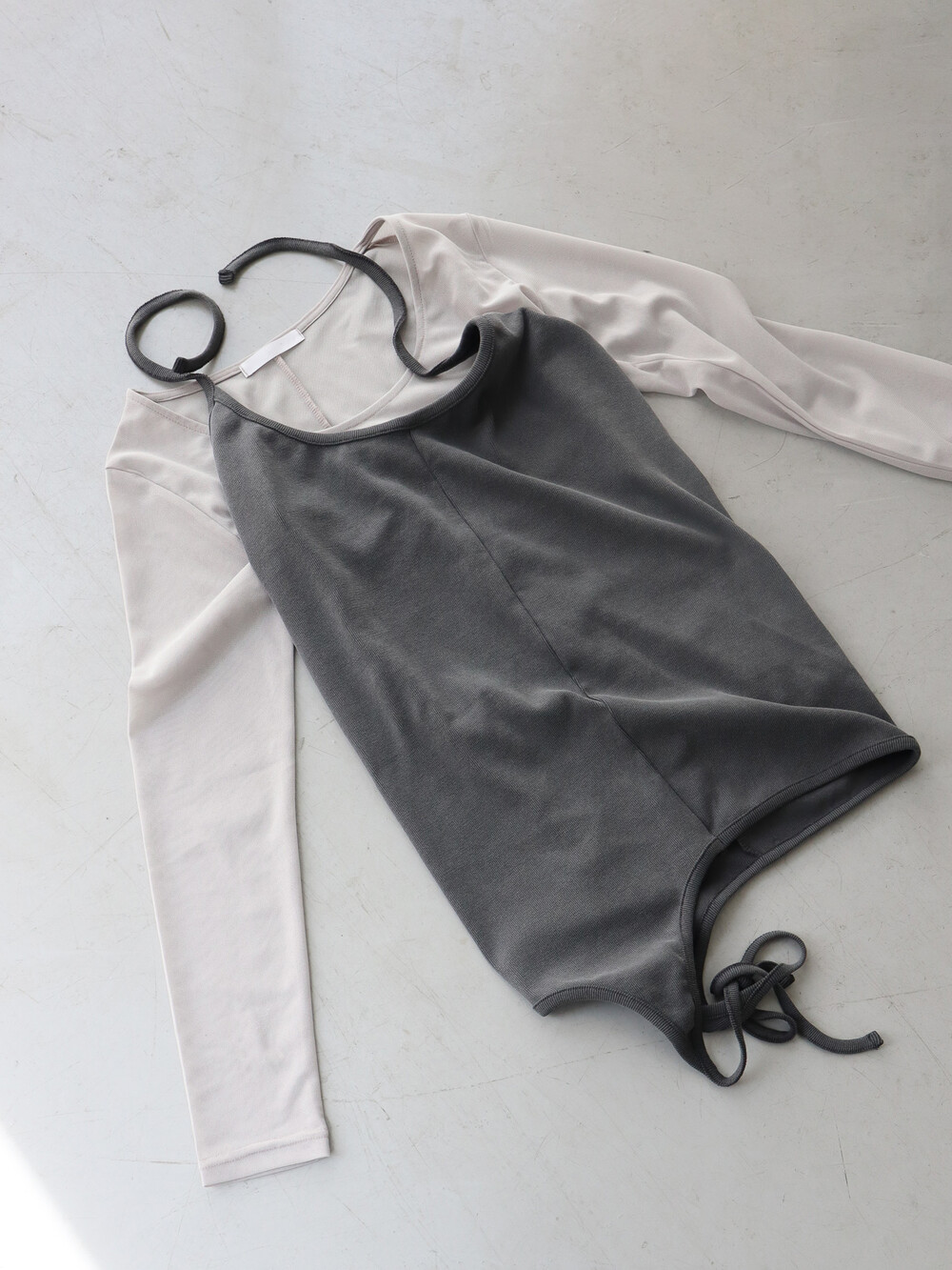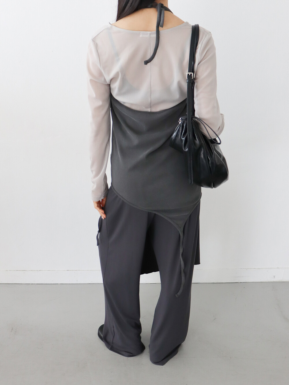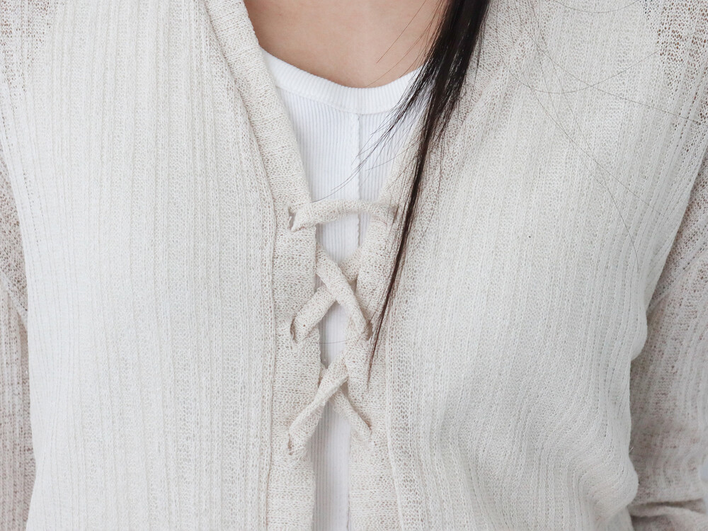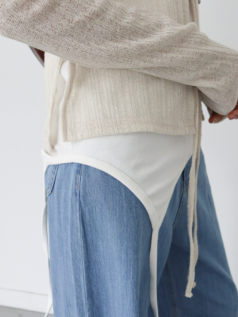 끈을 홀터로 묶어 착용하는 방식의 내추럴한 분위기의 탑