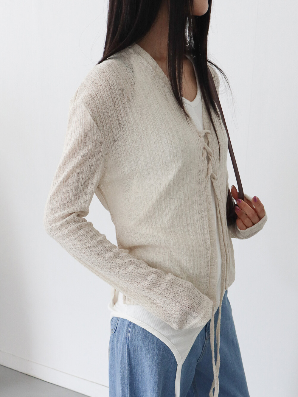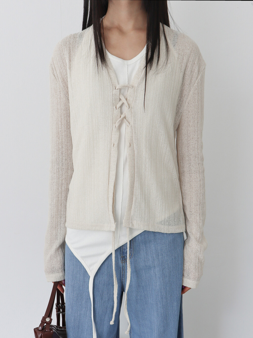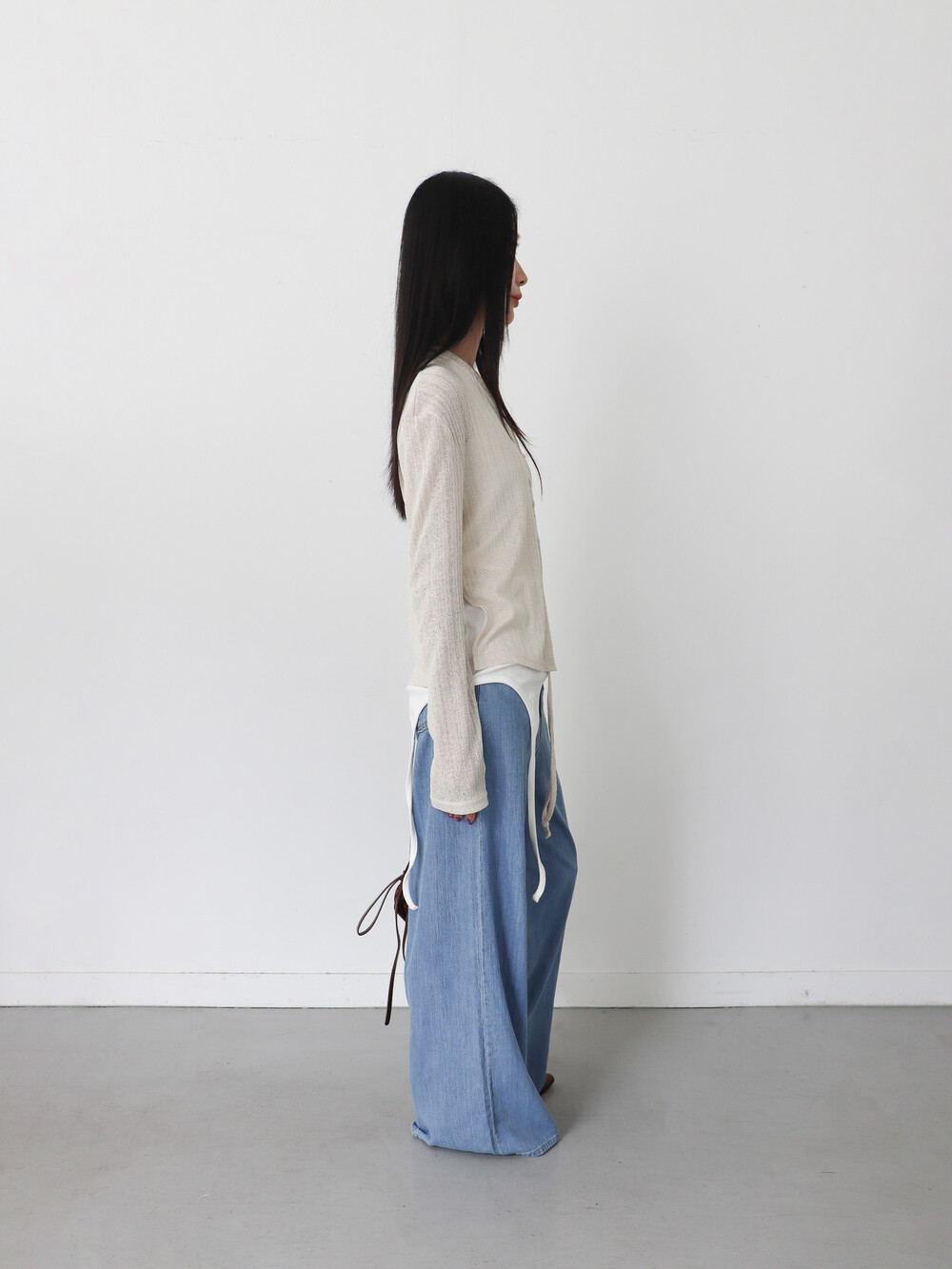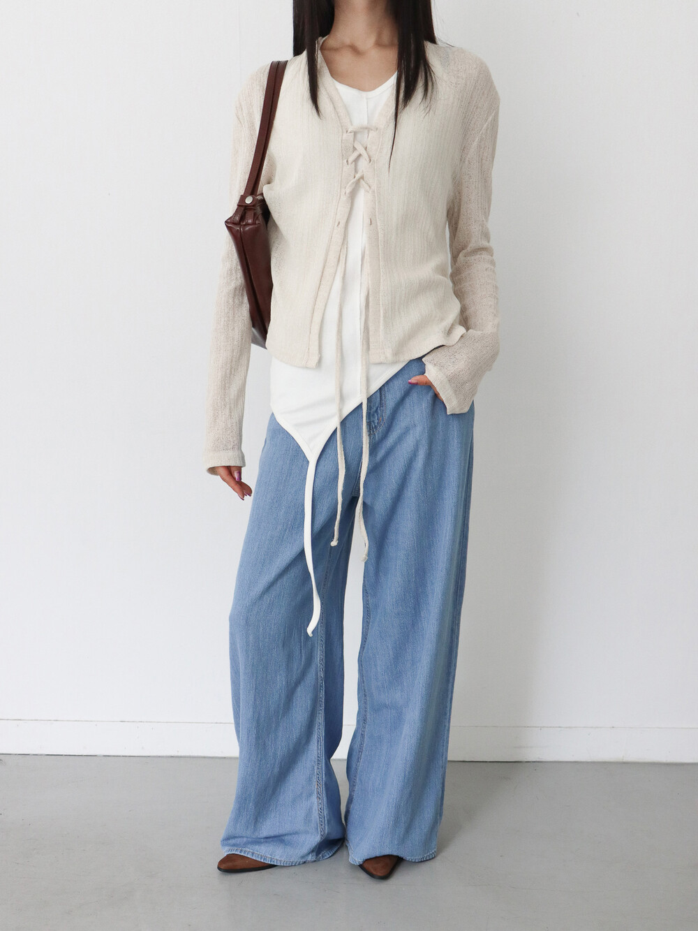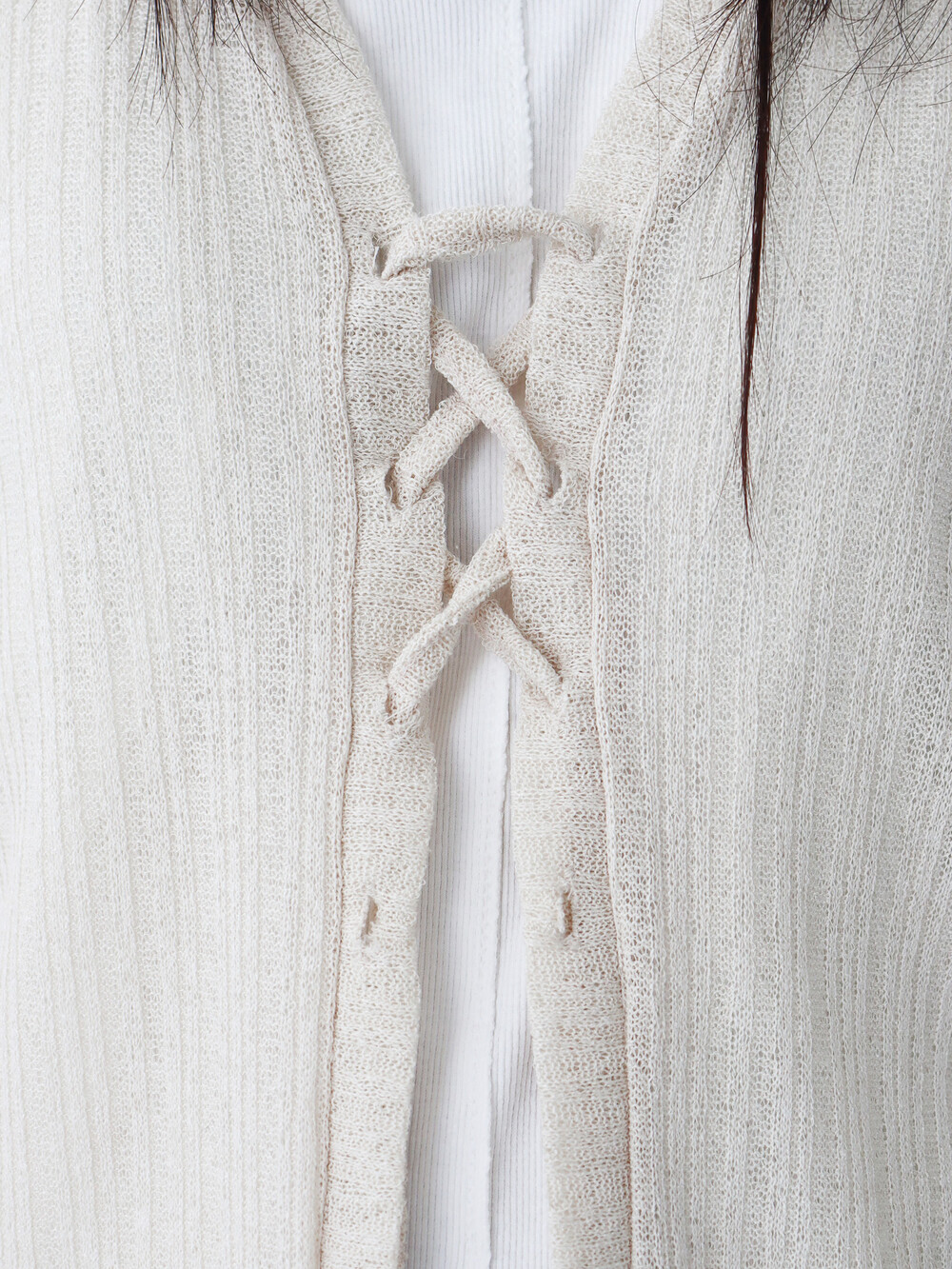 끈을 홀터로 묶어 착용하는 방식의 내추럴한 분위기의 탑