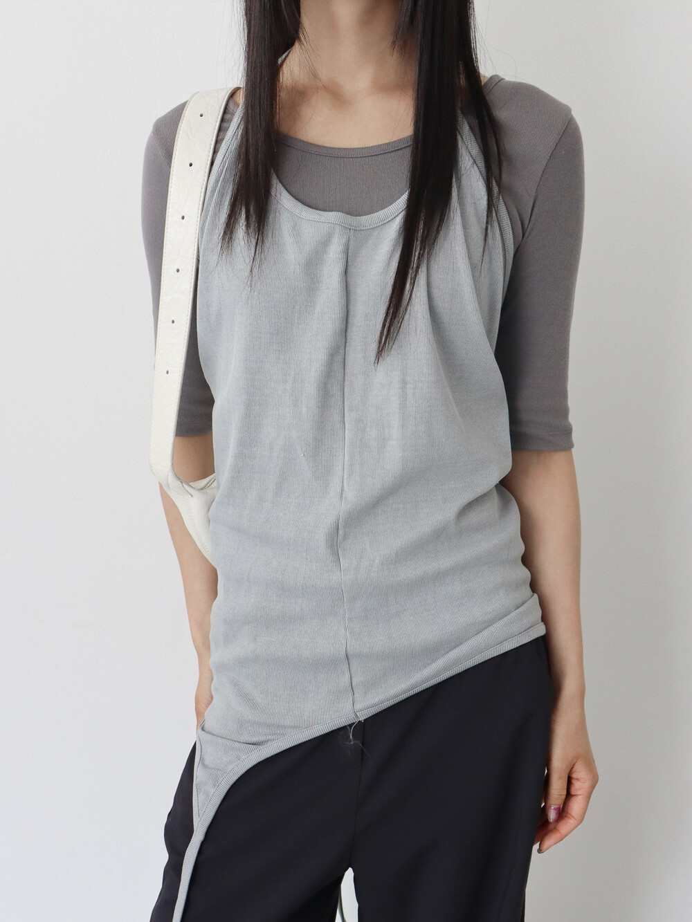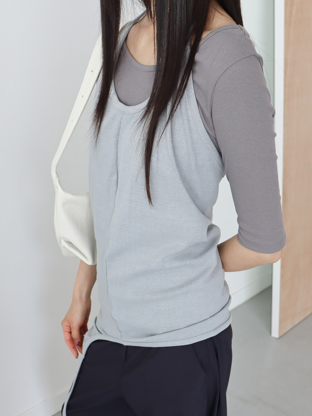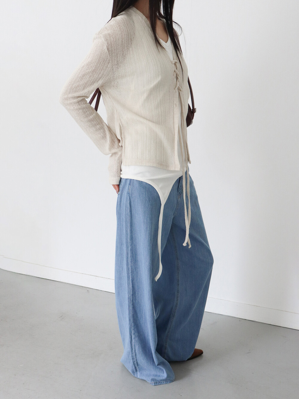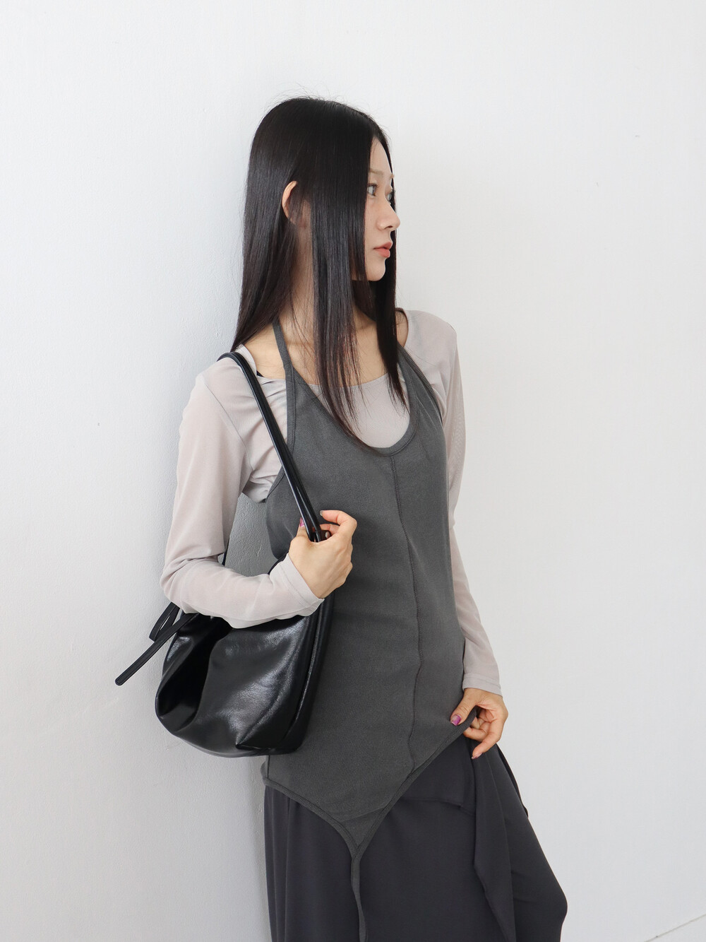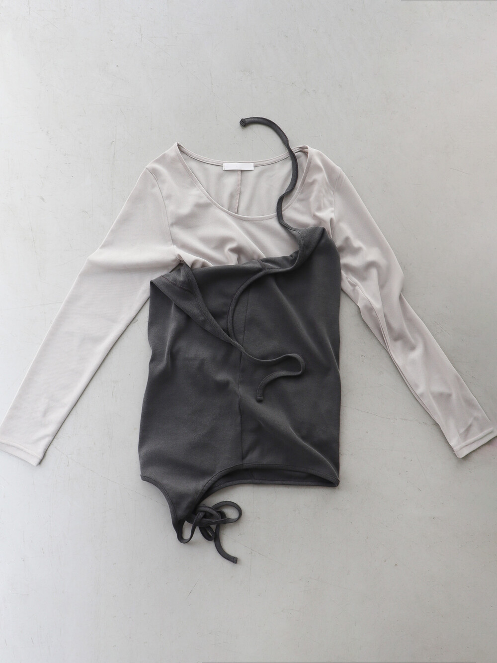 끈을 홀터로 묶어 착용하는 방식의 내추럴한 분위기의 탑