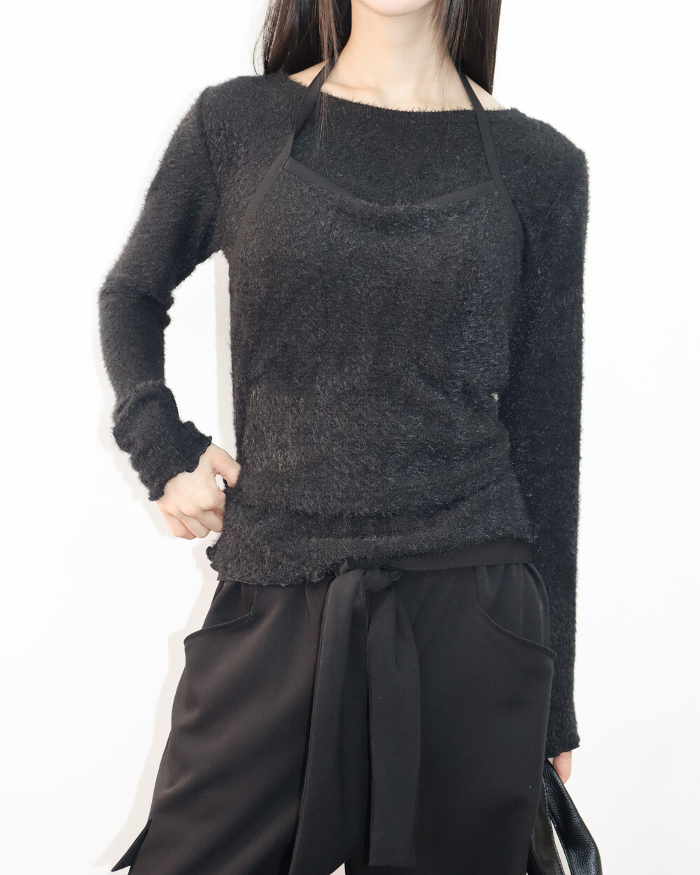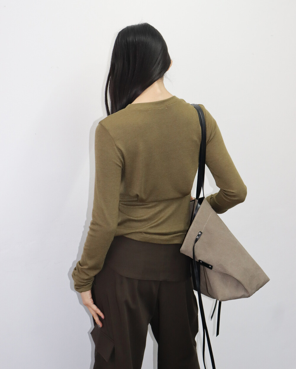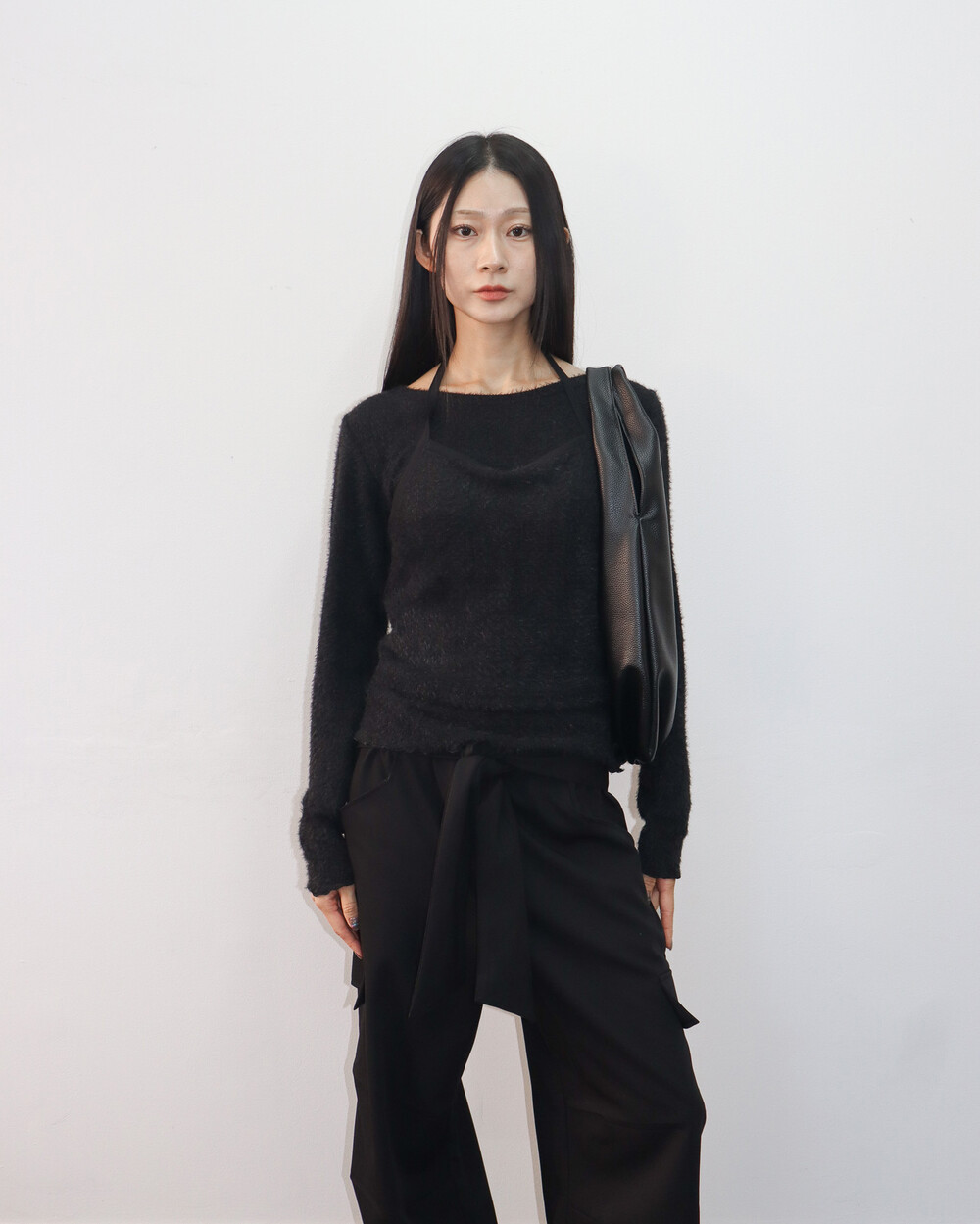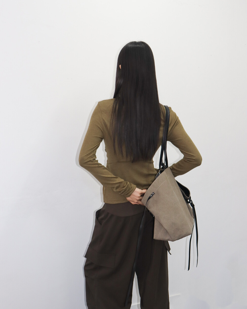 와이드한 스트랩으로 살포시 가려져 멋스럽게 연출됩니다
