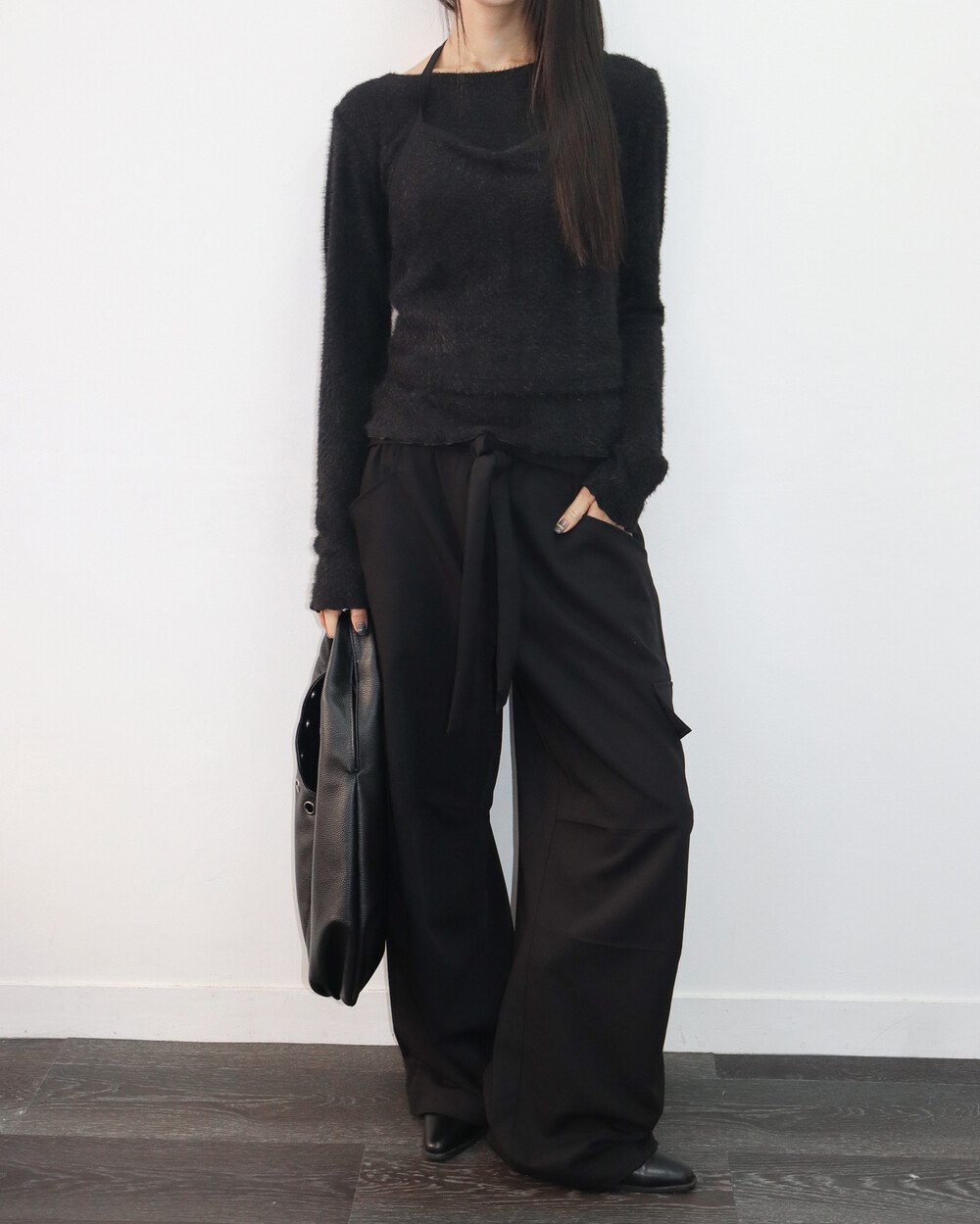 FREE 총장 104 허리 ~45 (BANDING) 엉덩이 53 허벅지 36 밑위 36 밑단 29 (스트링으로 조절가능)