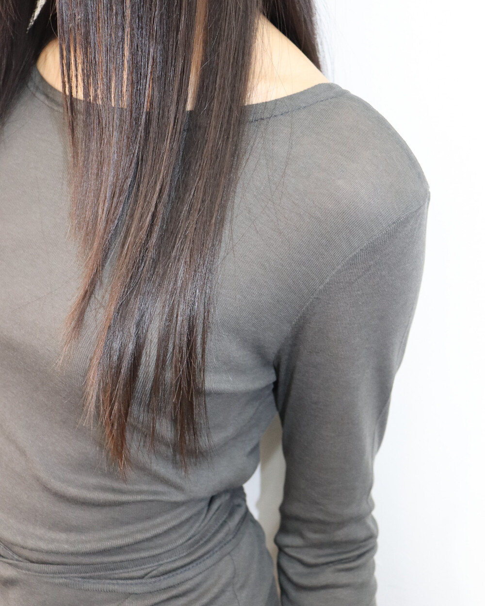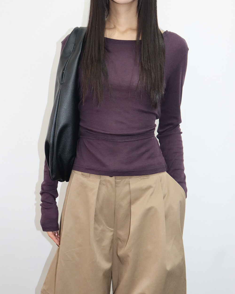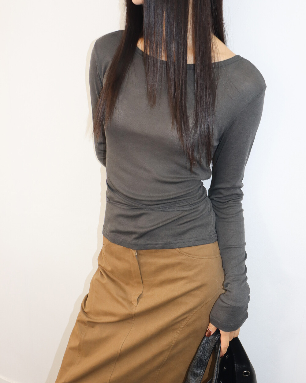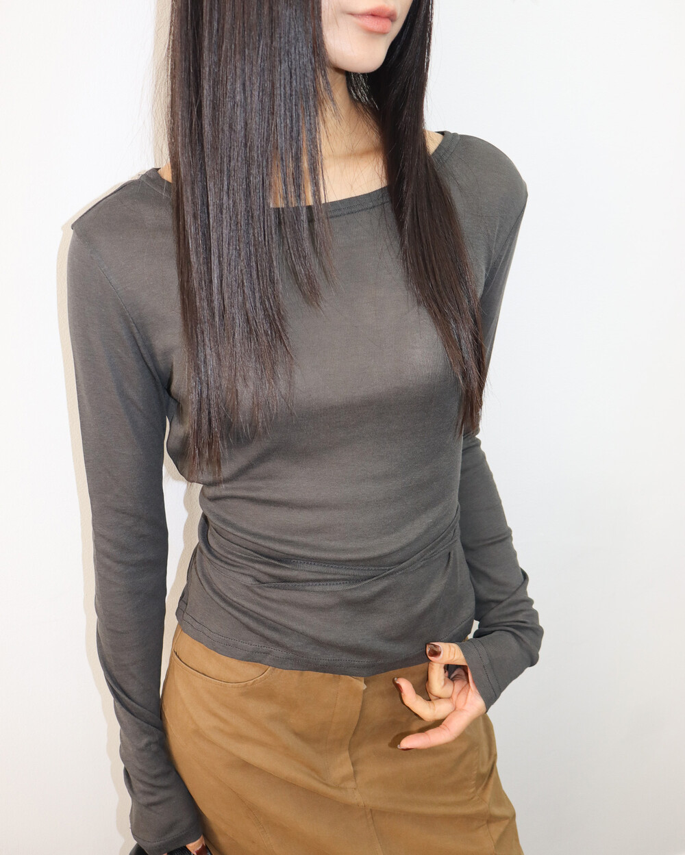 과하지 않은 넥 라인으로 목선이 예쁘게 드러나