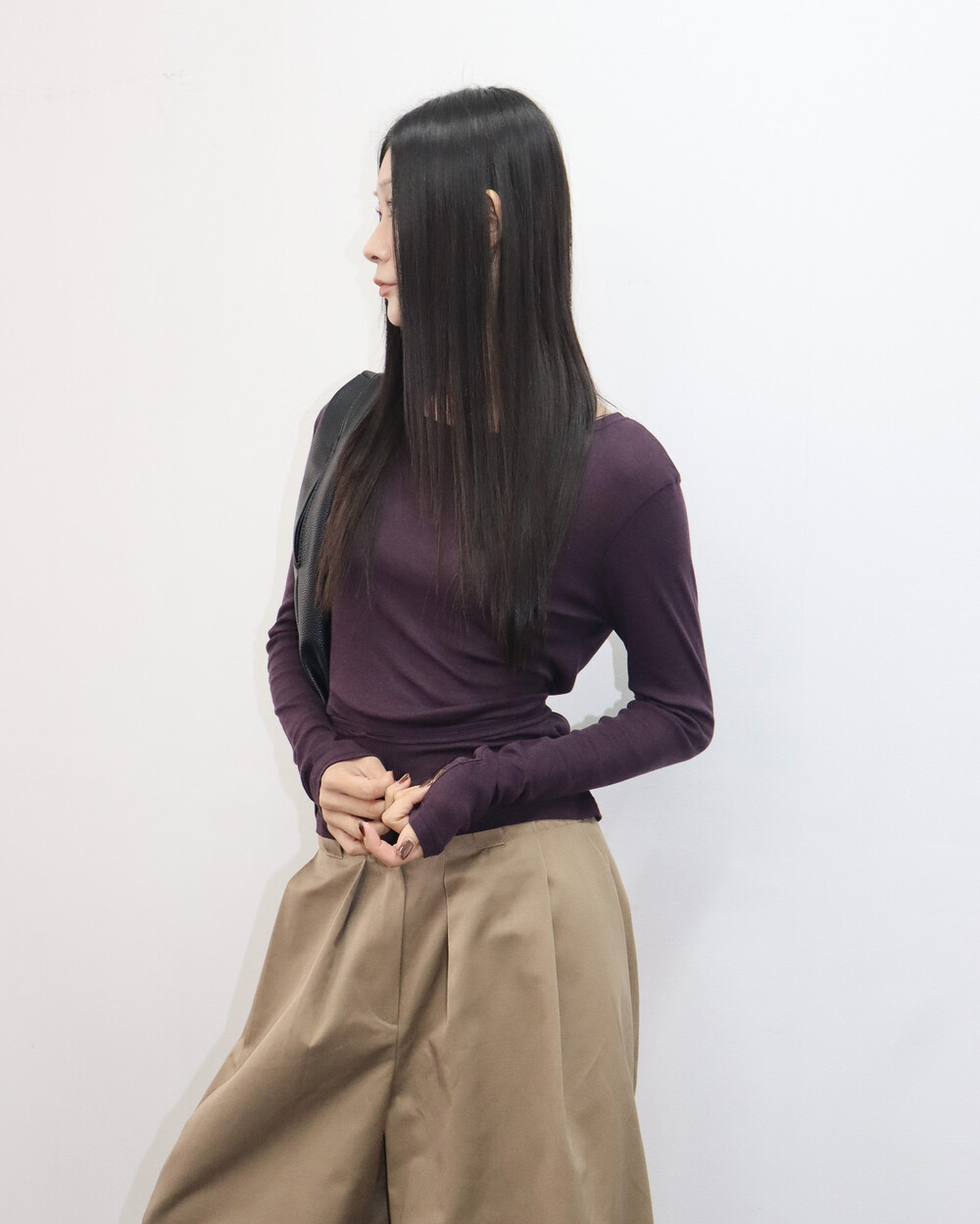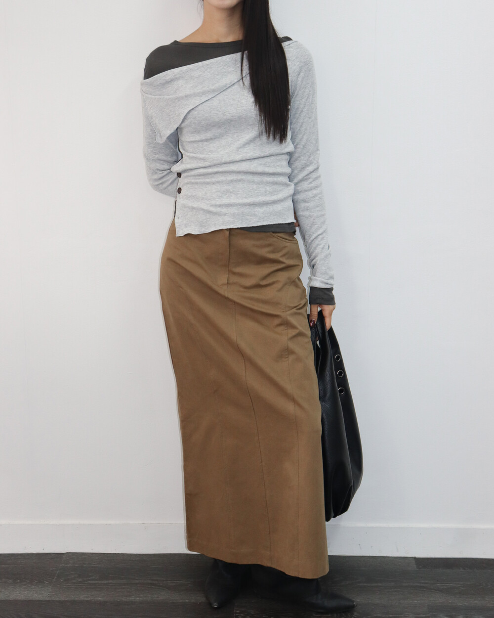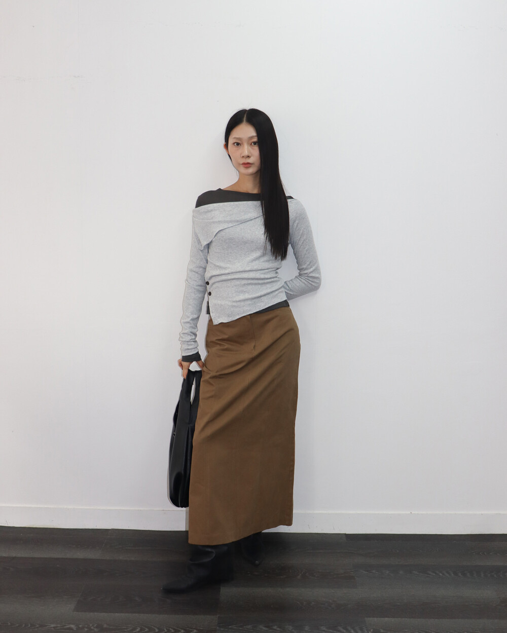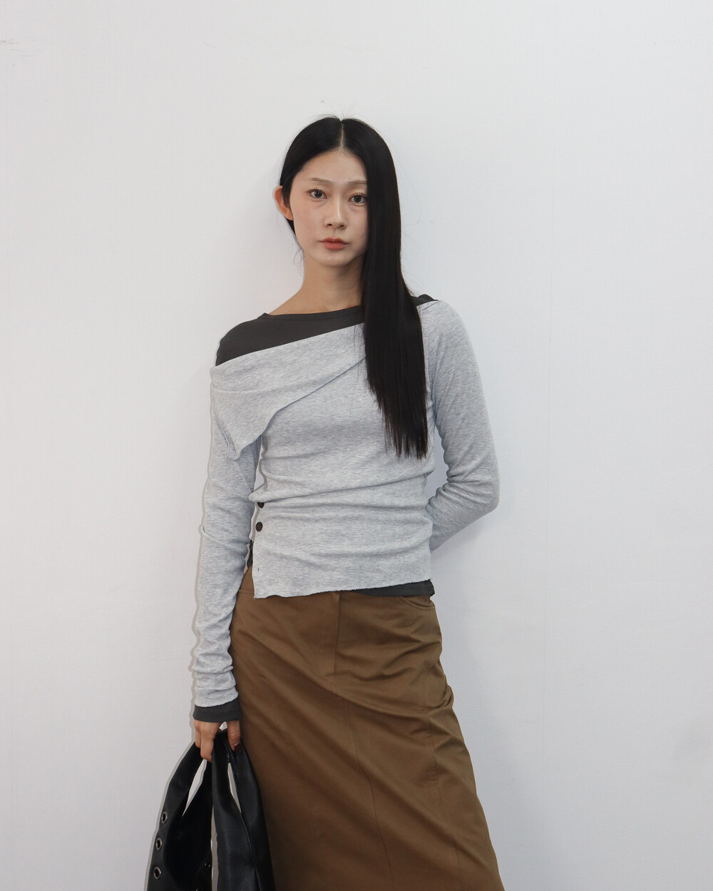 과하지 않은 넥 라인으로 목선이 예쁘게 드러나