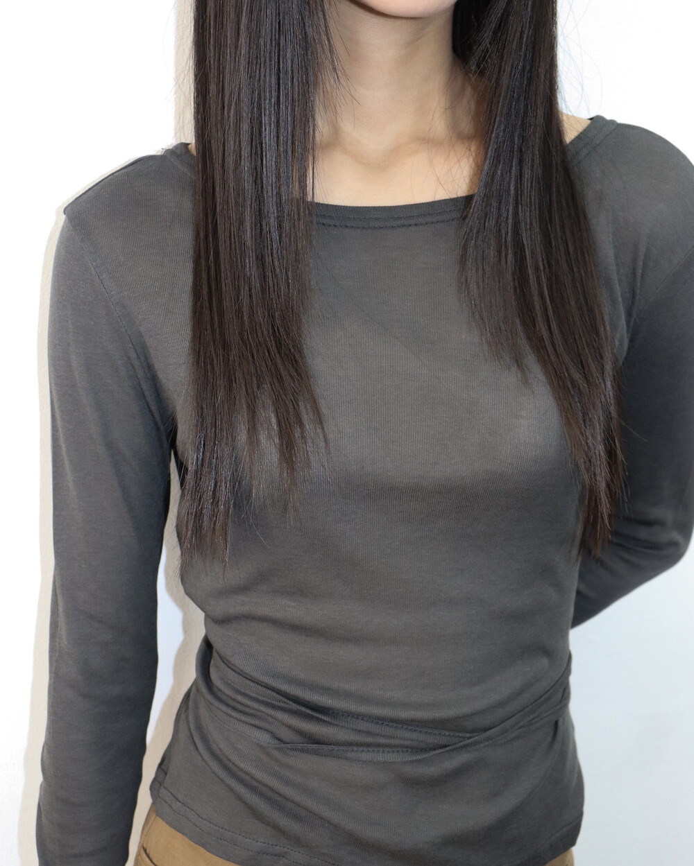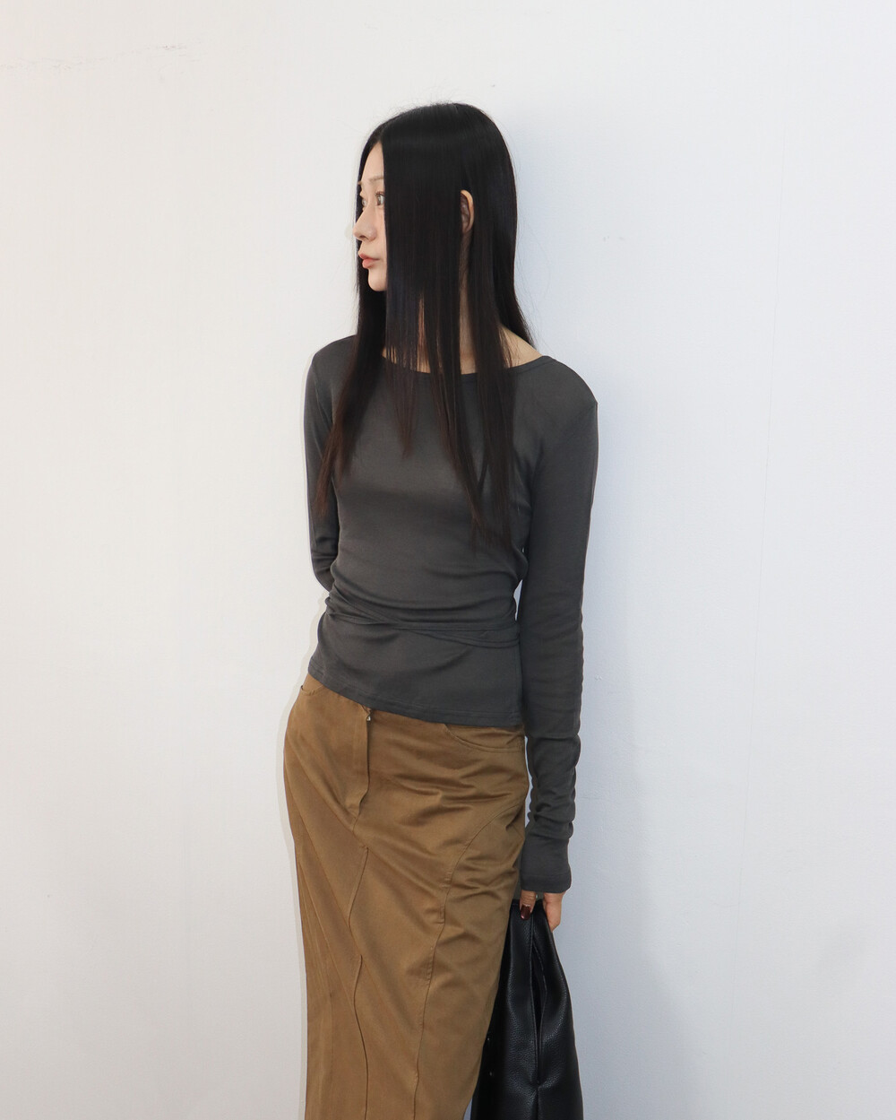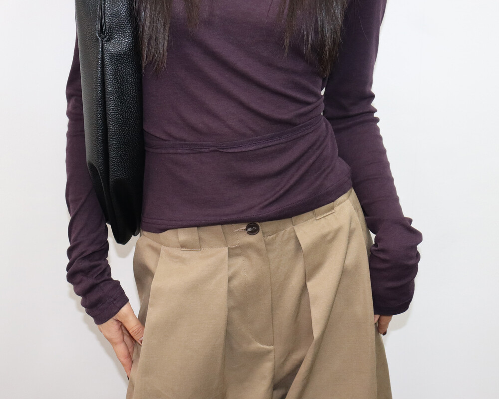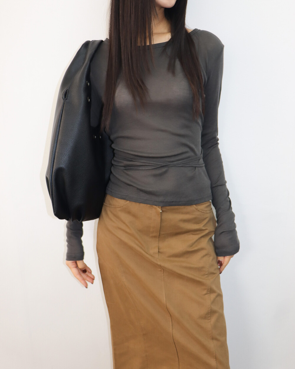 허리끈으로 연출이 가능한 기본 티셔츠