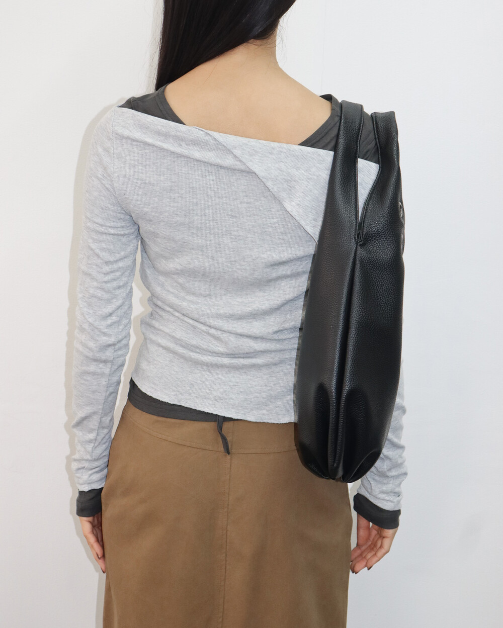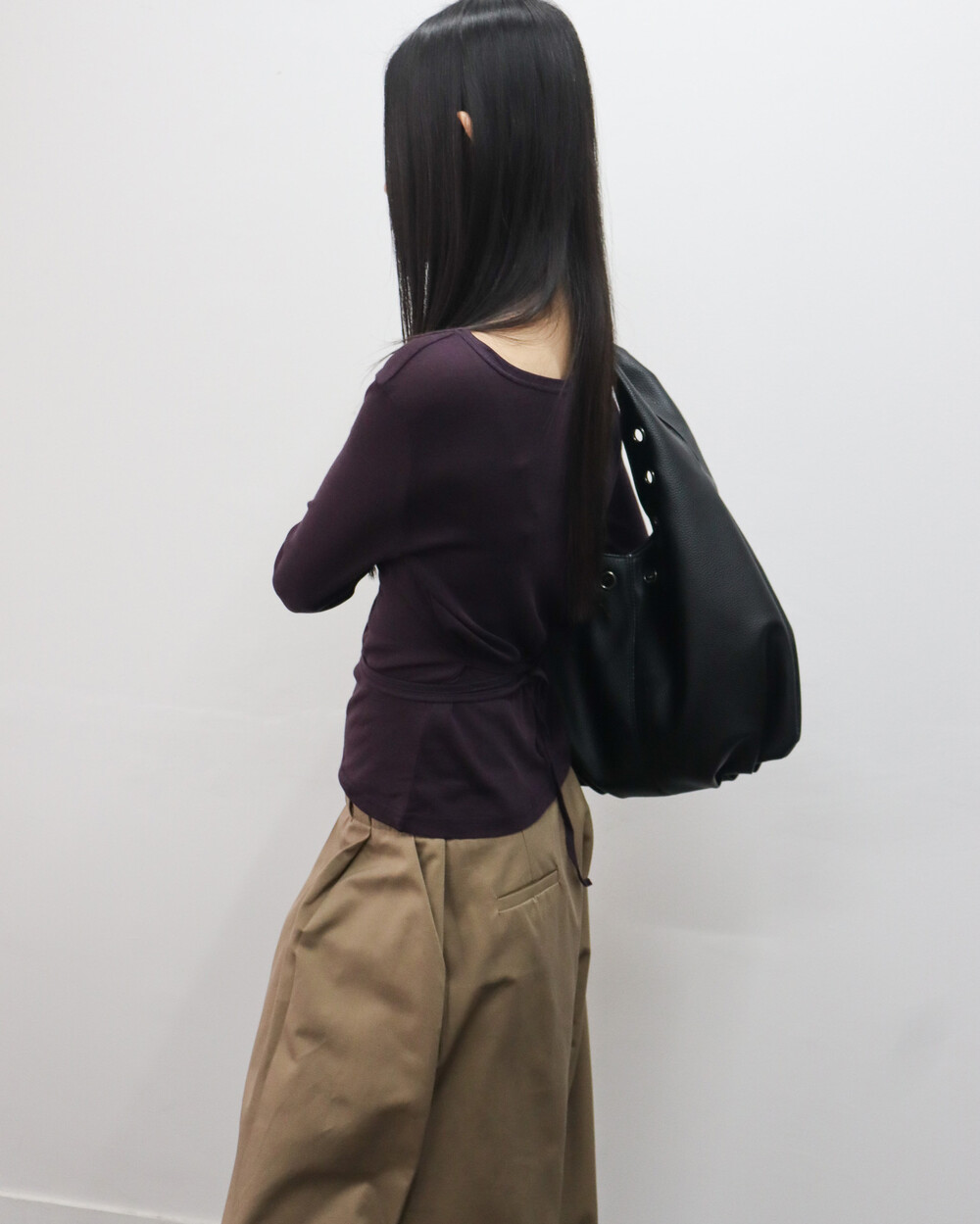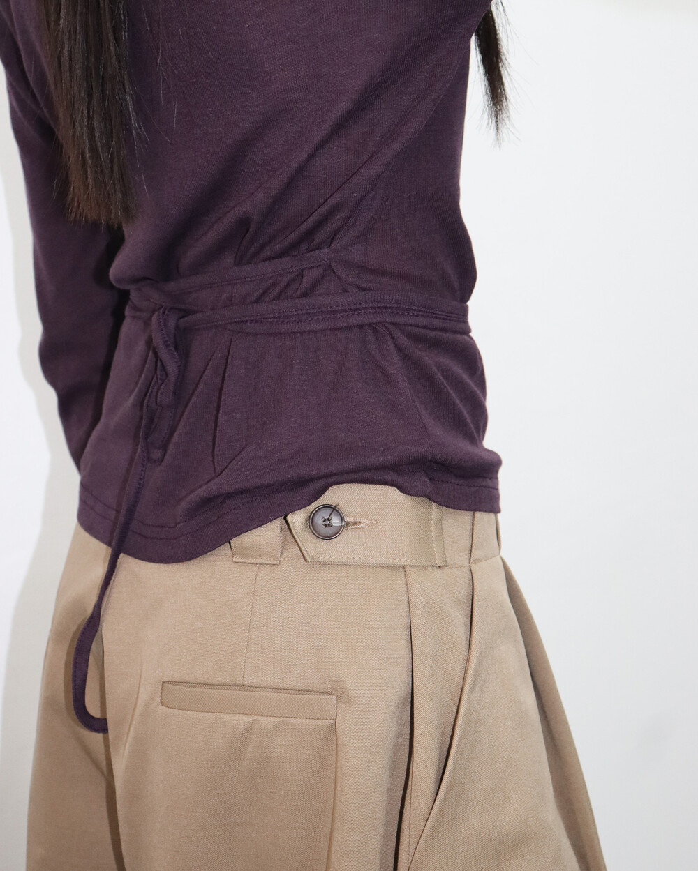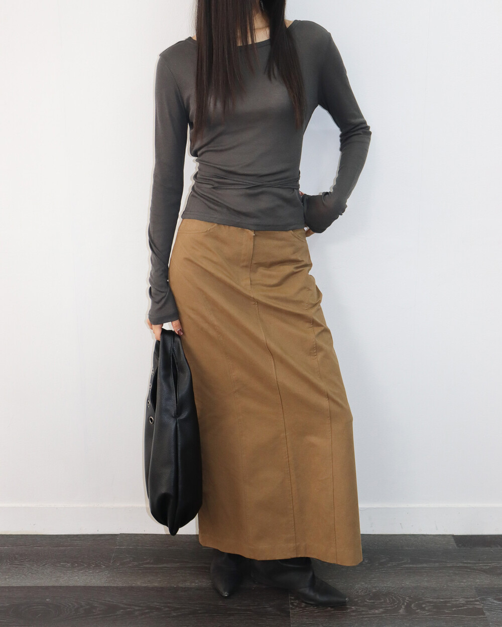 허리끈으로 연출이 가능한 기본 티셔츠