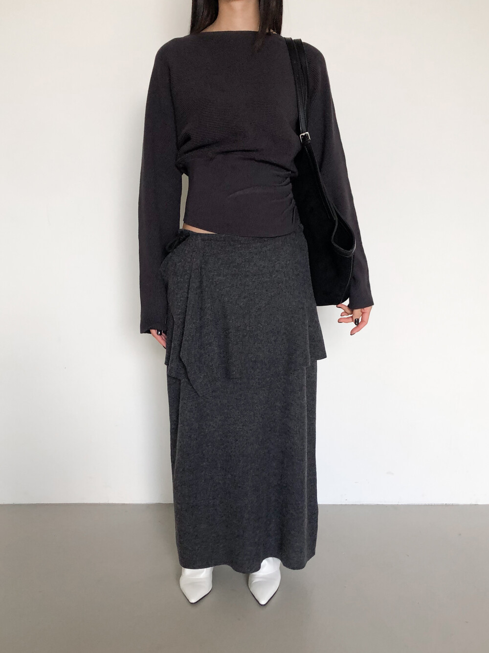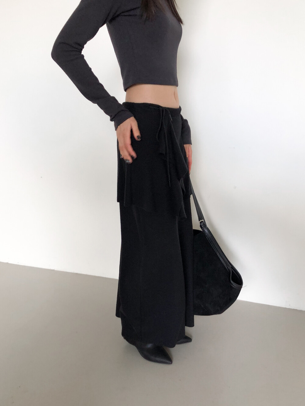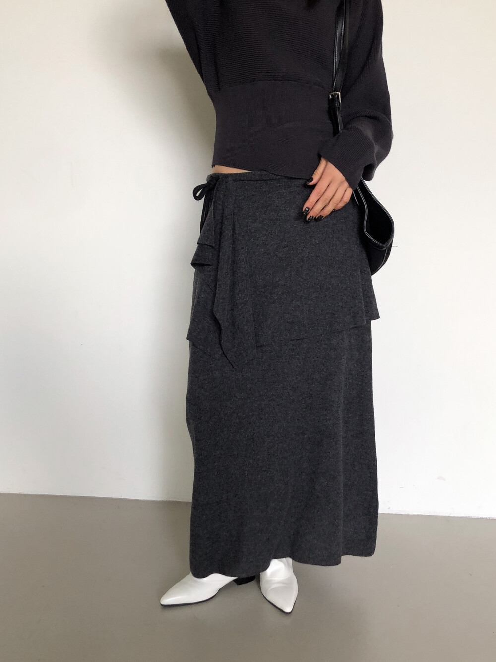 맥시한 기장감으로 스커트 자체에 아우라가 있어