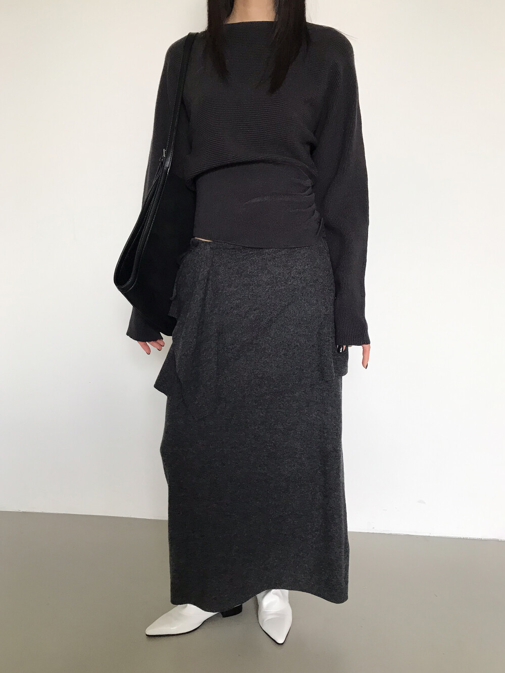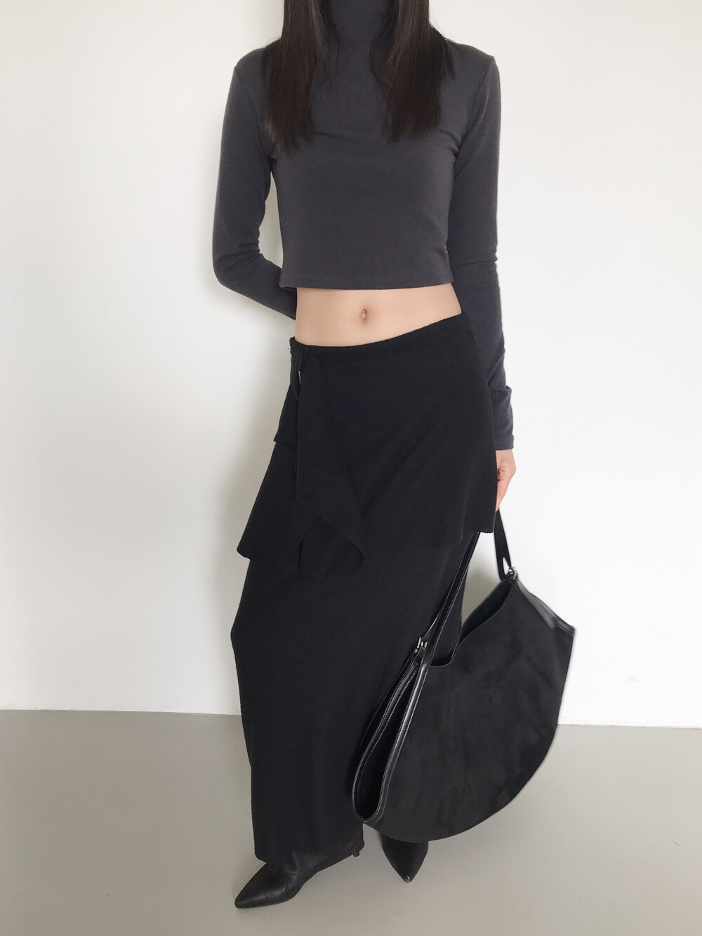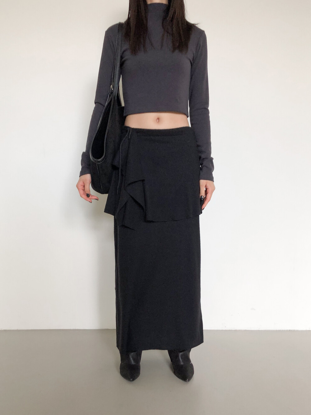 맥시한 기장감으로 스커트 자체에 아우라가 있어