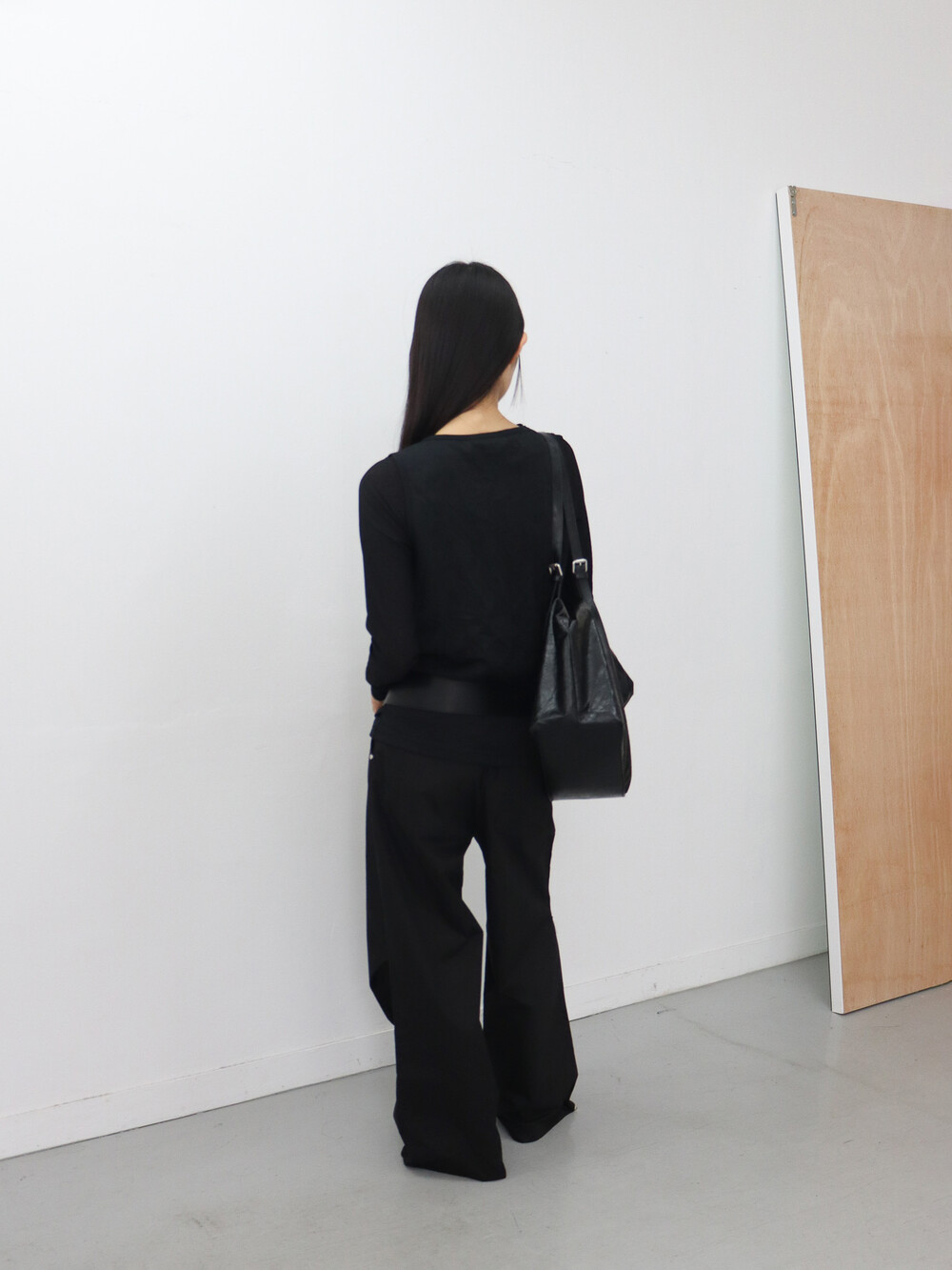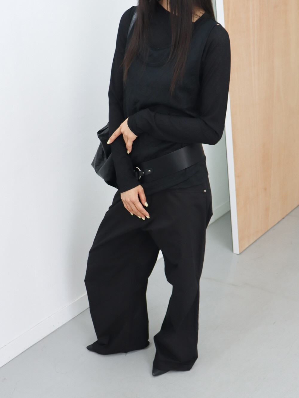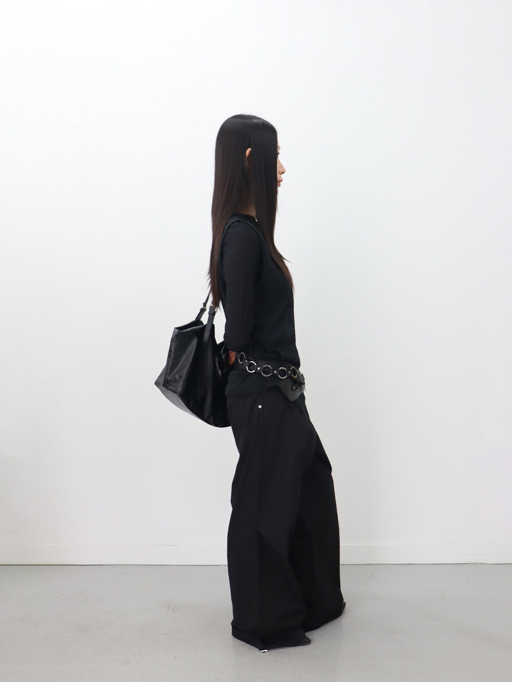 맥시한 기장감이 팬츠의 분위기를 완성시켜 줍니다