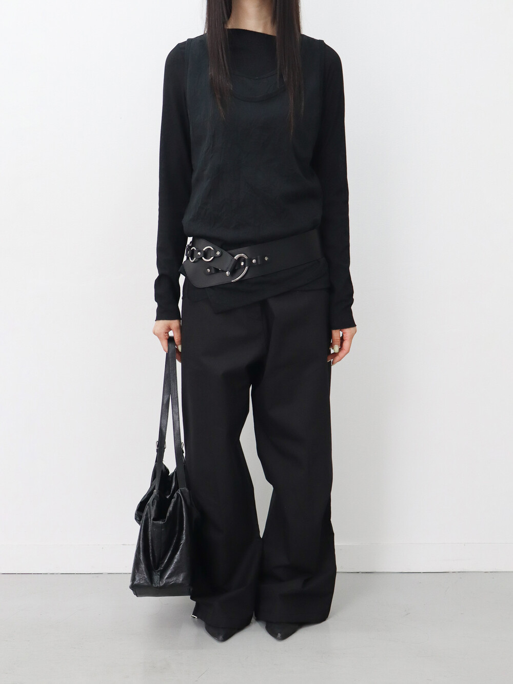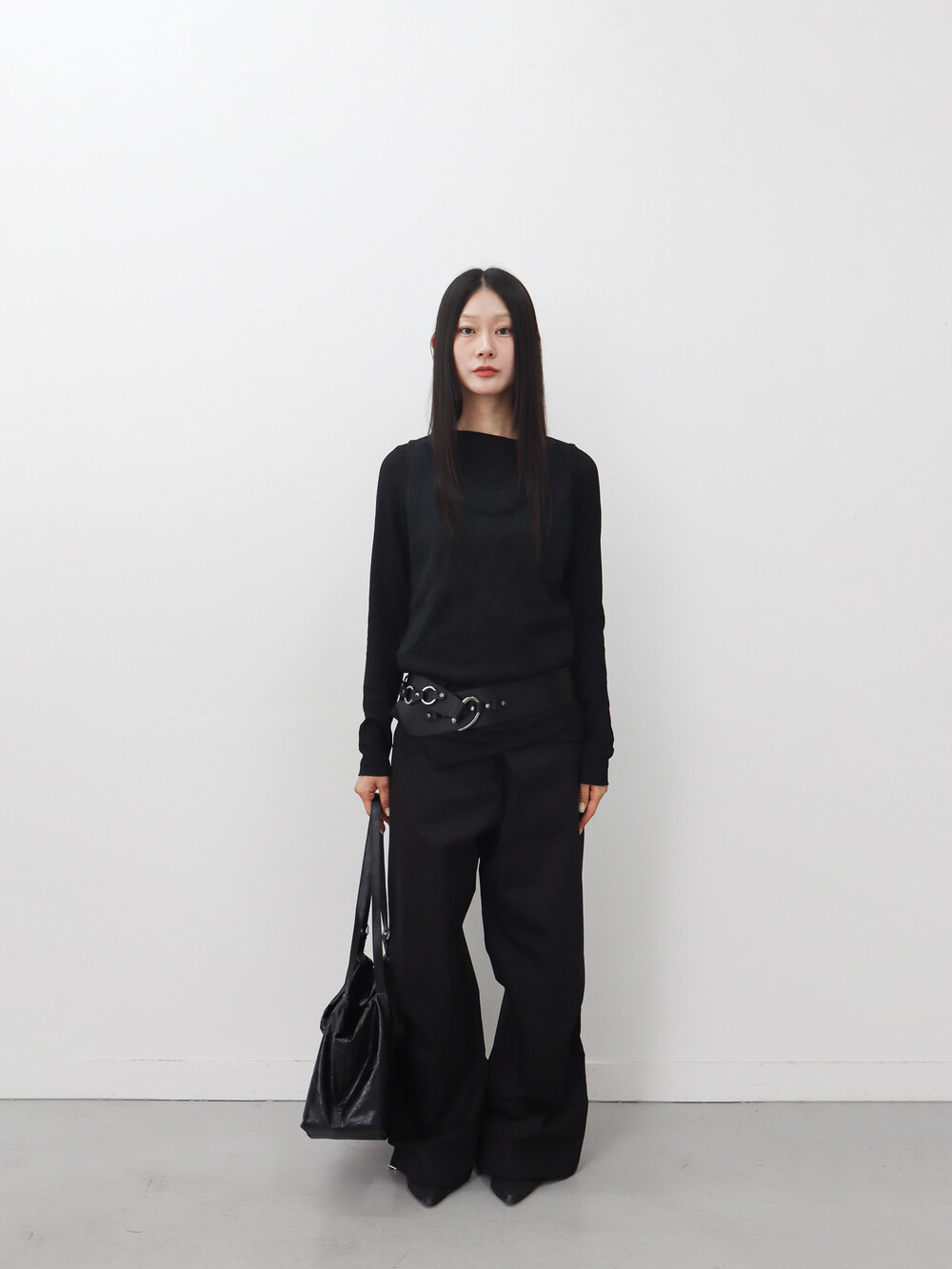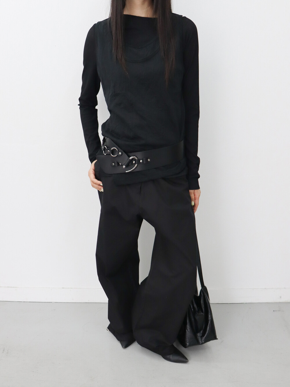 맥시한 기장감이 팬츠의 분위기를 완성시켜 줍니다