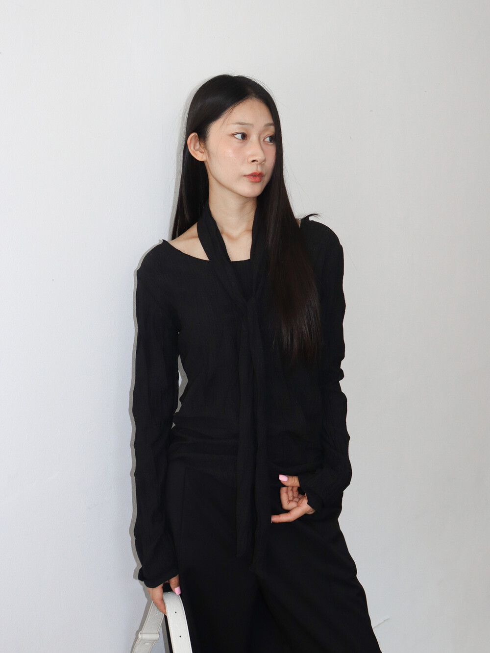 PLEASE WRINKLE SCARF TOP (2COLOR)