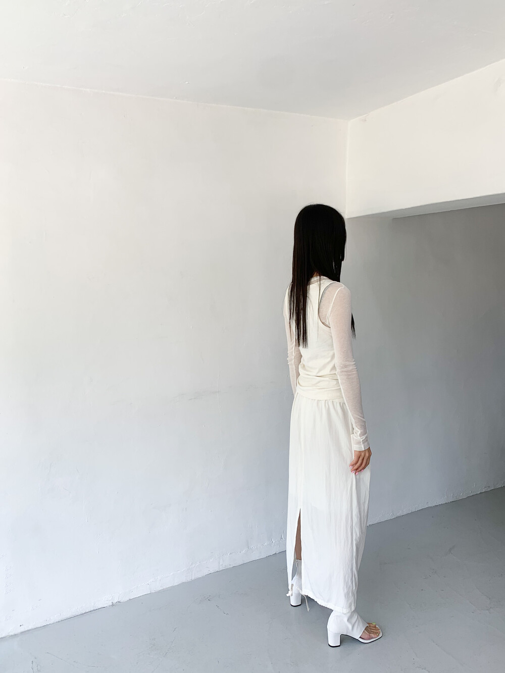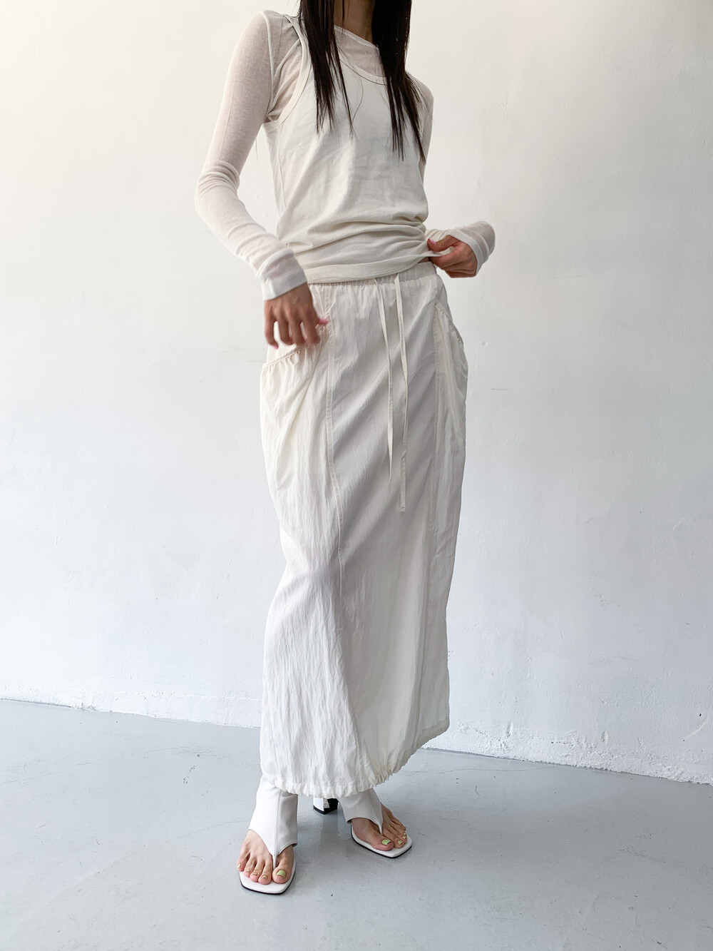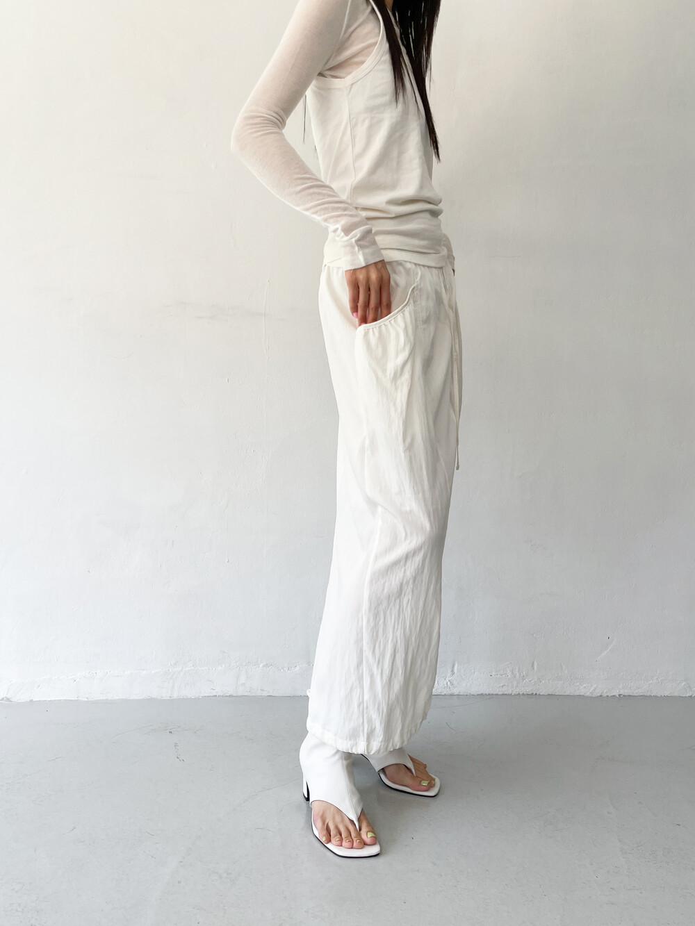 밑단 슬릿에 스트링 디테일을 더해