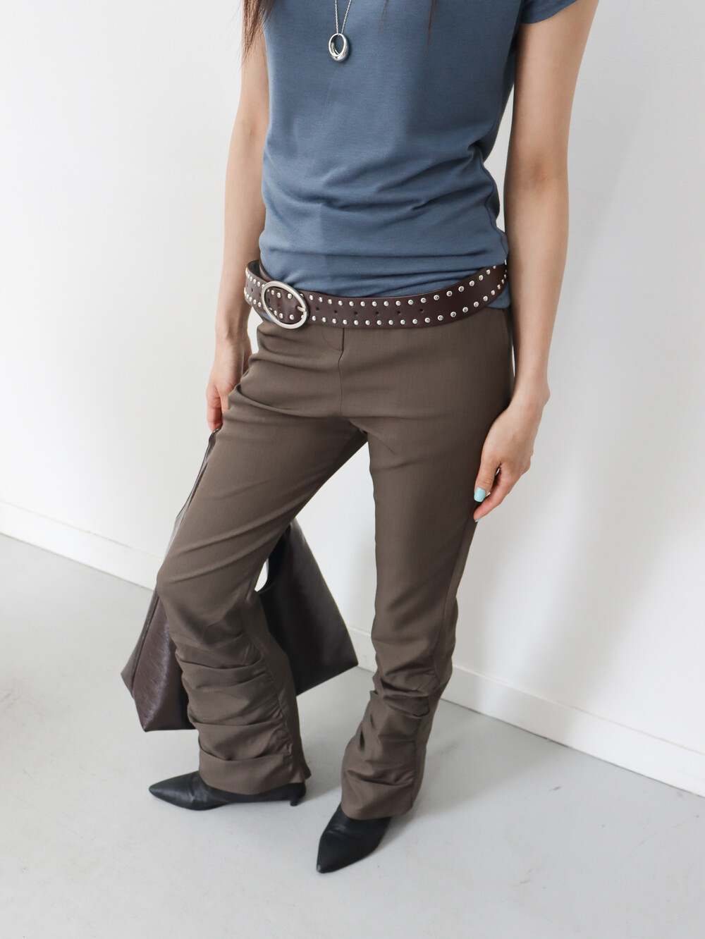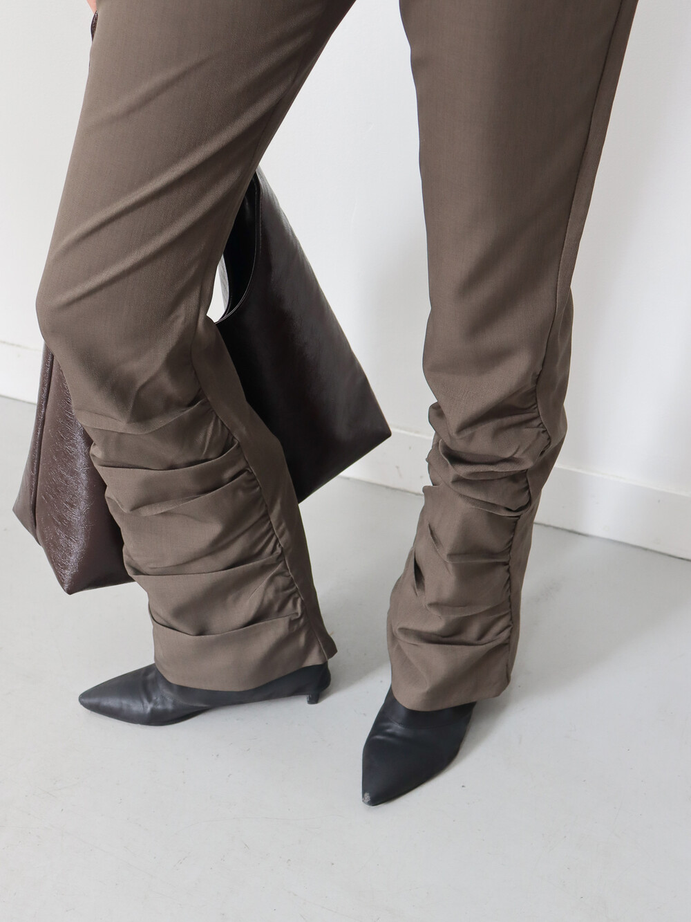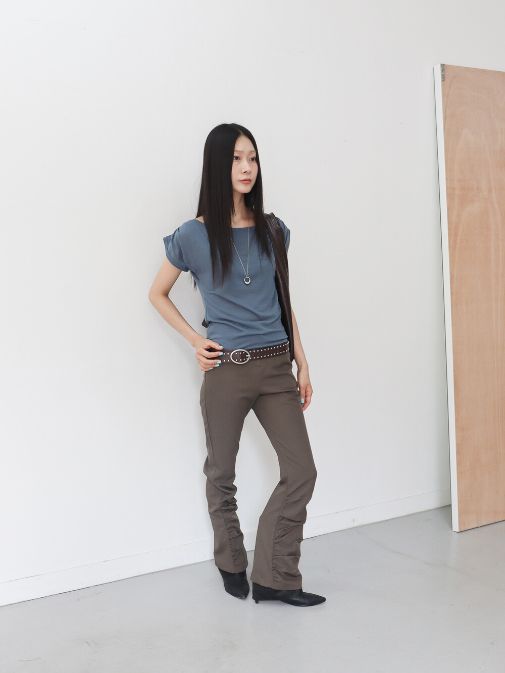 자연스럽게 잡힌 셔링 디테일이 매력적인 세미 부츠컷 팬츠